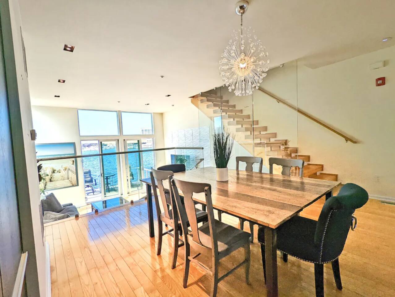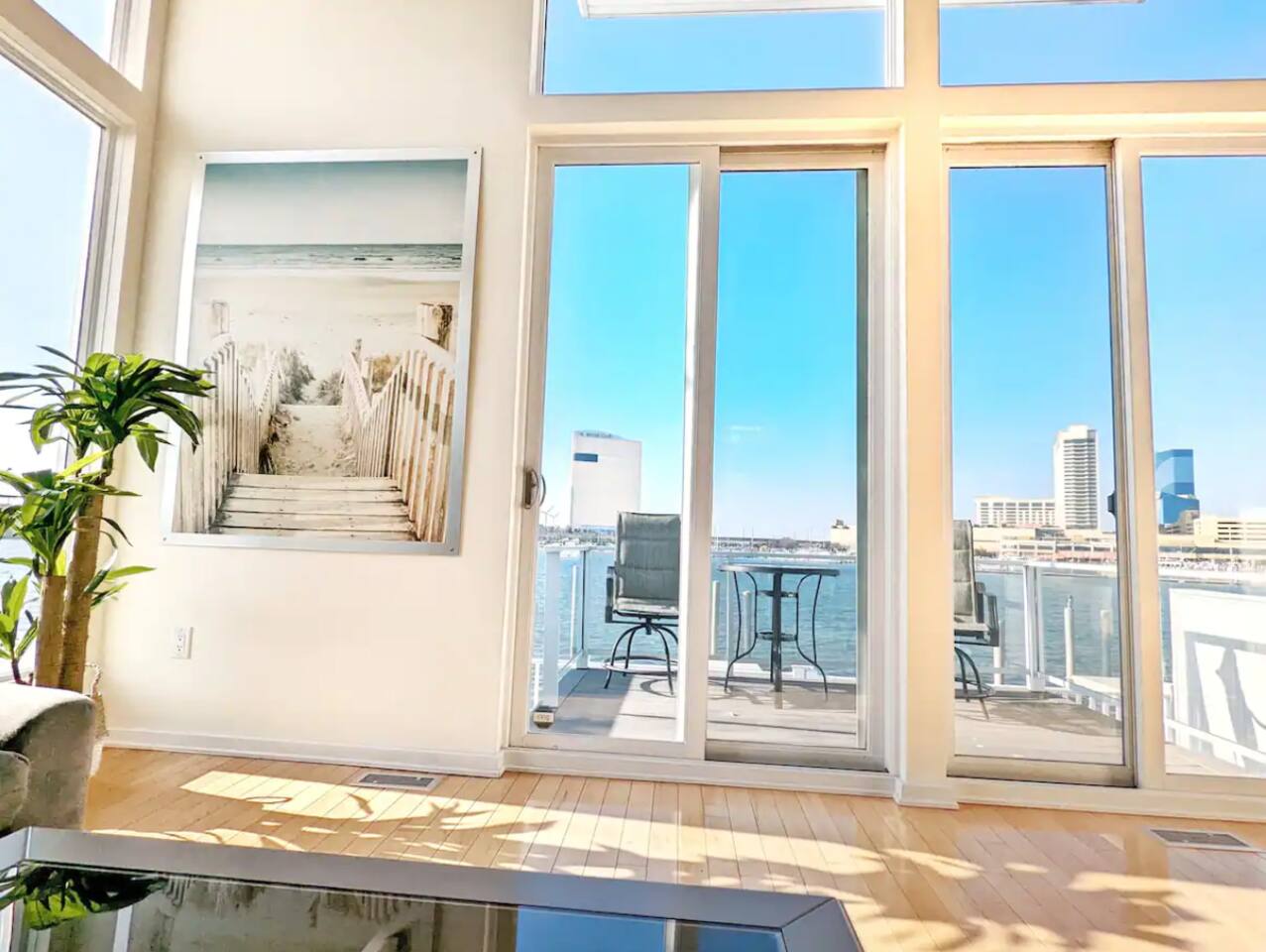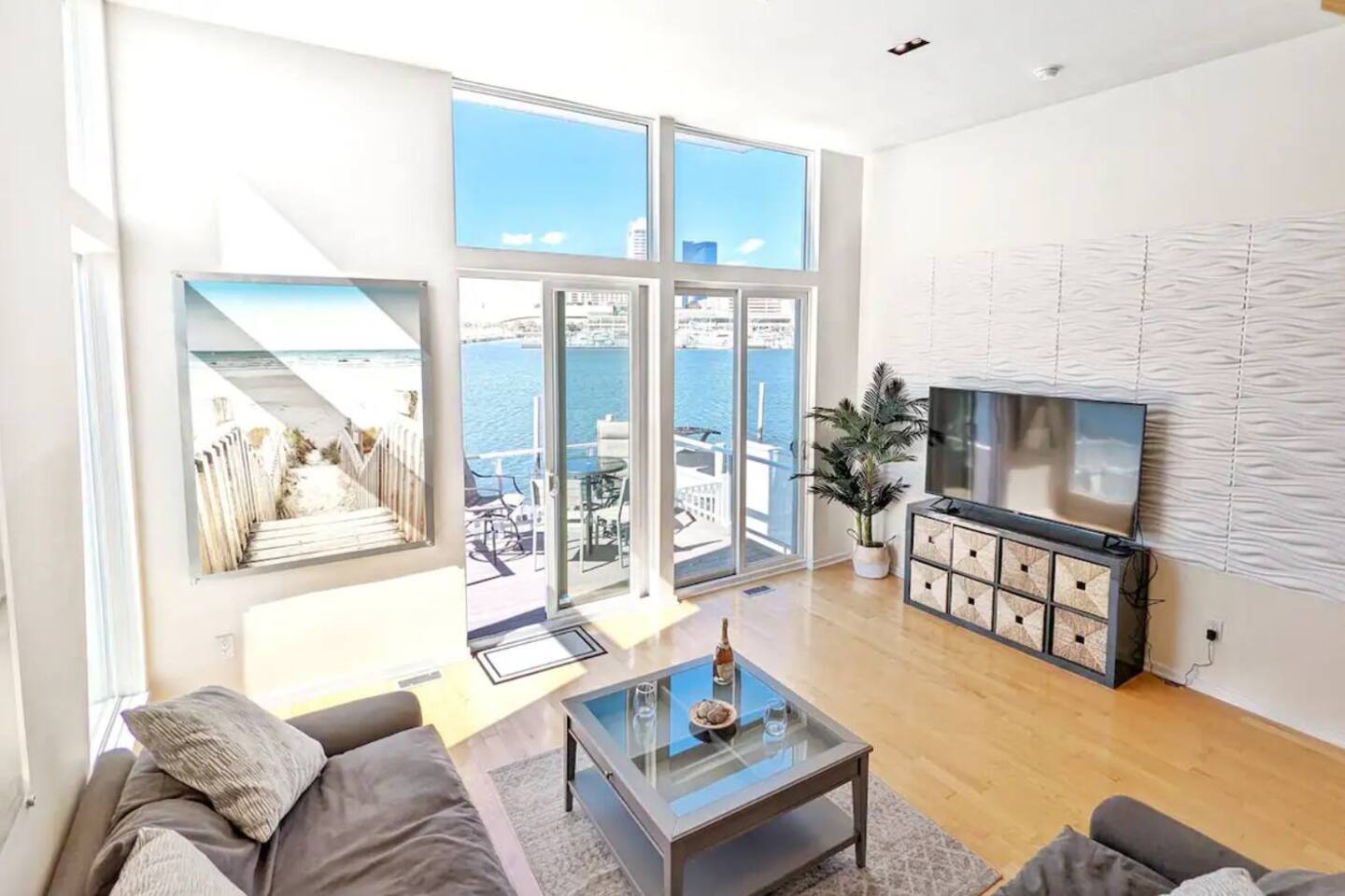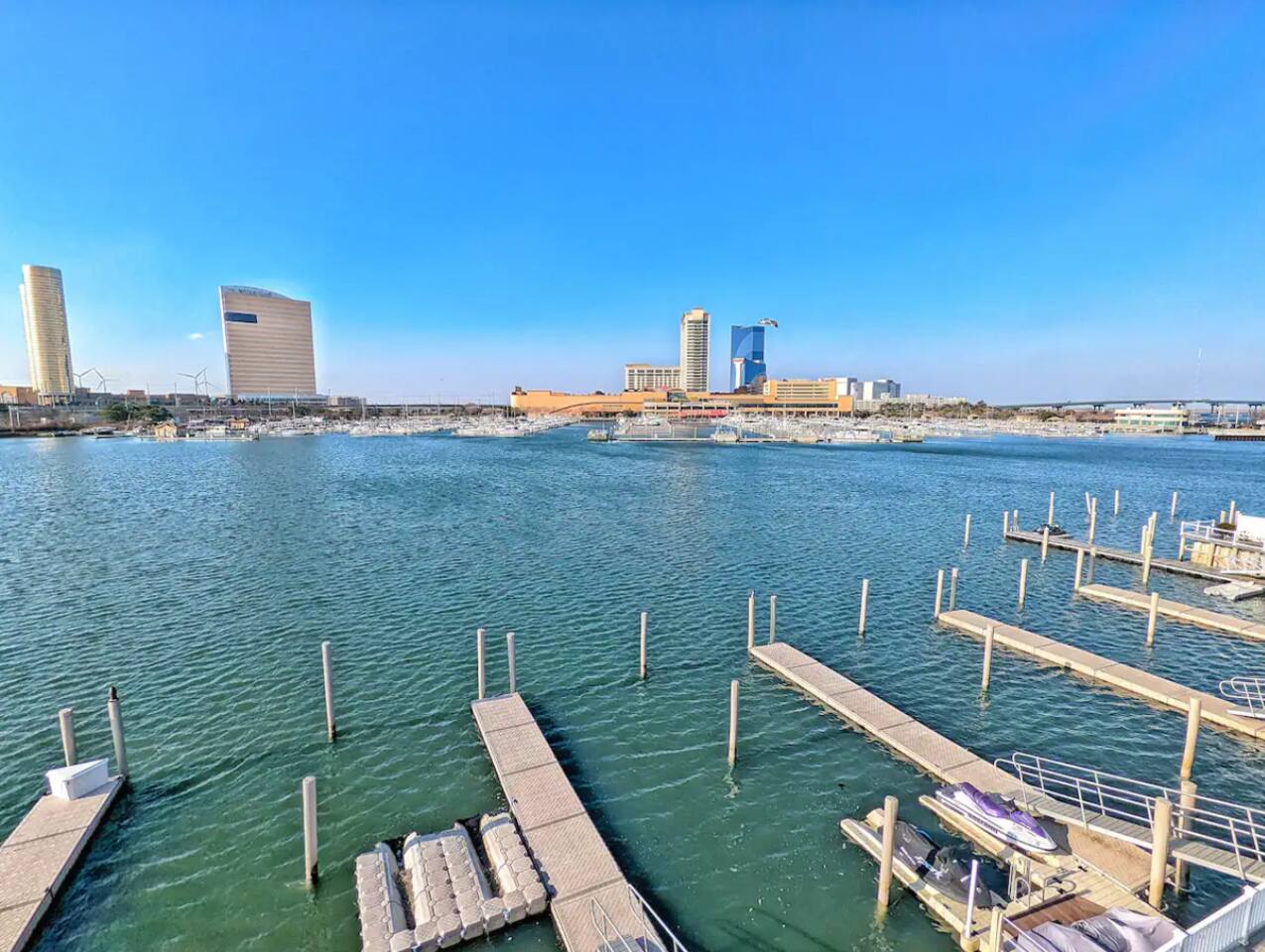 This beautiful bay front home will be sure to please! This bay front beauty comes with its own dock for all your water toys. Come enjoy the salt life in Atlantic City. With tasteful style and a view of the water from the bay front deck, this space is a perfect location for a family or group to soak up all the best that Atlantic City has to offer. Enjoy the contemporary design accompanied by modern amenities that spread across this entire elegant house. While decorating this inviting retreat, we have worked hard to create a feeling of a second home for our guests. Healthy natural light warms up space during the day by shining through large glass windows. SLEEPING ARRANGEMENTS: BEDROOM 1 - King Bed w/ en suite full bath, TV BEDROOM 2 - Queen bed w/ en suite full bath, TV BEDROOM 3 - Bunk bed (with Twin and a full) w/ en suite full bath, TV BATHROOMS: -Every bedroom has an attached full bathroom. -There is a half bathroom off of the kitchen KITCHEN: -Fully stocked with new appliances. -A great kitchen to cook a meal, then step out onto a bay front deck on each floor to enjoy the fresh air, sun, and passing boats. AMENITIES: The home is also equipped with Wifi, a coffee maker, hair dryer, and much more! BOOK WITH US and unlock discounts and special offers exclusive to Cozy Cohost guests. Take advantage of all that Atlantic City has to offer and enjoy savings at top local spots including famous restaurants, night clubs, spas, coffee shops, distilleries, breweries, boat tours, bike rentals, mini golf, and more...