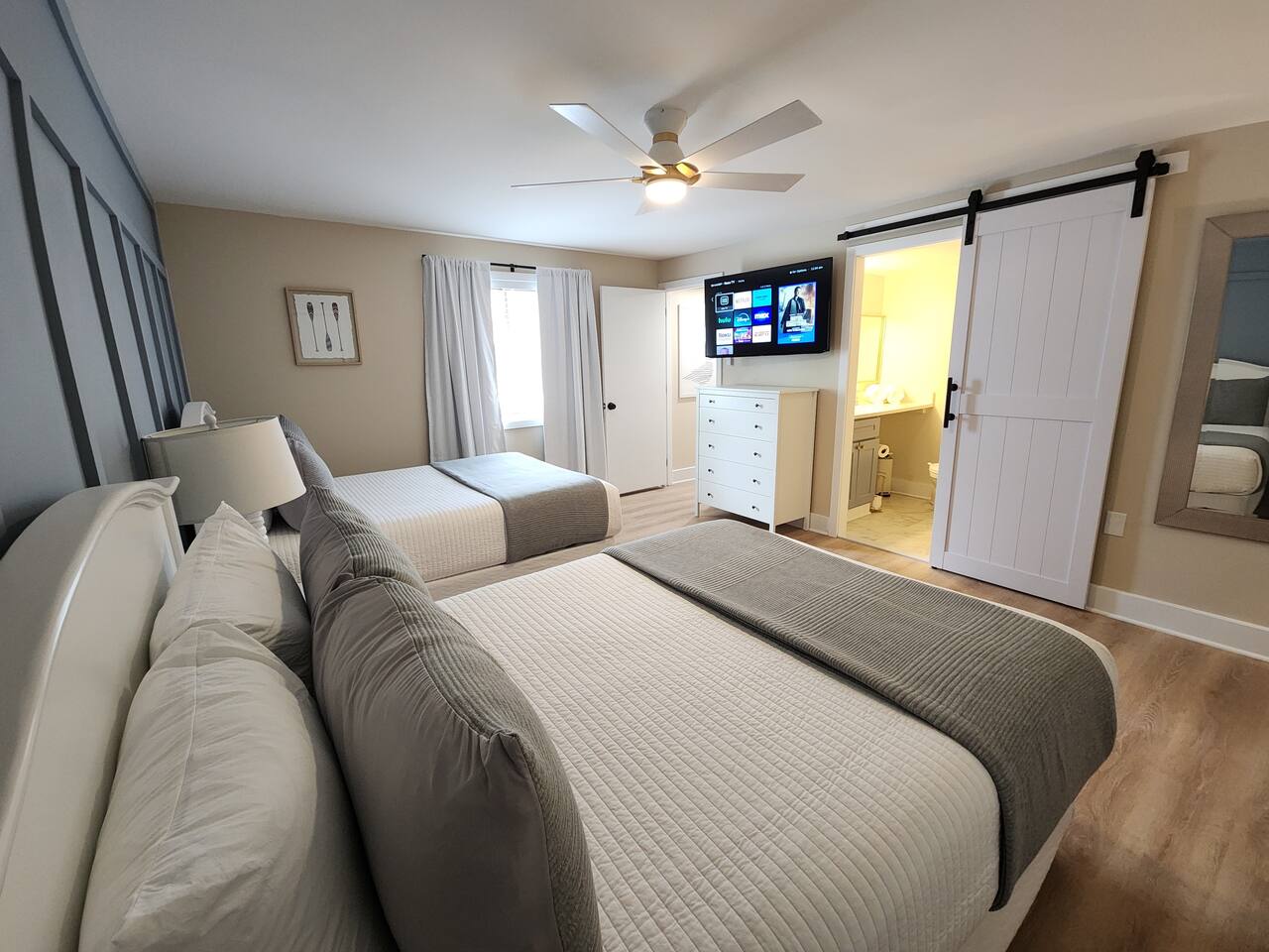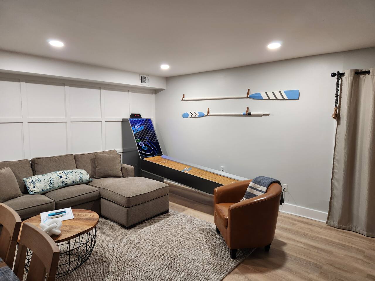 Come stay at this newly updated, well designed unit with an outside balcony and great amenities! Enjoy this space with all the comforts and convenience to make for a perfect stay. LIVING/DINING ROOM: -The unit has a spacious living area with a dining table, a comfortable living room setting with a couch, skeeball machine and a smart TV for your viewing pleasure (There is no cable for the TV just streaming apps). KITCHEN: -Fully equipped with newer appliances. SLEEPING ARRANGEMENTS: There are 2 spacious bedrooms, which comfortably sleep up to 6 guests. BEDROOM 1: 1 King Size Bed full bath with tub/shower & TV BEDROOM 2: 2 Queen Size Bed, full bath with stand up shower & TV AMENITIES: The home is also equipped with Wifi, a coffee maker, a hair dryer, and much more! LOCATION: The unit is in a complex on a beach block directly across from Ocean Resort & Casino and next to The Showboat Hotel and Island Waterpark. -Take a lovely, quick stroll to the boardwalk and beach. ADDITIONAL NOTES: -Please note that, like many areas of the city, the complex parking lot has the possibility of puddling or flooding when it rains. -This factor is out of our control, and we suggest parking at Ocean Casino across the street in the event that it becomes problematic. - This is an active HOA. The building is regularly being maintained and upgrading of the grounds is a regular occurrence. BOOK WITH US and unlock discounts and special offers exclusive to Cozy Cohost guests. Take advantage of all that Atlantic City has to offer and enjoy savings at top local spots including famous restaurants, night clubs, spas, coffee shops, distilleries, breweries, boat tours, bike rentals, mini golf, and more...