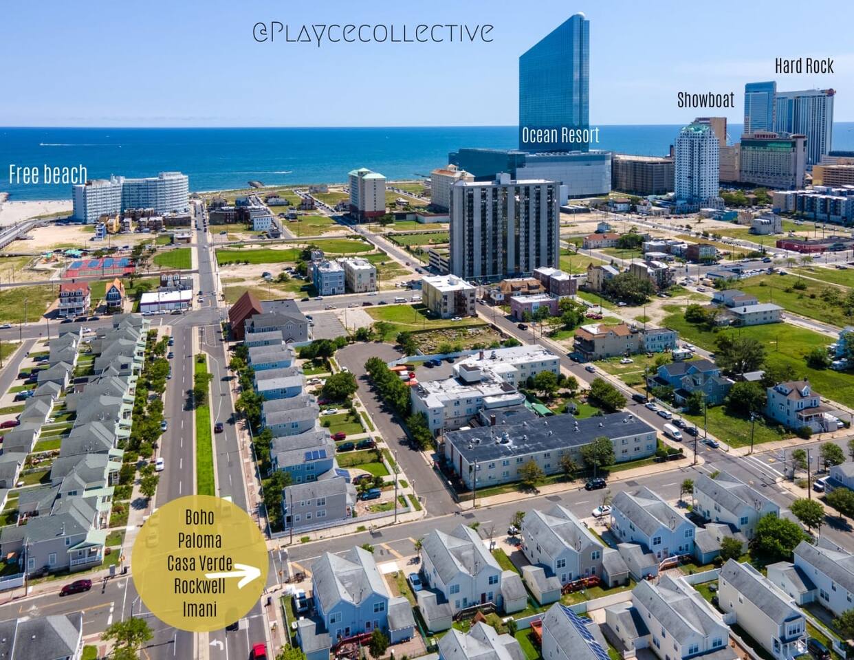 This uniquely designed home is an amazing Playce to have a memorable stay! Come enjoy the tasteful decor and comforts at Boho Playce! Our prices are up to date and non-negotiable. Our houses are unique and unlike anything else in AC. Respectfully, requests for negotiations will not be answered. IF YOUR DATES ARE BOOKED, PLEASE ASK ABOUT OUR OTHER LISTINGS. LIVING ROOM: Offers a smart tv (There is no cable for the TVs, just streaming apps) and comfortable seating. KITCHEN: -Fully equipped & great for entertaining and making meals. -There is a powder room off the kitchen. DEN: -Features a warm vibe with more seating to hang out. BACKYARD: -Fully fenced in, with a charcoal grill. -Please note that we do not supply charcoal. Guests must supply charcoal, supplies and please dispose of used charcoal. PARTY ROOM: This is a garage space (You may not park in here or remove furniture. We’ve spent a lot of time designing and furnishing this garage space). SLEEPING ARRANGEMENTS: -This house sleeps 9. -Please review bedding layouts when considering space and comfort. MASTER BEDROOM: -En suite full bathroom -1 Queen Sized bed -Futon MIDDLE BEDROOM: -2 Twin Sized beds BACK BEDROOM: -1 Queen Sized bed DEN: -1 futon LIVING ROOM: -Sofa PETS: We will consider pets but they must be pre-approved, meet our insurance guidelines, and there is a $40/night fee. You are fully responsible for damages, stains, and abiding by our pet rules. Not all breeds are allowed. Failure to follow rules can result in loss of security deposit and/or immediate eviction. LOCATION: Please keep in mind this is a city so there is potential for noise and other similar issues. Be aware of your surroundings. This house is 1 block from the boardwalk & approximately 3.5 blocks to the inlet and ocean beach entrances. LARGER GROUPS: -This house sleeps 9. -Please review bedding layouts when considering space and comfort. -If you have groups larger than 9 people please consider renting 2+ houses. -Rockwell and Boho are all within a few steps of each other on the same street, and Imani is just a few blocks away. -The largest house, Bad & Beachy Playce, is a 4 bedroom 3 bath with ocean views, sleeps 12, and is a block and a half from this property. Check out our other listings on IG or #PlayceCollective BOOK WITH US and unlock discounts and special offers exclusive to Cozy Cohost guests. Take advantage of all that Atlantic City has to offer and enjoy savings at top local spots including famous restaurants, night clubs, spas, coffee shops, distilleries, breweries, boat tours, bike rentals, mini golf, and more...
