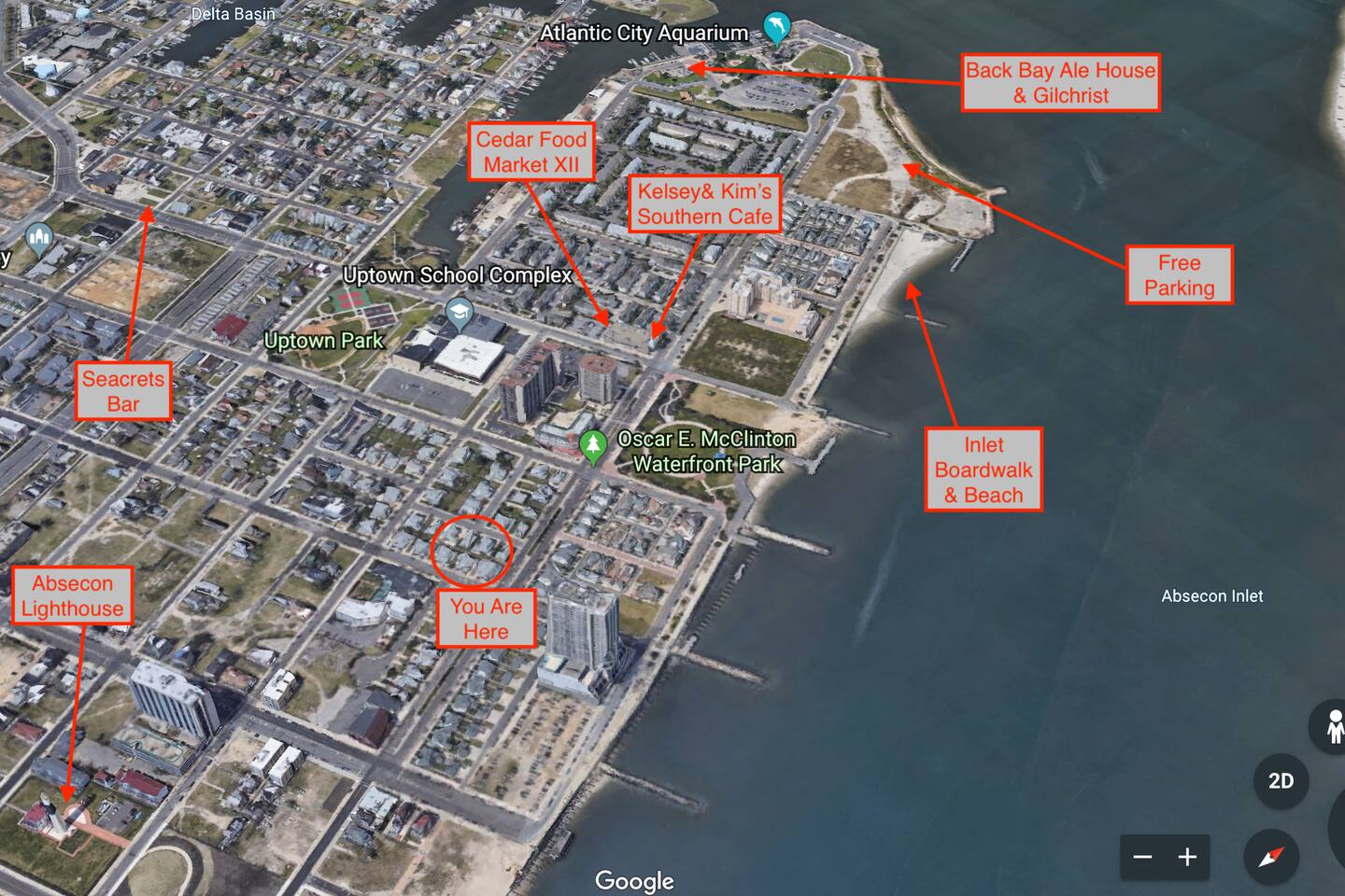 The inlet neighborhood is great area of Atlantic City. Right near Gardner's Basin with pretty landscaping, well kept properties and close to the inlet boardwalk. Still a short distance the main boardwalk, Casinos, piers, and the Ocean beach! -Cedar Market is 1/2 block away and has all of the necessities in case you forgot anything. -Gilchrist's is an AMAZING brunch spot (closes at 2) on the water, known for their famous pancakes -Kelsey & Kim's is 2 blocks away- delicious soul food -Little Water Distillery and The Seed Brewery is on the same street about .4 mi away for fun/different experience APPROXIMATE DRIVE TIMES TO LOCAL ATTRACTIONS: 1-10 mins to The Beach and Boardwalk, depending on the desired vicinity 2 mins to Ocean Resort and Casino 3 mins to Showboat Hotel 5 mins to Hard Rock Casino/Steel Pier 7 mins to Borgata 7 mins to Harrah's 7 mins to Golden Nugget 7 mins to Resorts 8 min to The Walk Tanger Outlet 8 mins to AC Convention Center 8 mins to the AC train and bus terminal 8 mins to AC Expressway 8 mins to Ballys and Caesars 10 mins to Boardwalk Hall 12 mins to Tropicana 14 mins to Stockton University 24 mins to Atlantic City International Airport