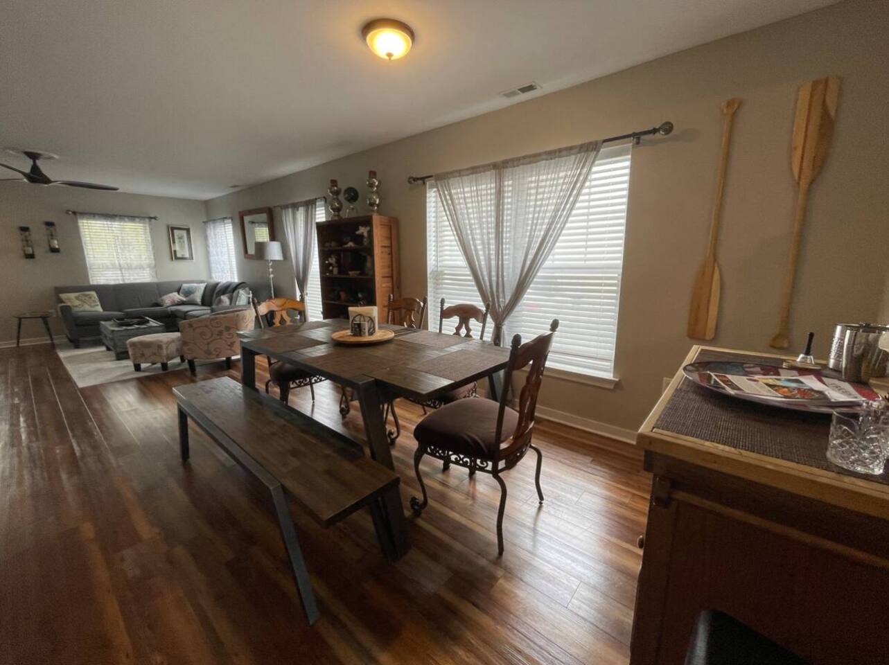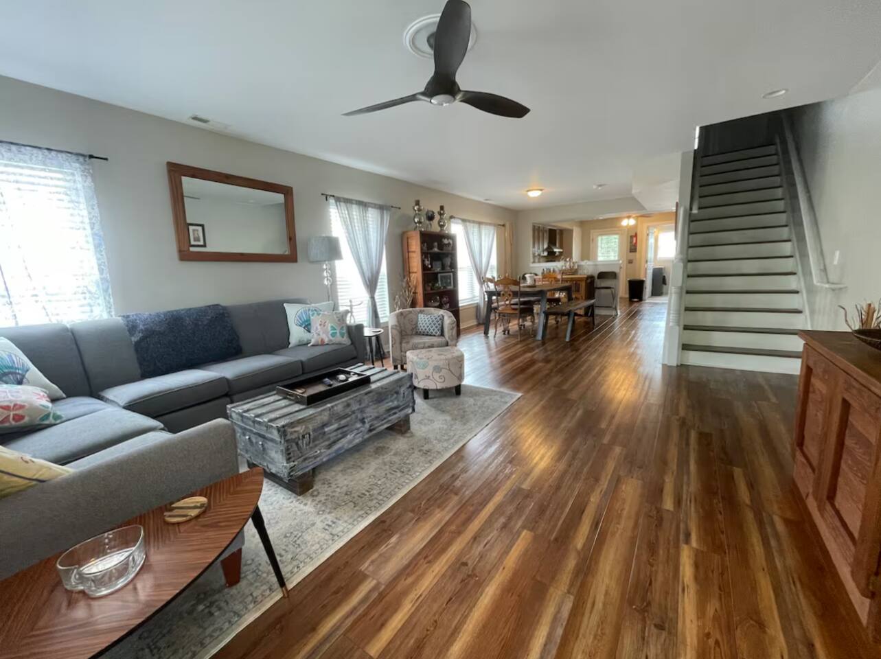 ACCESS & ENTRY: -Guests will have access to the entire home during their stay. -Please note that there are stairs to the second floor. -We ask that you please respect the home and the neighbors. -Please note that check-out time is promptly at 11:00 AM. Failure to check out by this time may result in a $100 fee per hour. We appreciate your cooperation in ensuring a smooth transition for our next guests. Thank you for your understanding! KEYLESS ENTRY: -There is keyless entry. Your host will provide you with the door code approximately one hour prior to check in the day of your trip. PARKING: -Guests may use the driveway at the side of the home that can fit 2 vehicles. -The driveway is connected to the neighbors with no divider, so always be sure to stay on our side closest to the home. -You can park 2 cars but it must be in single file to ensure you are not on the neighbor's side. ADDITIONAL PARKING: -You can on street park on the street where available. -Please be courteous to the neighbors when parking, do not block driveways or sidewalks. -Guests are responsible for city street parking compliance; read & follow signage to avoid parking tickets. -We are not responsible for parking tickets due to negligence. MAIL: -Please do not ship items to the property. -If there is something of priority that you need shipped please reach out to us directly for alternative options. -We are not responsible for any items shipped to the property. ENVIRONMENTAL NOTES: -Property located in a city environment; potential for noise from cars or foot traffic. SECURITY: -The home is protected by exterior ring camera security.