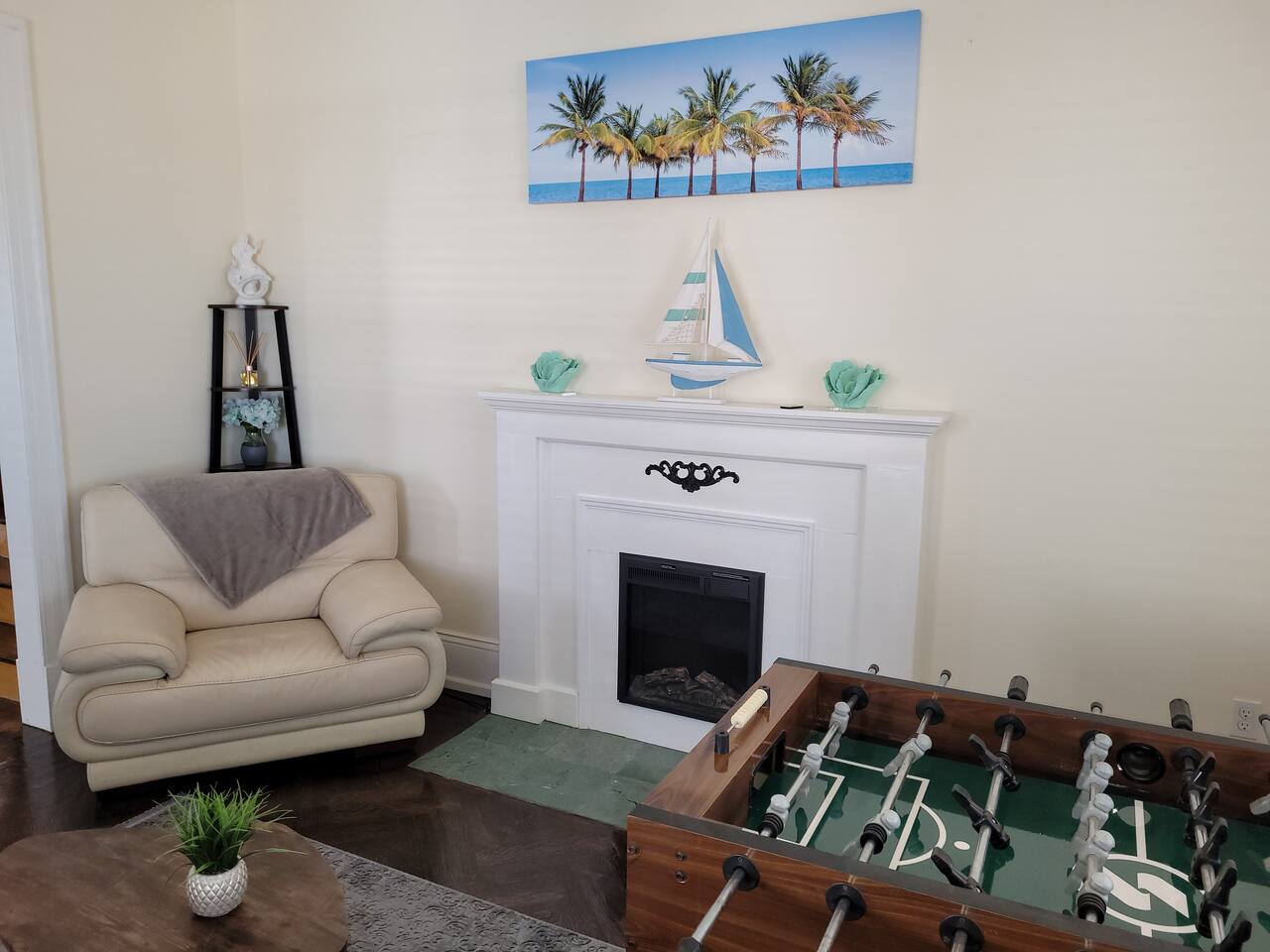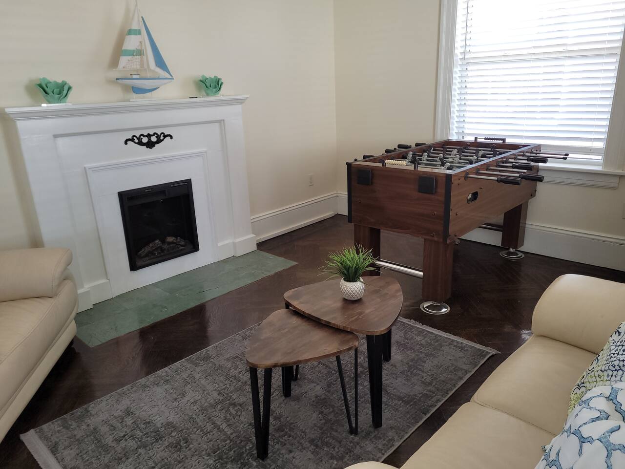 Enjoy this alluring and picturesque home that is full of character and wonderful amenities all while being in a marvelous location, just a stroll away from the boardwalk and ocean. **MAIN LEVEL: SITTING ROOM: Includes a couch, comfy chair and a fun foosball table LIVING ROOM: Includes a couch and a smart TV for viewing pleasure (No cable, just streaming apps) DINING AREA: Table for 6-8 people KITCHEN: Well stocked with all appliances FULL BATHROOM: with stand up shower EXTERIOR: There is a large porch in the front of the home, and off of the kitchen is a back deck with outdoor seating and a charcoal grill. (Please be advised that we do not supply charcoal or lighter fluid, guests must provide their own). **SECOND LEVEL: -All the bedrooms have ample clothing storage and cozy linens. MASTER BEDROOM: 1 Queen Sized bed, a smart TV & an en suite master bath which features a double vanity, a tub and a stand up shower BEDROOM 2: 1 Queen Sized bed BATHROOM: Full Bathroom in hallway **THIRD LEVEL: BEDROOM 3: 1 Queen Sized bed BEDROOM 4: 1 Queen Sized bed LOUNGE ROOM: Includes sectional sofa and smart TV BOOK WITH US and unlock discounts and special offers exclusive to Cozy Cohost guests. Take advantage of all that Atlantic City has to offer and enjoy savings at top local spots including famous restaurants, night clubs, spas, coffee shops, distilleries, breweries, boat tours, bike rentals, mini golf, and more...