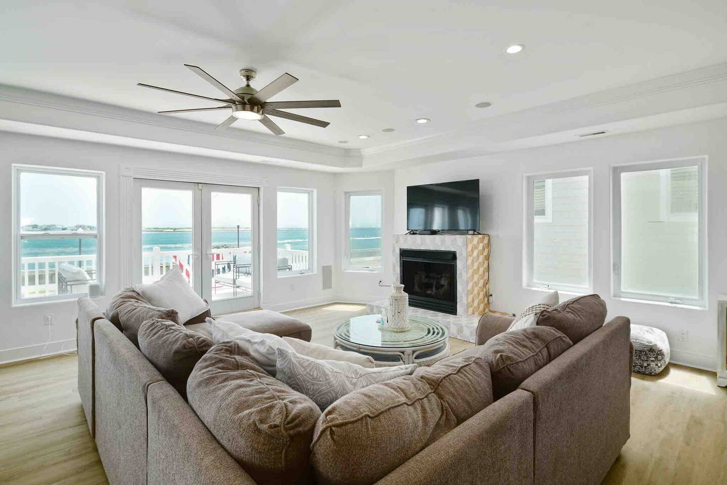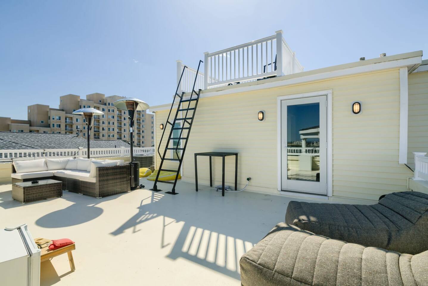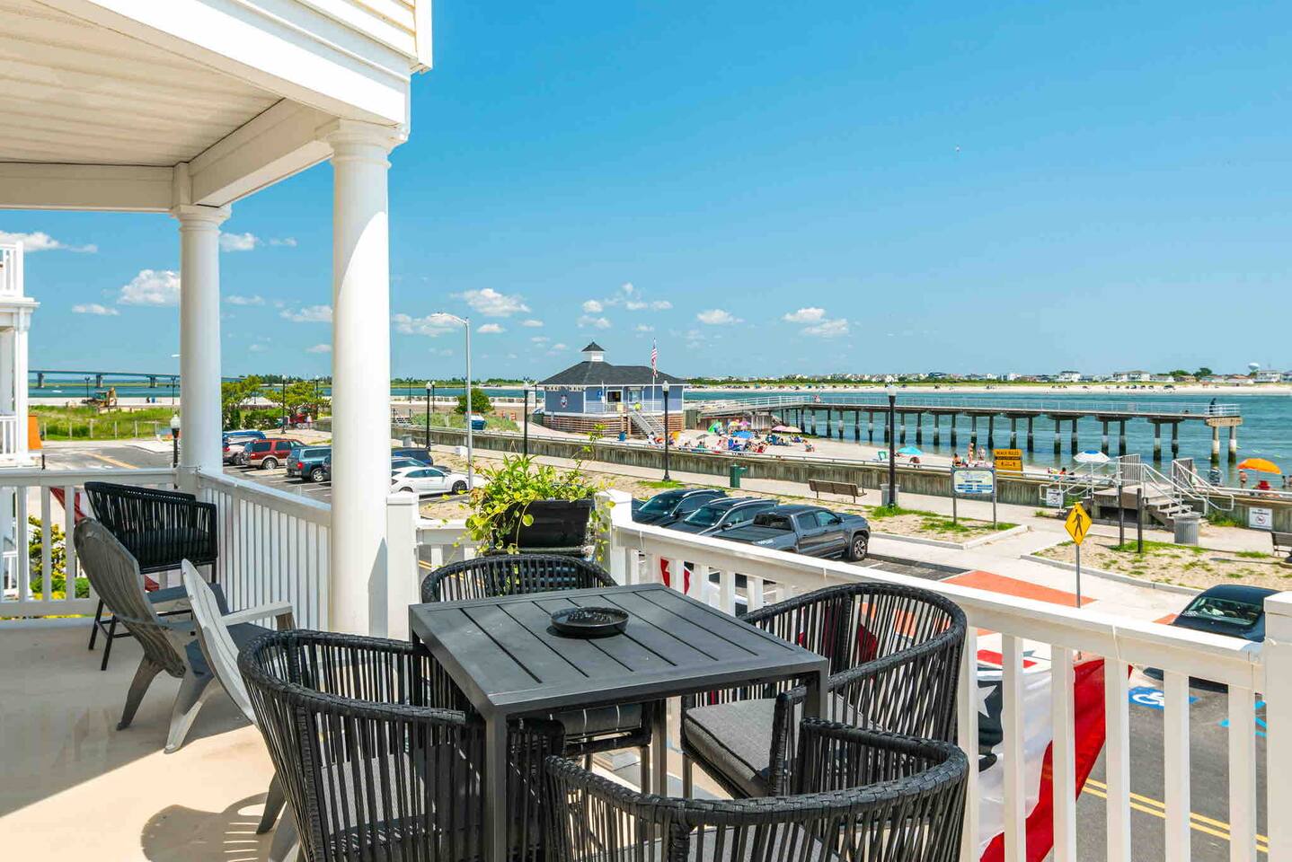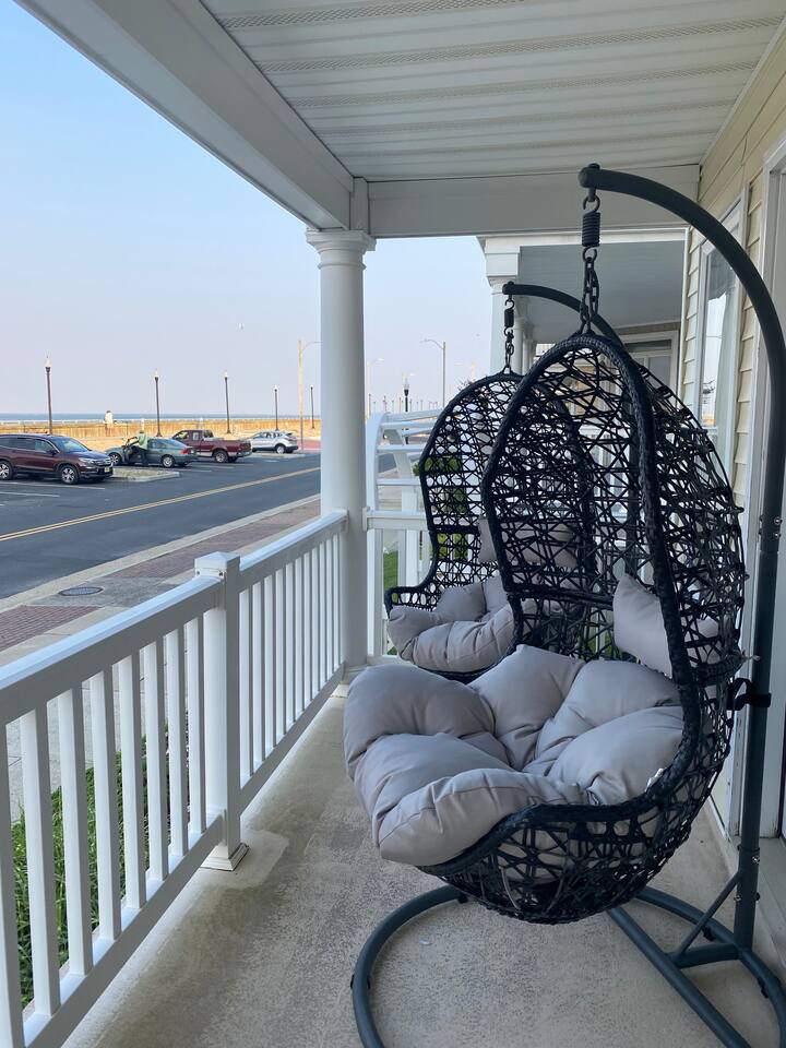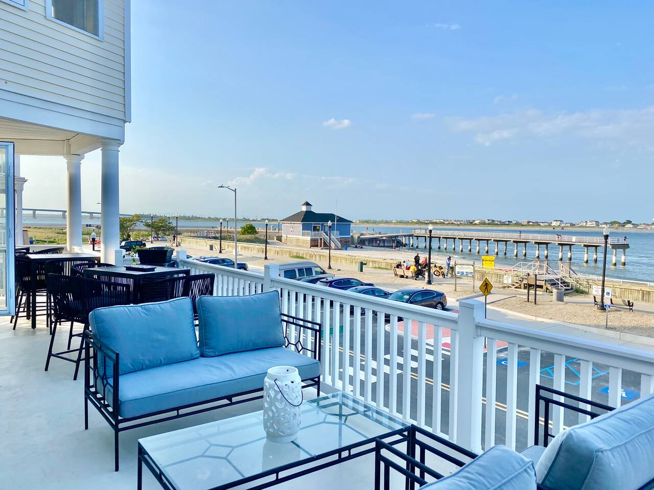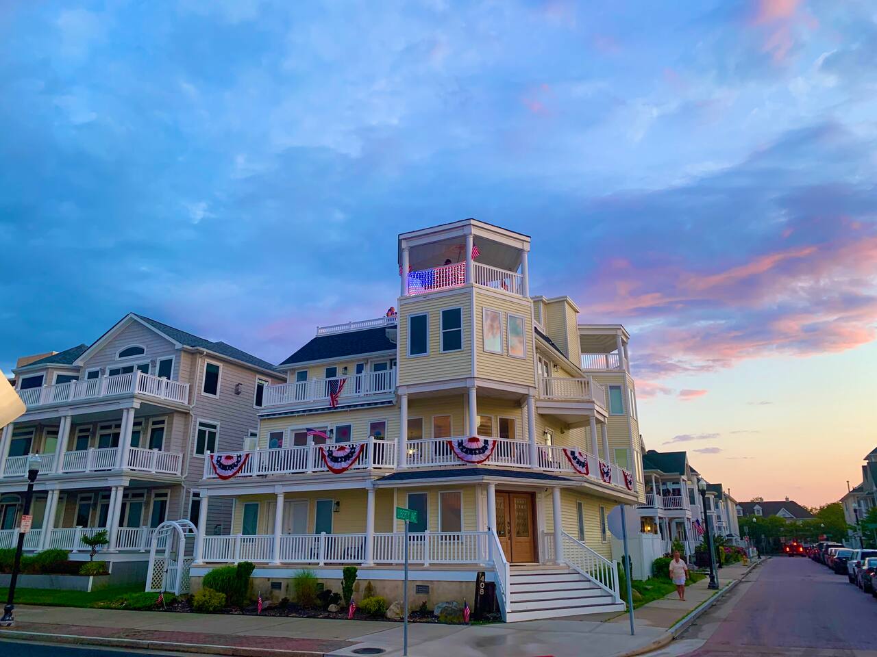 Wake up to the sound of waves, take in a rooftop sunrise, then make your way to the beach or spend your time on the private roof top. This is one of the most unique homes in AC. While this property looks like a hotel or bed and breakfast from the outside, the whole house is yours to enjoy a few days of relaxation and unparalleled beautiful views. This is truly one of the most unique beachfront homes in all of Atlantic City and the surrounding areas. Located steps from the beach entrance, it doesn’t get any more convenient. 6 bedrooms and 4.5 bathrooms and an outdoor shower. The layout is as follows.. FIRST FLOOR: -Foyer with travertine tile and grand crystal chandelier. -Bedroom 1: King bed, Queen sleeper, full length mirrors, private terrace. Sleeps 4. -Bedroom 2: King bed, Twin bed, large walk in closet, 1 rollaway memory foam bed (in closet). Sleeps 4. -Bedroom 3- two Queen beds, floor to ceiling mirrors. Sleeps 4. -Bathroom 1- double vanity, tub/shower combo. -Bathroom 2- shower stall, laundry, private toilet. -Garage for storage with a couple bikes and beach chairs (guests are still encouraged to bring their own). SECOND FLOOR: -Open concept living/dining/kitchen. -Bathroom 3- Half bathroom/powder room off of entertaining space. -Bar with wine fridge and ice maker (so helpful when you have a large group). -Wrap around balcony with ample seating and amazing views. Grill for your use (guests are responsible for their own propane and for cleaning the grill following their usage. Failure can result in an additional grill cleaning fee). -Bedroom 4- Suite w/ bathroom. King bed, Twin bed, ceiling fan, floor to ceiling mirrors, bathroom with jacuzzi jet tub, separate shower, double vanity, private toilet. Sleeps 3. THIRD FLOOR SUITE: -Bedroom 5/Bath 5- 1,200 sq ft room with tons of windows and views of the water, King bed (facing the water), dining area, Twin bed (in separate small space with a door), sectional, 55" smart tv, pool table, 2 balconies overlooking the ocean. Sleeps 3. -Large walk in shower with rain shower head, double vanity, large 2 person jacuzzi tub with water views. -Large laundry room with washer, dryer, iron. FOURTH FLOOR: -1000 sq ft roof top with unparalleled views of the ocean, inlet, Brigantine bridge and the city's ONLY crow's nest with incredible 360 degree views. WEDDINGS/EVENTS: -This is the perfect home for family reunions, small weddings, bachelorettes, or just a relaxing weekend away. -If you are interested in weddings or events but our calendar isn't open that far in advance, we can open it up for you. -Additional fees apply to weddings and events along with a separate contract. -No more than 20 guests without prior approval in writing. PETS: -Brand new carpet installed in 2021 therefore we respectfully have to decline pets. BOOK WITH US and unlock discounts and special offers exclusive to Cozy Cohost guests. Take advantage of all that Atlantic City has to offer and enjoy savings at top local spots including famous restaurants, night clubs, spas, coffee shops, distilleries, breweries, boat tours, bike rentals, mini golf, and more...