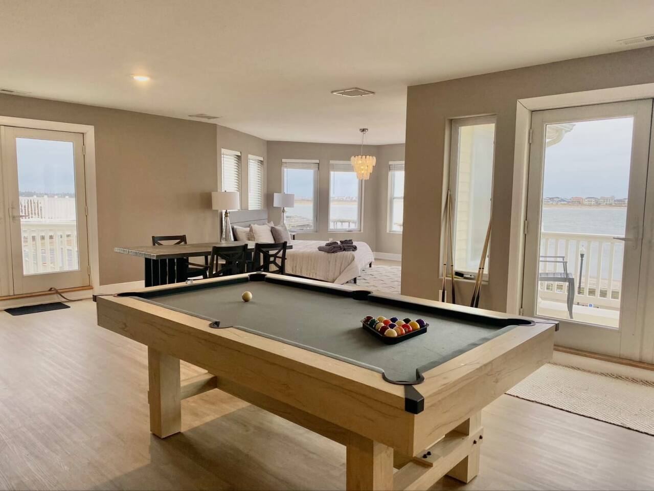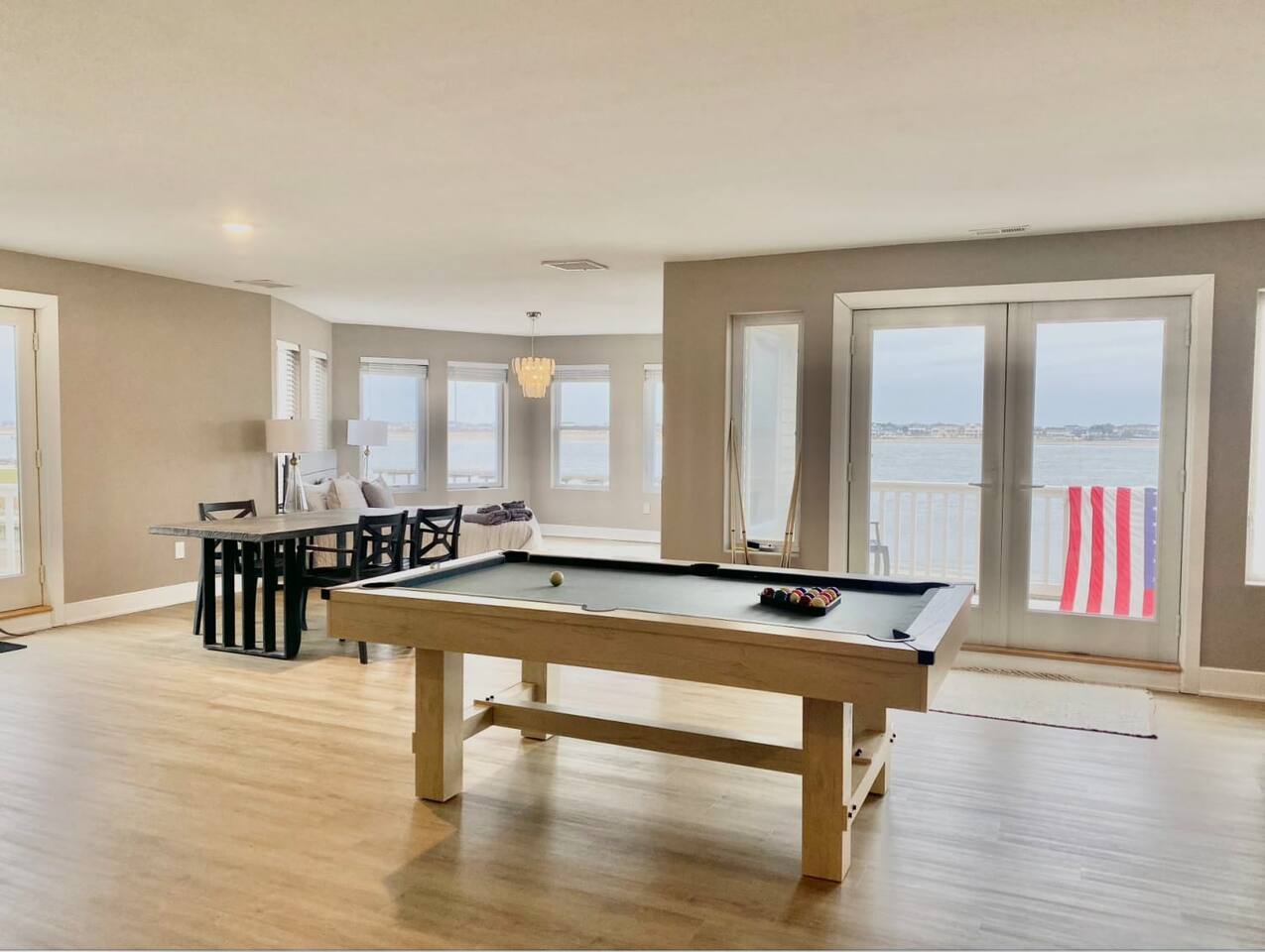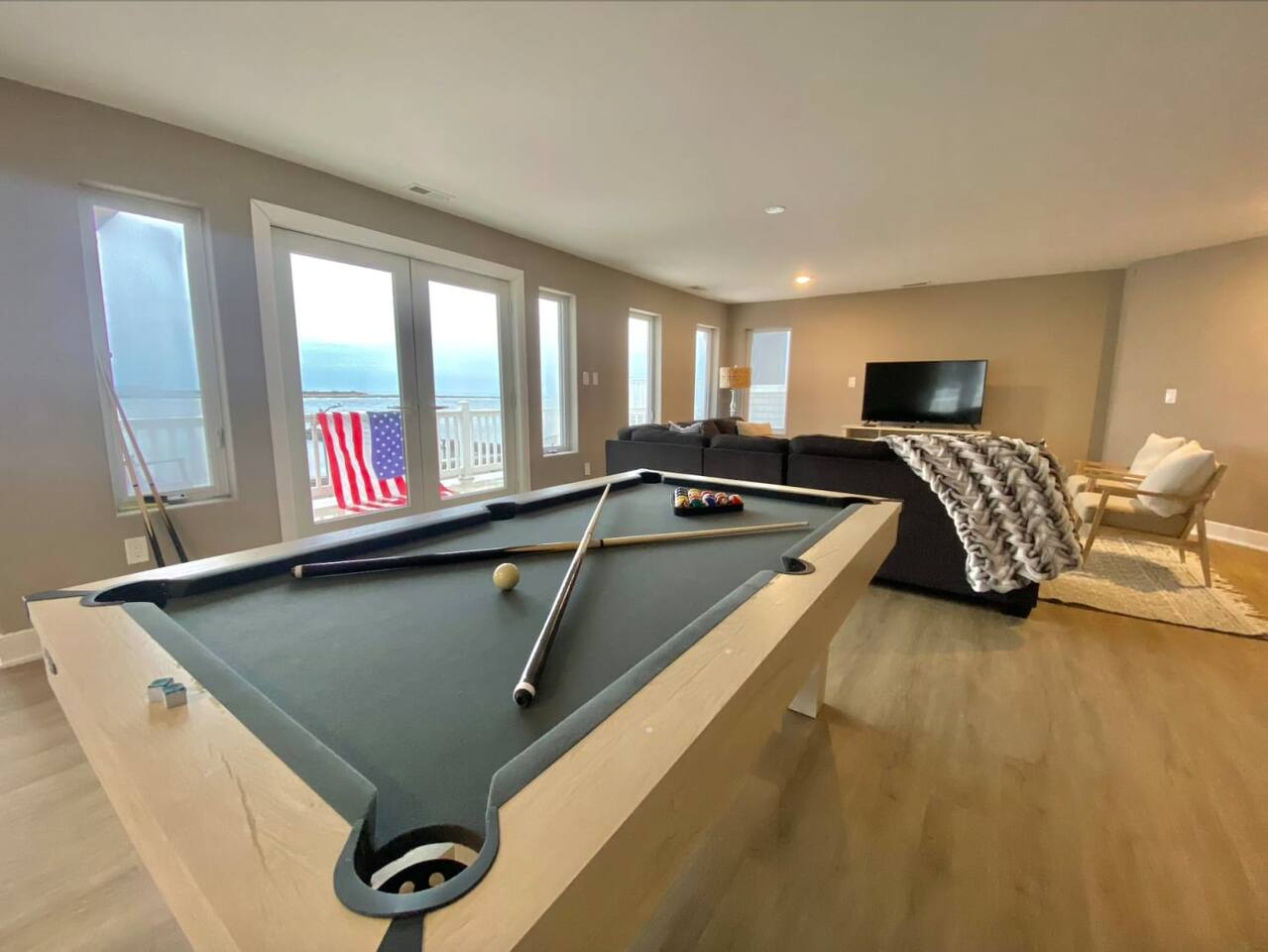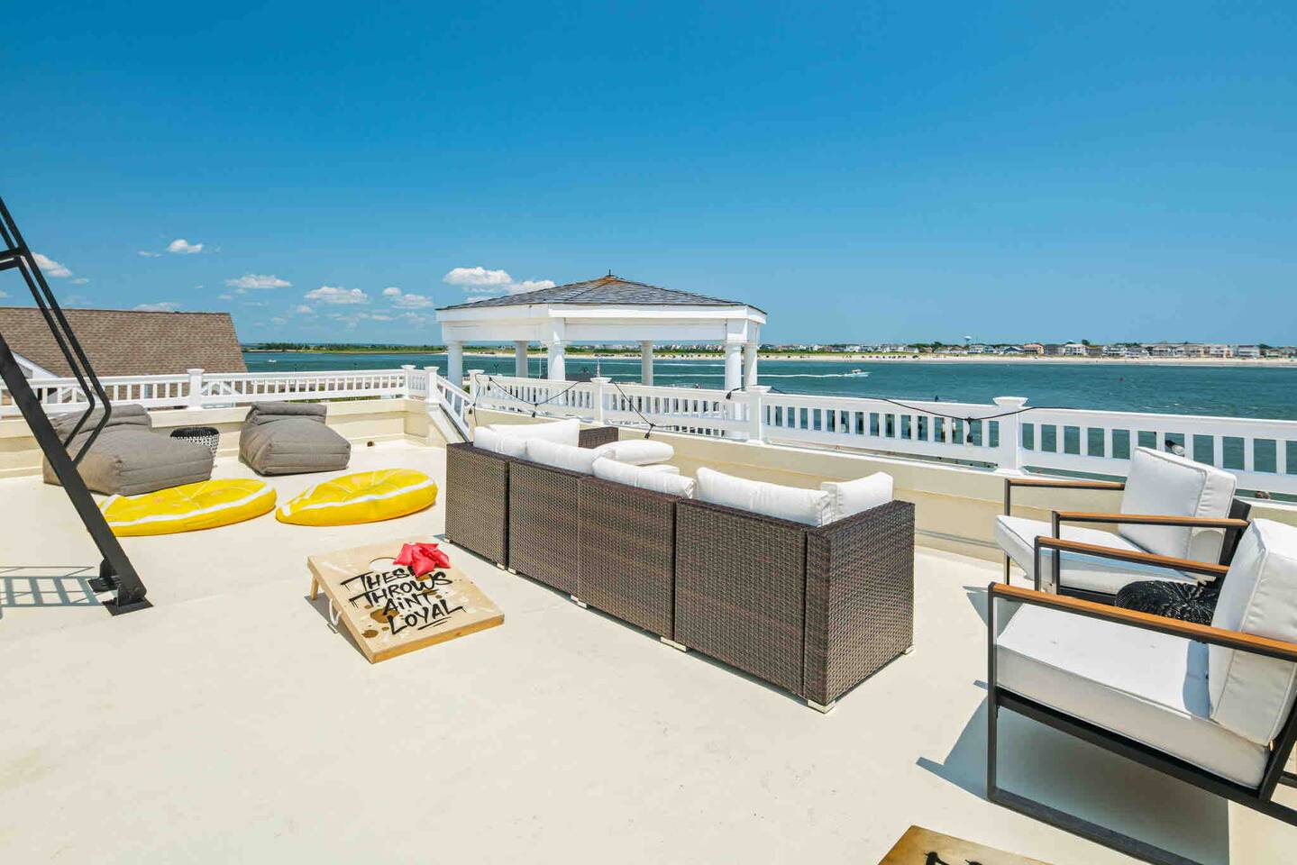Wake up to the sound of waves, take in a rooftop sunrise, then make your way to the beach or spend your time on the private roof top. This is one of the most unique homes in AC. While this property looks like a hotel or bed and breakfast from the outside, the whole house is yours to enjoy a few days of relaxation and unparalleled beautiful views. This is truly one of the most unique beachfront homes in all of Atlantic City and the surrounding areas. Located steps from the beach entrance, it doesn’t get any more convenient. 6 bedrooms and 4.5 bathrooms and an outdoor shower. The layout is as follows.. FIRST FLOOR: -Foyer with travertine tile and grand crystal chandelier. -Bedroom 1: King bed, Queen sleeper, full length mirrors, private terrace. Sleeps 4. -Bedroom 2: King bed, Twin bed, large walk in closet, 1 rollaway memory foam bed (in closet). Sleeps 4. -Bedroom 3- two Queen beds, floor to ceiling mirrors. Sleeps 4. -Bathroom 1- double vanity, tub/shower combo. -Bathroom 2- shower stall, laundry, private toilet. -Garage for storage with a couple bikes and beach chairs (guests are still encouraged to bring their own). SECOND FLOOR: -Open concept living/dining/kitchen. -Bathroom 3- Half bathroom/powder room off of entertaining space. -Bar with wine fridge and ice maker (so helpful when you have a large group). -Wrap around balcony with ample seating and amazing views. Grill for your use (guests are responsible for their own propane and for cleaning the grill following their usage. Failure can result in an additional grill cleaning fee). -Bedroom 4- Suite w/ bathroom. King bed, Twin bed, ceiling fan, floor to ceiling mirrors, bathroom with jacuzzi jet tub, separate shower, double vanity, private toilet. Sleeps 3. THIRD FLOOR SUITE: -Bedroom 5/Bath 5- 1,200 sq ft room with tons of windows and views of the water, King bed (facing the water), dining area, Twin bed (in separate small space with a door), sectional, 55" smart tv, pool table, 2 balconies overlooking the ocean. Sleeps 3. -Large walk in shower with rain shower head, double vanity, large 2 person jacuzzi tub with water views. -Large laundry room with washer, dryer, iron. FOURTH FLOOR: -1000 sq ft roof top with unparalleled views of the ocean, inlet, Brigantine bridge and the city's ONLY crow's nest with incredible 360 degree views. WEDDINGS/EVENTS: -This is the perfect home for family reunions, small weddings, bachelorettes, or just a relaxing weekend away. -If you are interested in weddings or events but our calendar isn't open that far in advance, we can open it up for you. -Additional fees apply to weddings and events along with a separate contract. -No more than 20 guests without prior approval in writing. PETS: -Brand new carpet installed in 2021 therefore we respectfully have to decline pets. BOOK WITH US and unlock discounts and special offers exclusive to Cozy Cohost guests. Take advantage of all that Atlantic City has to offer and enjoy savings at top local spots including famous restaurants, night clubs, spas, coffee shops, distilleries, breweries, boat tours, bike rentals, mini golf, and more...