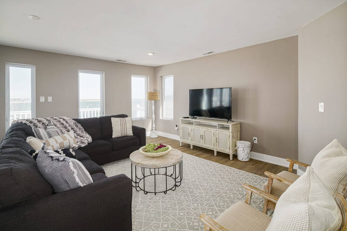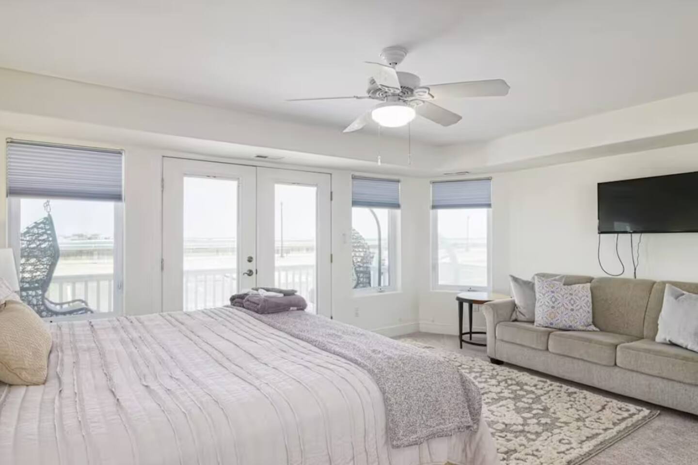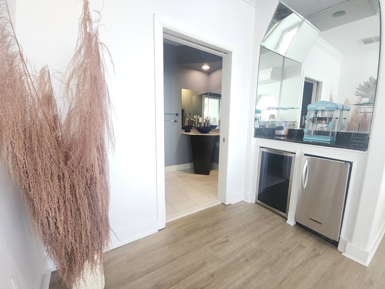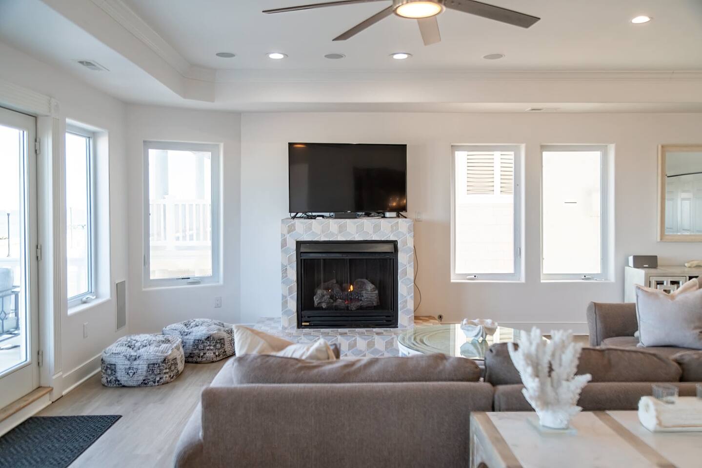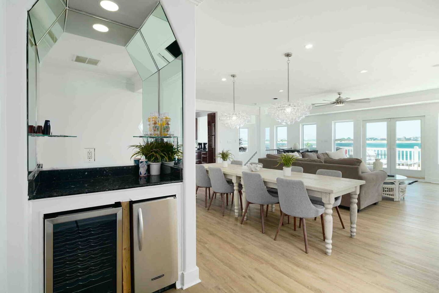 Wake up to the sound of waves, take in a rooftop sunrise, then make your way to the beach or spend your time on the private roof top. This is one of the most unique homes in AC. While this property looks like a hotel or bed and breakfast from the outside, the whole house is yours to enjoy a few days of relaxation and unparalleled beautiful views. This is truly one of the most unique beachfront homes in all of Atlantic City and the surrounding areas. Located steps from the beach entrance, it doesn’t get any more convenient. 6 bedrooms and 4.5 bathrooms and an outdoor shower. The layout is as follows.. FIRST FLOOR: -Foyer with travertine tile and grand crystal chandelier. -Bedroom 1: King bed, Queen sleeper, full length mirrors, private terrace. Sleeps 4. -Bedroom 2: King bed, Twin bed, large walk in closet, 1 rollaway memory foam bed (in closet). Sleeps 4. -Bedroom 3- two Queen beds, floor to ceiling mirrors. Sleeps 4. -Bathroom 1- double vanity, tub/shower combo. -Bathroom 2- shower stall, laundry, private toilet. -Garage for storage with a couple bikes and beach chairs (guests are still encouraged to bring their own). SECOND FLOOR: -Open concept living/dining/kitchen. -Bathroom 3- Half bathroom/powder room off of entertaining space. -Bar with wine fridge and ice maker (so helpful when you have a large group). -Wrap around balcony with ample seating and amazing views. Grill for your use (guests are responsible for their own propane and for cleaning the grill following their usage. Failure can result in an additional grill cleaning fee). -Bedroom 4- Suite w/ bathroom. King bed, Twin bed, ceiling fan, floor to ceiling mirrors, bathroom with jacuzzi jet tub, separate shower, double vanity, private toilet. Sleeps 3. THIRD FLOOR SUITE: -Bedroom 5/Bath 5- 1,200 sq ft room with tons of windows and views of the water, King bed (facing the water), dining area, Twin bed (in separate small space with a door), sectional, 55" smart tv, pool table, 2 balconies overlooking the ocean. Sleeps 3. -Large walk in shower with rain shower head, double vanity, large 2 person jacuzzi tub with water views. -Large laundry room with washer, dryer, iron. FOURTH FLOOR: -1000 sq ft roof top with unparalleled views of the ocean, inlet, Brigantine bridge and the city's ONLY crow's nest with incredible 360 degree views. WEDDINGS/EVENTS: -This is the perfect home for family reunions, small weddings, bachelorettes, or just a relaxing weekend away. -If you are interested in weddings or events but our calendar isn't open that far in advance, we can open it up for you. -Additional fees apply to weddings and events along with a separate contract. -No more than 20 guests without prior approval in writing. PETS: -Brand new carpet installed in 2021 therefore we respectfully have to decline pets. BOOK WITH US and unlock discounts and special offers exclusive to Cozy Cohost guests. Take advantage of all that Atlantic City has to offer and enjoy savings at top local spots including famous restaurants, night clubs, spas, coffee shops, distilleries, breweries, boat tours, bike rentals, mini golf, and more...