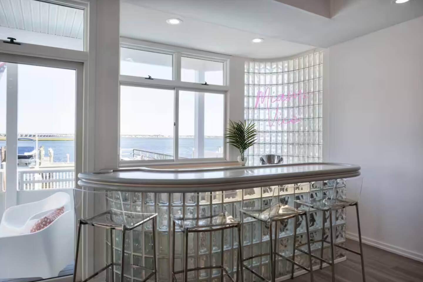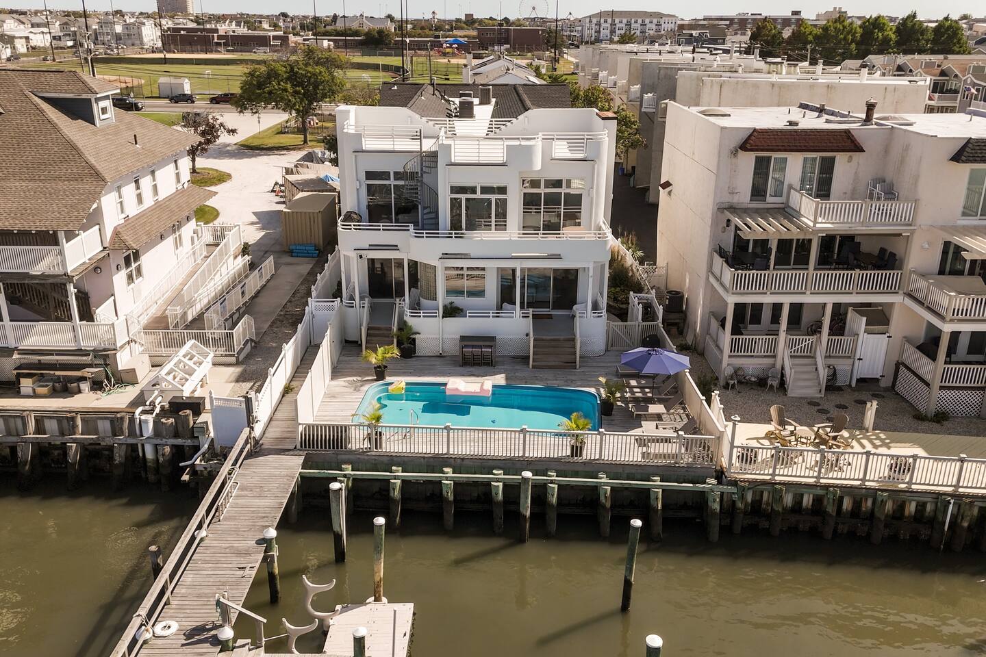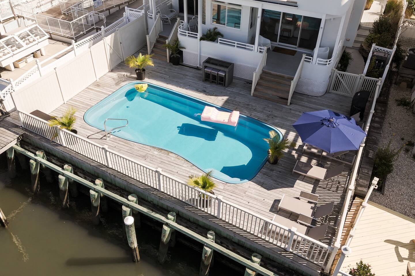 This beautiful home is a perfect location for a family or group to soak up all the best that Ocean City has to offer. Located directly on the water with marvelous views of the bay, close to stores, shops, beach and the boardwalk! If you are looking for a step back to the 80's with modern comforts, Miami Vice is a place for you! As you step inside this beautiful home, you'll be greeted with comfortable furnishings, plenty of natural light and beautiful views from each living room. Enjoy a game of pool, serve up a cocktail at your very own living room bar equipped with a wine fridge, or sunbathe on the deck around the private pool. Access to the dock and bay makes it easy to rent recreational water toys. The home features five spacious bedrooms, each thoughtfully decorated and designed with your comfort in mind. This wonderful property has so much to offer for everyone! FIRST LEVEL Living room #1 is the perfect place to relax after a day at the beach. It features a large sectional sofa and Smart TV. There is a Pool table, Bar with wine fridge and access to the exterior pool deck. This level has 2 full bathrooms, a laundry room and access to the garage. There are three bedrooms on the first level of the home: BEDROOM 1: Queen size bed, smart TV and a desk with a chair. Perfect for the person who needs a designated workspace! BEDROOM 2: Queen size bed, a smart TV and is connected to a full Jack and Jill bathroom. BEDROOM 3: King size bed, a smart TV and is connected to a full Jack and Jill bathroom. DECK: Beautiful private pool overlooking the bay. The deck has lounge chairs and seating. Head up to the second level, where you will find the second living room, private balcony, large kitchen with dining area, and two more bedrooms. SECOND LEVEL: Head up to the second level, where you will find living room #2, a private balcony, large kitchen with dining area, and two more bedrooms. BEDROOM 4: Bunk bed, the top is a twin and the bottom is a full. This room has a pocket door into the primary suite, perfect for the kids! BEDROOM 5: The Primary Suite, which boasts tons of natural, has California king size bed, smart TV, Jacuzzi tub, oversized shower and bidet. AMENITIES: -All TV's are smart TV's (no cable, only streaming apps). -The house has central forced air for heating and cooling with separate thermostats on each floor. -The home is also equipped with Wifi, coffee maker, hair dryer, a grill, wine cooler, and much more! -There is parking for 2 vehicles in the driveway and 1 in the garage -Private pool with deck that has seating, lounge chairs and a propane grill. BEACH INFORMATION: -Beach/Pool towels are provided -Beach chairs, umbrellas, wagons or coolers are not provided -Beach tags are not provided, Beach tags are required in Ocean City June 1st-Labor Day. They can purchased at the following locations, as well at beach entrances: City Hall (861 Asbury Ave.): 9 a.m. to 5 p.m. daily Rt. 52 Welcome Center: 9 a.m. to 4:30 p.m. Monday-Friday; 9 a.m. to 4 p.m. Saturday; 9 a.m. to 2 p.m. Sunday Henry Knight Building (12th Street and Haven Ave.): 9 a.m. to 4:30 p.m. Monday to Friday Aquatic & Fitness Center (17th Street and Simpson Ave.): 5a.m. to 9 p.m. Monday to Friday; 7 a.m. to 5 p.m. Saturday and Sunday. 46th Street Welcome Center: 9 a.m. to 4 p.m. Thursday to Saturday; 9 a.m. to 4 p.m. Monday. Location Information: Walk: Walk straight up 6th street and end up on the beach or boardwalk! Just 20 minutes 8 minutes to Acme Food Store 7 minutes to Downtown (Asbury Avenue) with tons of shops and restaurants Drive: Less than 5 minutes to the Ocean City Beach and Boardwalk Atlantic City Boardwalk, beach and casinos are a 25 minute drive (be sure to account for summer traffic) 5 minutes to Circle Liquor Store, right off the island 15 minutes to Corson's Inlet State Park Bikes: We suggest 12th Street Bikes for boardwalk surrey rides or daily or weekly bike rentals. Contact them for prices and availability