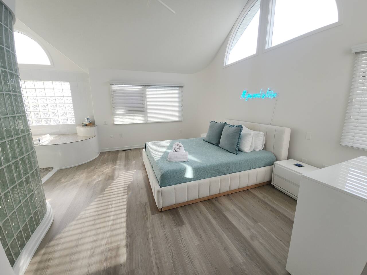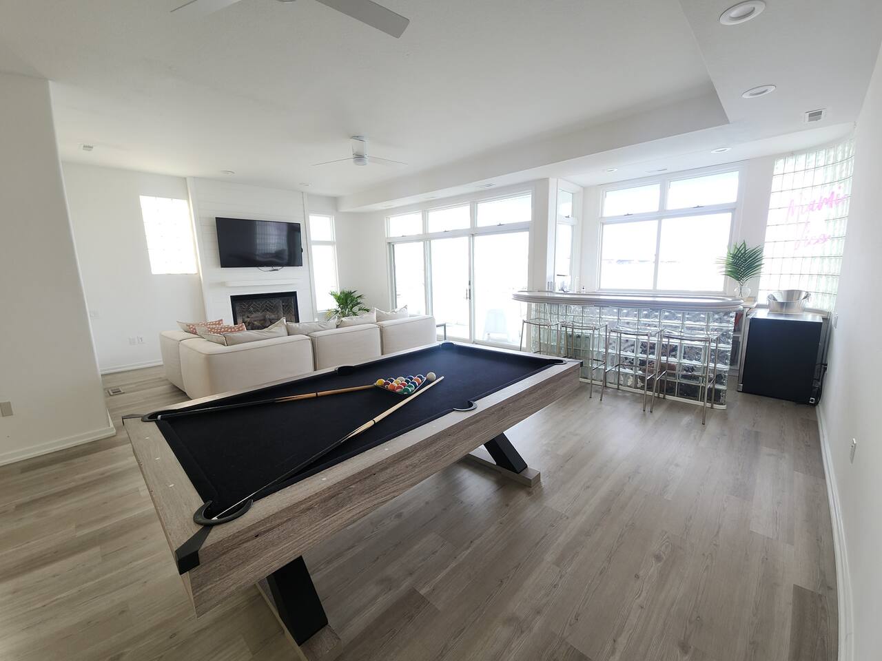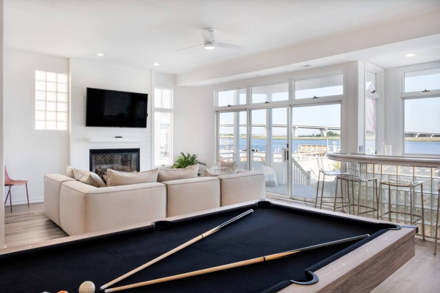 This beautiful home is a perfect location for a family or group to soak up all the best that Ocean City has to offer. Located directly on the water with marvelous views of the bay, close to stores, shops, beach and the boardwalk! If you are looking for a step back to the 80's with modern comforts, Miami Vice is a place for you! As you step inside this beautiful home, you'll be greeted with comfortable furnishings, plenty of natural light and beautiful views from each living room. Enjoy a game of pool, serve up a cocktail at your very own living room bar equipped with a wine fridge, or sunbathe on the deck around the private pool. Access to the dock and bay makes it easy to rent recreational water toys. The home features five spacious bedrooms, each thoughtfully decorated and designed with your comfort in mind. This wonderful property has so much to offer for everyone! FIRST LEVEL Living room #1 is the perfect place to relax after a day at the beach. It features a large sectional sofa and Smart TV. There is a Pool table, Bar with wine fridge and access to the exterior pool deck. This level has 2 full bathrooms, a laundry room and access to the garage. There are three bedrooms on the first level of the home: BEDROOM 1: Queen size bed, smart TV and a desk with a chair. Perfect for the person who needs a designated workspace! BEDROOM 2: Queen size bed, a smart TV and is connected to a full Jack and Jill bathroom. BEDROOM 3: King size bed, a smart TV and is connected to a full Jack and Jill bathroom. DECK: Beautiful private pool overlooking the bay. The deck has lounge chairs and seating. Head up to the second level, where you will find the second living room, private balcony, large kitchen with dining area, and two more bedrooms. SECOND LEVEL: Head up to the second level, where you will find living room #2, a private balcony, large kitchen with dining area, and two more bedrooms. BEDROOM 4: Bunk bed, the top is a twin and the bottom is a full. This room has a pocket door into the primary suite, perfect for the kids! BEDROOM 5: The Primary Suite, which boasts tons of natural, has California king size bed, smart TV, Jacuzzi tub, oversized shower and bidet. AMENITIES: -All TV's are smart TV's (no cable, only streaming apps). -The house has central forced air for heating and cooling with separate thermostats on each floor. -The home is also equipped with Wifi, coffee maker, hair dryer, a grill, wine cooler, and much more! -There is parking for 2 vehicles in the driveway and 1 in the garage -Private pool with deck that has seating, lounge chairs and a propane grill. BEACH INFORMATION: -Beach/Pool towels are provided -Beach chairs, umbrellas, wagons or coolers are not provided -Beach tags are not provided, Beach tags are required in Ocean City June 1st-Labor Day. They can purchased at the following locations, as well at beach entrances: City Hall (861 Asbury Ave.): 9 a.m. to 5 p.m. daily Rt. 52 Welcome Center: 9 a.m. to 4:30 p.m. Monday-Friday; 9 a.m. to 4 p.m. Saturday; 9 a.m. to 2 p.m. Sunday Henry Knight Building (12th Street and Haven Ave.): 9 a.m. to 4:30 p.m. Monday to Friday Aquatic & Fitness Center (17th Street and Simpson Ave.): 5a.m. to 9 p.m. Monday to Friday; 7 a.m. to 5 p.m. Saturday and Sunday. 46th Street Welcome Center: 9 a.m. to 4 p.m. Thursday to Saturday; 9 a.m. to 4 p.m. Monday. Location Information: Walk: Walk straight up 6th street and end up on the beach or boardwalk! Just 20 minutes 8 minutes to Acme Food Store 7 minutes to Downtown (Asbury Avenue) with tons of shops and restaurants Drive: Less than 5 minutes to the Ocean City Beach and Boardwalk Atlantic City Boardwalk, beach and casinos are a 25 minute drive (be sure to account for summer traffic) 5 minutes to Circle Liquor Store, right off the island 15 minutes to Corson's Inlet State Park Bikes: We suggest 12th Street Bikes for boardwalk surrey rides or daily or weekly bike rentals. Contact them for prices and availability