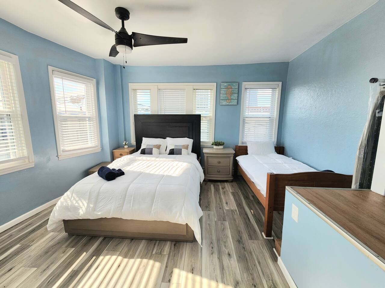 HONESTY & EXPECTATIONS: At "Ocean Rendezview", we want our guests to have a clear understanding of the distinctions between vacation rentals and hotels. While we diligently maintain our properties, wear and tear are inherent aspects of vacation rentals. Although we address issues promptly, the high volume of guests may result in occasional delays between stays. Any significant damage or serious concerns are prioritized and resolved before a guest's check-in, provided we are made aware of the issue. CLEANING: Our dedicated cleaning team meticulously sanitizes and cleans each home. Unlike standard hotel rooms, homes entail a more detailed cleaning process due to their larger size. Despite our team's efforts to ensure optimal cleanliness, minor oversights may occur. For substantial errors, we are committed to rectifying the situation promptly. While we take pride in our cleaning standards, we ask for understanding that, as in any human endeavor, perfection is not always attainable, especially when minor details have no direct impact on your stay. HOUSEHOLD ITEMS: As private residences, it's important to recognize that household items may break or require repairs during your stay. While we understand the inconvenience this may pose to our guests, it's equally disruptive for us. Appliances such as water tanks, HVAC systems, dishwashers, and refrigerators may experience issues. We cannot guarantee immunity from such occurrences, but we pledge to address and resolve any situation swiftly. While we assure our commitment to guests' well-being, we're honest about the potential for unforeseen issues. AMENITIES: -WiFi included; exterior ring camera security for added safety. -Linens, towels, and basic amenities provided. -Guests must purchase their own amenities when stock runs out. -No laundry detergent is provided. -Basic cookware supplies; no salt, pepper, oil, or kitchen condiments. RESERVATION/CANCELLATION NOTES: -If your dates are booked, please ask about our other listings. -Changing reservation dates or guest quantity may incur additional fees. -Rates/prices subject to change based on reservation adjustments. -Cancellation policy WILL apply if reservation is cancelled. Please review before booking. -Airbnb Trip Protection suggested for added coverage. OTHER DETAILS: -Atlantic City is a barrier island and city style environment; expect possible common sightings of household ants, critters or mice especially during certain times of the years. Properties are not immune to household issues like this and may have evidence of preventative treatments and measures. -Beaches are free; no tags or passes required. Beach amenities not provided. -We utilize quilts on most of our beddings for comfort, durability, and sanitary reasons. If extra blankets are needed, let us know before check-in. -If you are extremely sensitive to smells, please note that odors from food, smoke, or other sources from outside or neighboring units may occasionally be noticeable. If this is a major concern for you, please keep this in mind. -Atlantic City is an urban environment and, like many cities across the U.S., it can occasionally have a lively or city-like atmosphere. This may include noise from neighbors or occasional police activity in the surrounding areas. It is also a diverse cultural city, with a mix of people, backgrounds, and experiences that make it unique. While this is not uncommon for a city setting, we encourage guests to consider this when booking, especially if you’re seeking a quieter experience. ADDITIONAL INFORMATION: -Visit the "Where You'll Be" section for more information about the area. There are personalized house guide with local information, suggestions, and recommendations. -Respectful behavior requested due to close proximity of homes. -This is NOT a party house. City-wide quiet hours from 10pm-7am. -We ask that you please respect the neighbors, the neighborhood and the home. -Please monitor noise levels, especially during the night. -You must be 21 and over to book. -We ask that you please read the house rules and listing in full when booking. OUR COMMITMENT: We strive to provide each guest with a 5-star experience, enabling them to truly enjoy their getaways. However, we acknowledge that achieving absolute perfection in a private residence may be unrealistic. If a flawless experience is your expectation, a vacation property rental might not align with your preferences. Our aim is to be transparent, manage expectations, and ensure a comfortable stay for all our valued guests. We live in the city and are available 24/7 for your guest services. - Cozy Cohost LLC