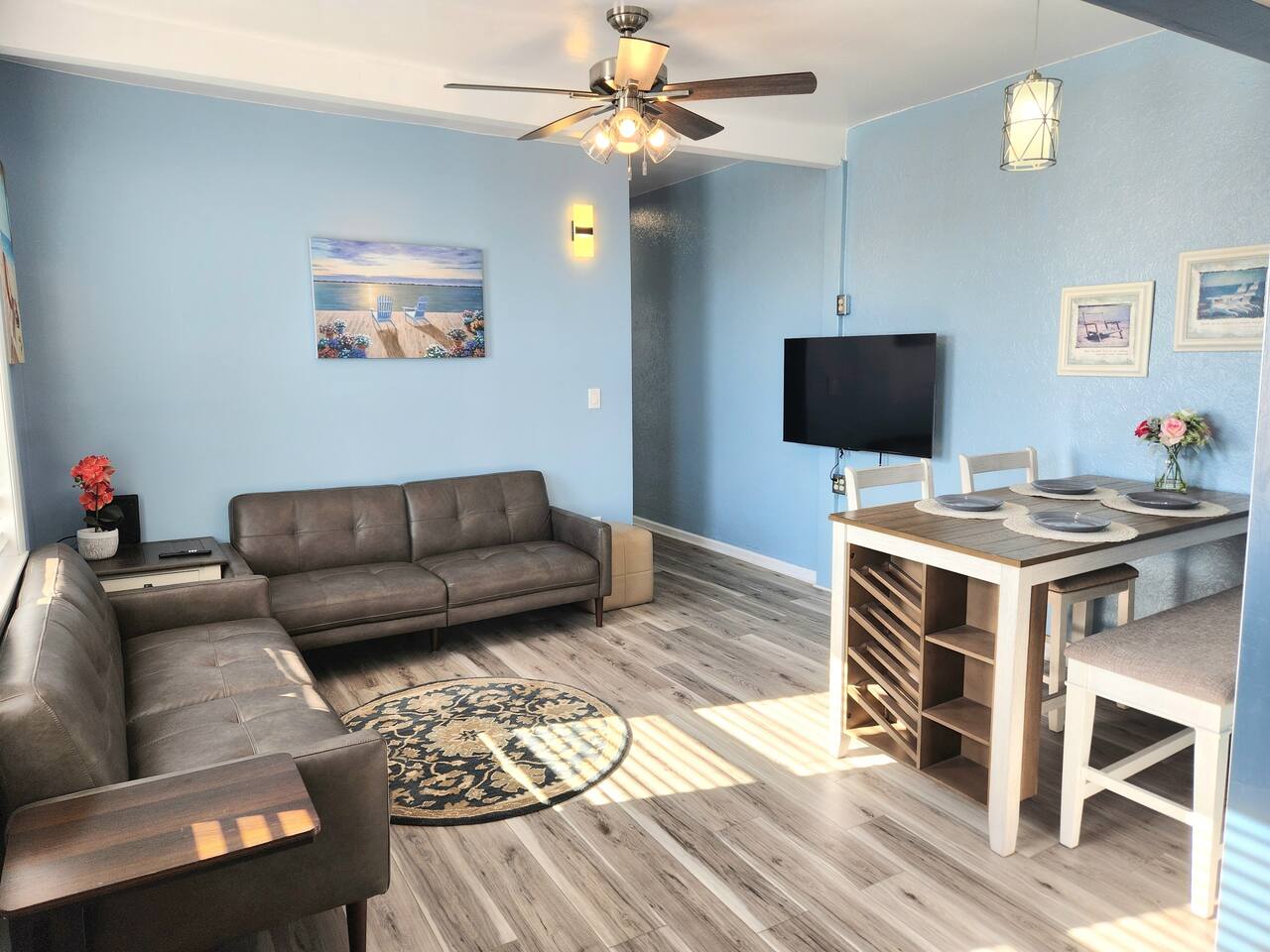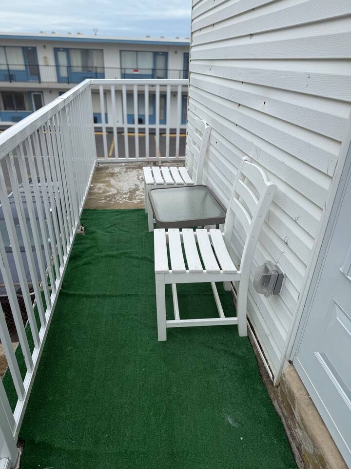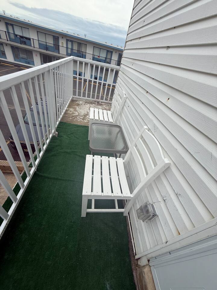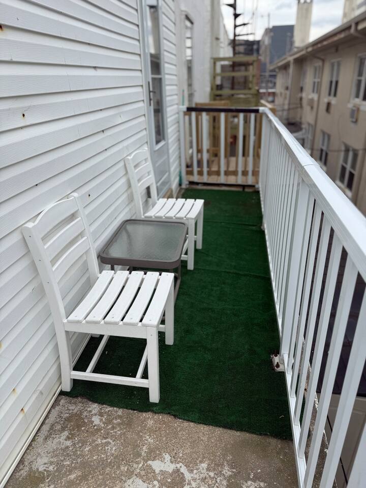 This sunny beach apartment is the upper level of a Duplex, with ocean views from every room, and a wrap around balcony. Step into a cozy space with 2 Bedrooms and 1 Full Bathroom. SLEEPING ARRANGEMENTS: -Both bedrooms are adorned with cozy linens. BEDROOM 1: 1 Queen Sized Bed, 1 Twin Sized Bed, SmartTV BEDROOM 2: 1 King Sized Bed KITCHEN: -The kitchen is brand new, fully stocked with amenities and new appliances. -Table to seat 4. LIVING ROOM: -The living room is cozy with a couch, loveseat, and a large smart TV. AMENITIES: -The home is also equipped with Wifi, a drip coffee maker, an iron and ironing board, air conditioning/heat and much more! -The apartment has it's own thermostat for temperature controls. LOCATION: This property is in a great vicinity to all that Atlantic City has to offer! Practically beachside, you can enjoy the sun and ocean, stroll the boardwalk and piers, visit eateries and bars, gamble at the nearby Casinos and shop till you drop at the Tanger Outlets. BOOK WITH US and unlock discounts and special offers exclusive to Cozy Cohost guests. Take advantage of all that Atlantic City has to offer and enjoy savings at top local spots including famous restaurants, night clubs, spas, coffee shops, distilleries, breweries, boat tours, bike rentals, mini golf, and more...