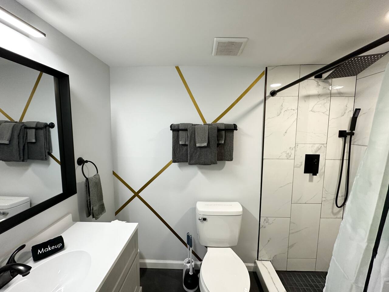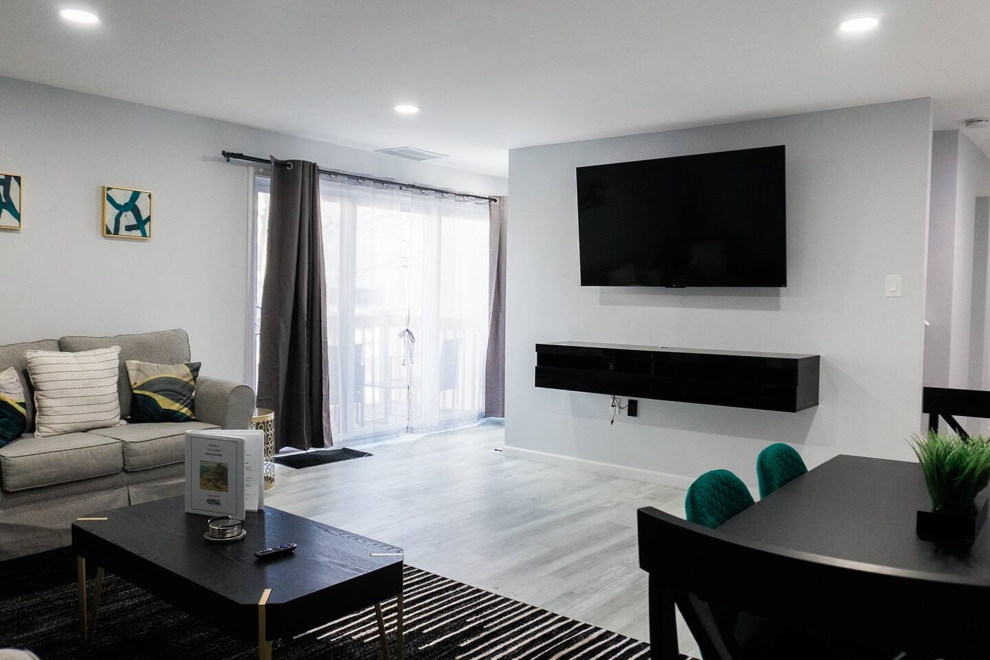 A beautiful and new modern unit, with an outside balcony and wonderful amenities! Enjoy this space with all the comforts and convenience to make for a perfect stay. Stylish and trendy with upscale finishes. LIVING AREA: The unit has a large living area with a dining table for 6, comfortable couches and a large smart TV with streaming apps for your viewing pleasure. (There is no cable for the TVs just streaming apps). KITCHEN: The kitchen is brand new with beautiful countertops, cabinets, stainless steel appliances and all the amenities you will need to prepare meals. SLEEPING ARRANGEMENTS: -The 2nd floor has 2 spacious ensuite bedrooms designed with comfort and style in mind, which comfortably sleep up to 6 guests. -Each bedroom has tasteful decor and include wall mounted smart TV’s (there is no cable, just streaming apps) and cozy bed linens. BEDROOM 1: 1 King Sized bed, a vanity/desk table, closet storage and a full bath with a tub. BEDROOM 2: 2 Queen Sized beds, a desk, a dresser, closet storage and a full bath with a stand-up shower. BALCONY: The sliding glass door opens to a small outdoor balcony perfect to enjoy a cup of coffee or a cocktail before heading to the Beach or Boardwalk! AMENITIES: The home is also equipped with Wifi, a coffee maker, an iron and ironing board, a hair dryer and much more! LOCATION: The unit is in a complex on a beach block directly across from Ocean Resort & Casino and next to The Showboat Hotel. Take a lovely, quick stroll to the boardwalk and beach. ADDITIONAL NOTES: -Please note that like many areas of the city, the complex parking lot has the possibility of puddling or flooding when it rains. This factor is out of our control and we suggest parking at Ocean Casino across the street in the event that it becomes problematic. -Please excuse the complex's appearance- it is under new management and the HOA is currently doing renovations and landscaping to maintenance the building and grounds. -Grills are not permitted to be used on the property as per HOA regulations. -Please be aware Atlantic City is a multi cultural city style area, and this complex is mostly vacation rentals and working class Atlantic City residents. BOOK WITH US and unlock discounts and special offers exclusive to Cozy Cohost guests. Take advantage of all that Atlantic City has to offer and enjoy savings at top local spots including famous restaurants, night clubs, spas, coffee shops, distilleries, breweries, boat tours, bike rentals, mini golf, and more...