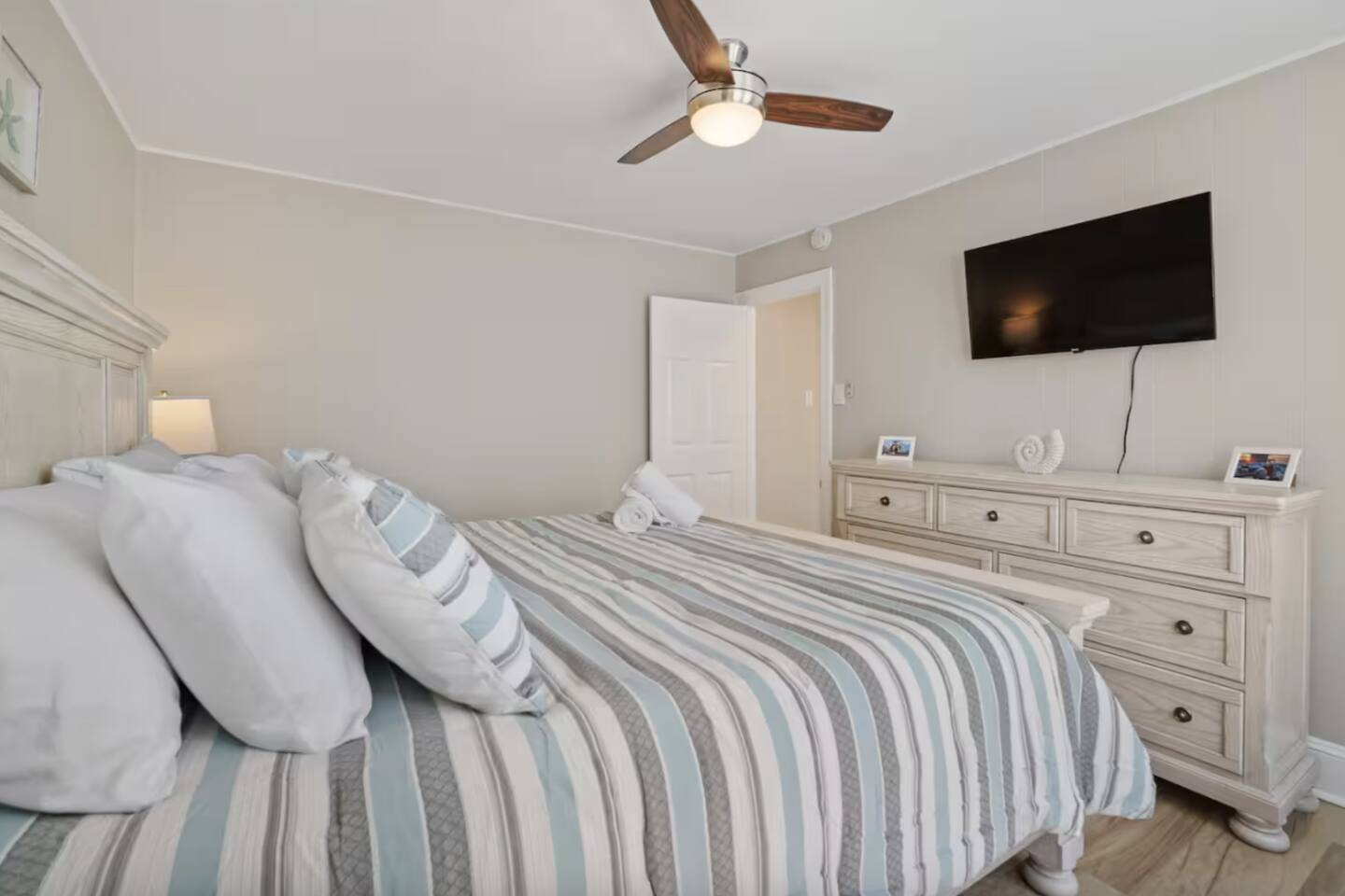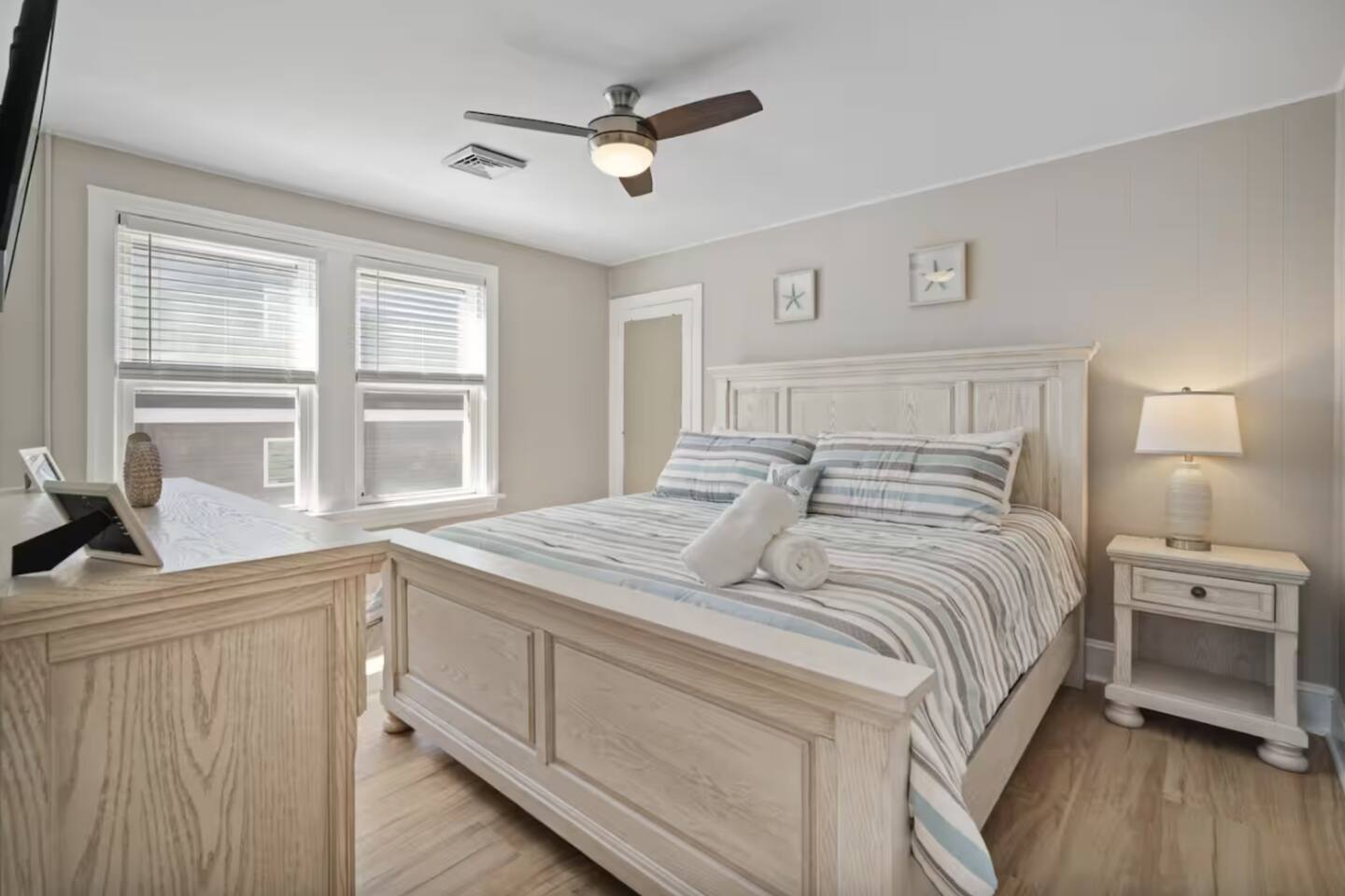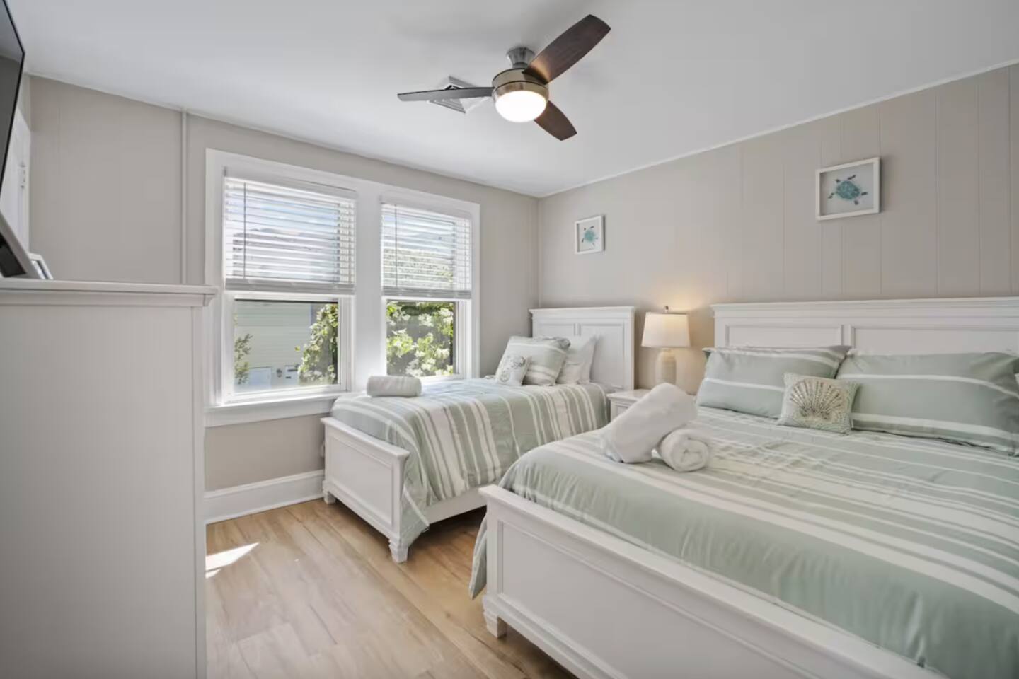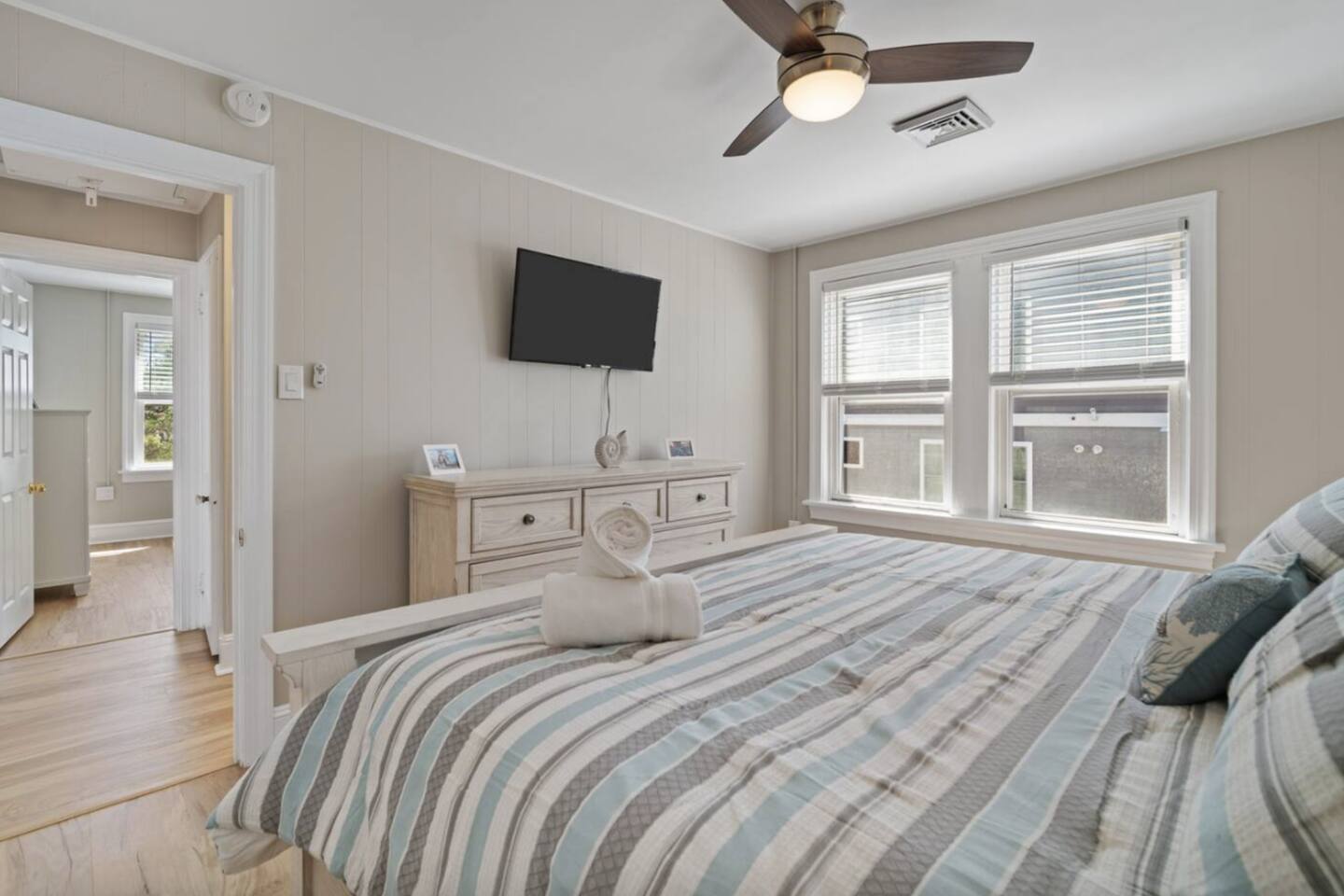 Cozy and inviting, this unit is perfect for relaxing and entertaining. With an abundance of natural light and wonderful amenities, enjoy this space with all the comforts and convenience to make for a perfect stay. LIVING AREA: -The unit has a comfortable living room with seating, with a queen pull out couch bed and a smart TV for your viewing pleasure. Enjoy the comfortable and well designed living area. SUNROOM: -Directly adjoining the living room with seating. KITCHEN: -The kitchen is equipped with basic kitchenware, appliances & all the features you will need to prepare meals. BEDROOMS: -2 Bedrooms : Each bedroom is tastefully designed and includes wall mounted smart TV’s and cozy bed linens. BEDROOM 1- The master bedroom features 1 King-sized bed, and a dresser for all your storage needs. BEDROOM 2- 1 Full-sized bed and 1 Twin-sized bed 1 FULL BATHROOM: 1 Full Bathroom with tub/shower SUMMARY OF SLEEPING ARRANGEMENTS: - 1 King Bed - 1 Full Bed - 1 Twin Bed - 1 Queen Pullout Sofa OUTDOOR: - Enjoy relaxation and fun outdoors with a spacious outdoor backyard seating area and convenient BBQ grill. - There is a shared front seating area with charming Adirondack-style chairs, offering a serene spot to sip morning coffee or soak up the salt water breeze. AMENITIES: The home is also equipped with Wifi, a coffee maker, an iron and ironing board, a hair dryer and much more!