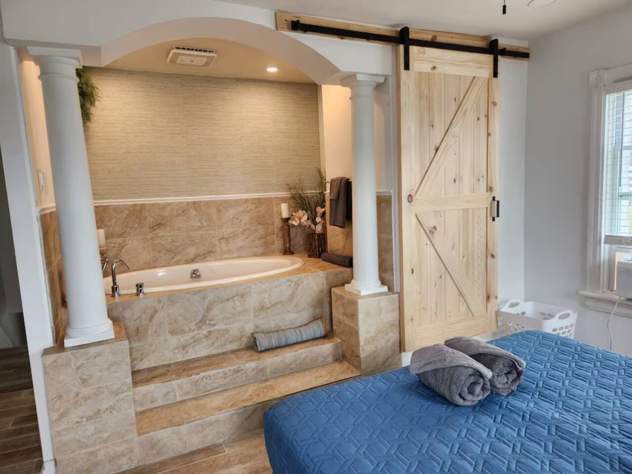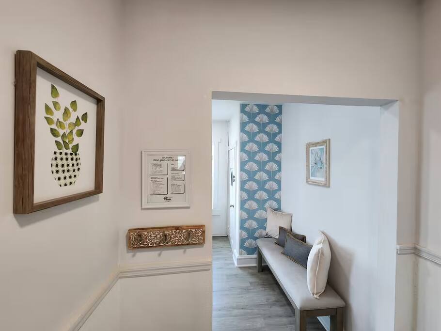 Ready for your seaside retreat! Located in the great inlet neighborhood, just a quick stroll to beach and boardwalk, just minutes away from Gardner's Basin, casinos, and all the hustle and bustle of Atlantic City! Enjoy Hot Bagels right next door to the house! And other attractions and eateries within walking distance. This unit is the 2nd level of the property, there is a flight of stairs to the unit. MAIN LEVEL: -The main level of the home has a living room, kitchen, full bathroom with tub, and 1 Bedroom. -There is a large smart TV in the living room and bedroom (no cable, just streaming apps). KITCHEN: -The kitchen has stainless steel appliances and a table with 4 stools. SECOND LEVEL: -Upstairs Level of the home has 3 bedrooms and 1 ensuite half bathroom with a jacuzzi tub. SLEEPING ARRANGEMENTS: BEDROOM 1- 1 King Sized Bed and Smart TV BEDROOM 2- "Spa Room" - 1 Queen Sized Bed, en suite half bathroom and jacuzzi tub, and Smart TV BEDROOM 3- 1 Queen Sized Bed and Smart TV BEDROOM 4- 1 King Sized Bed, futon and Smart TV, air mattress AMENITIES: -The home is also equipped with Wifi, a drip coffee maker, an iron and ironing board, a hair dryer, air conditioning window units and much more! The exterior of the home is protected by Ring Security. PLEASE NOTE: - This property is part of an attached duplex, meaning it shares walls with neighboring units. While we strive to provide a peaceful and comfortable stay, occasional noise or scents from adjacent units may be noticeable. These occurrences are outside of our control and are a natural aspect of shared-wall living. If this could impact your enjoyment, this property may not be the best fit for your stay. -Since this is the upper unit, please keep in mind that noise may be heard from the unit below or the property next door. -This property is approximately a block from the beach and Boardwalk, and it is easy to track sand into the unit so please clean off as much as possible before entering. -It is common that winds from the ocean might blow some sand through the window air conditioning vents or if exterior doors are left open. The same goes with pests that are common close to the water. BOOK WITH US and unlock discounts and special offers exclusive to Cozy Cohost guests. Take advantage of all that Atlantic City has to offer and enjoy savings at top local spots including famous restaurants, night clubs, spas, coffee shops, distilleries, breweries, boat tours, bike rentals, mini golf, and more...