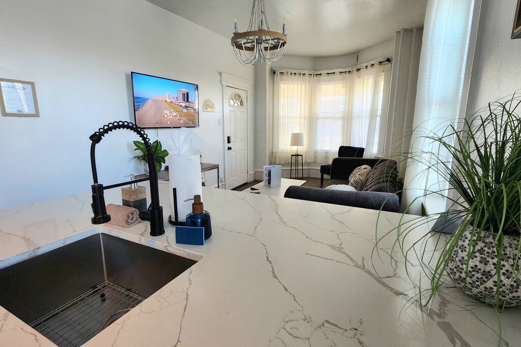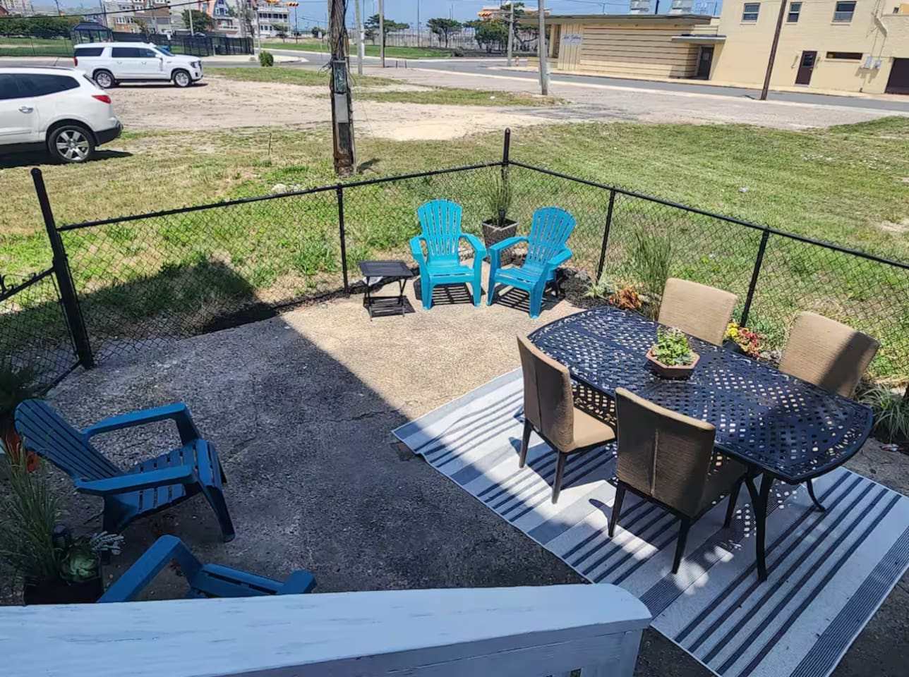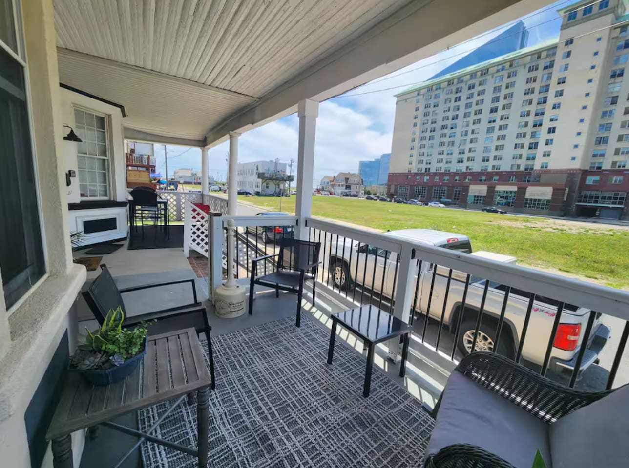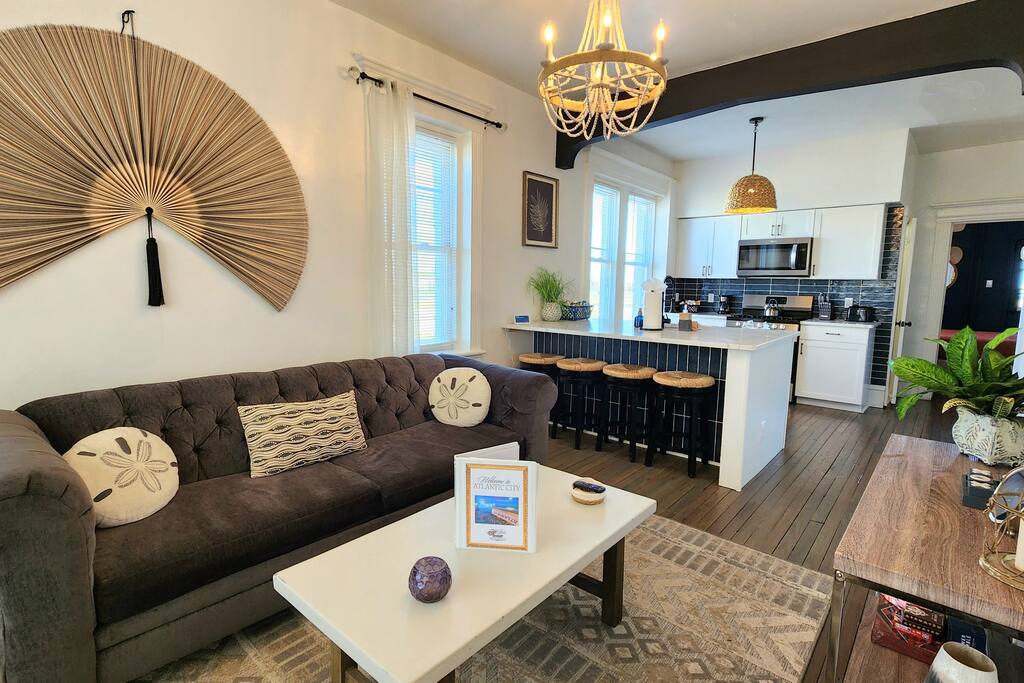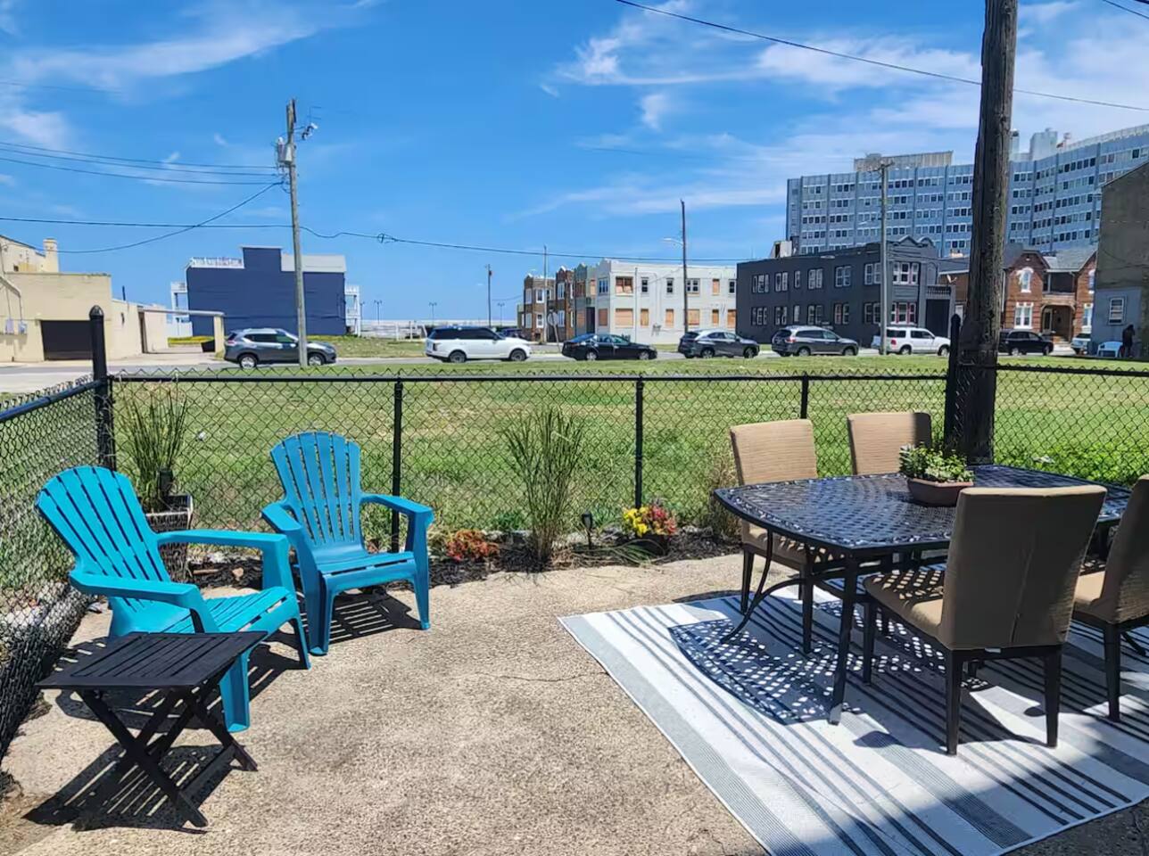 The home is ready for your seaside retreat! Located in the great inlet neighborhood, just a quick stroll to beach and boardwalk, just minutes away from Gardner's Basin, casinos, and all the hustle and bustle of Atlantic City! Enjoy Hot Bagels right next door to the house! And other attractions and eateries within walking distance. This is a attached duplex property. This property is normally listed as two separate units but we have combined both apartments to give guests the option of renting the whole 5 bedroom duplex as one. When renting this whole Duplex property you are getting both the lower level 1 bedroom apartment as well as the entire 4 bedroom upstairs unit of the property. *LOWER LEVEL: Unit 1 - This is the first level to the property which is a 1 bedroom apartment. Lower level is a 1 bed 1 bath with full kitchen. *2nd LEVEL: Unit 2 -The main level of the home has a living room, kitchen, full bathroom with tub, and 1 Bedroom. -There is a large smart TV in the living room (no cable, just streaming apps). KITCHEN: -The kitchen has new appliances and a table with 4 stools. *TOP LEVEL: -Upstairs Level of the home has 3 bedrooms and 1 ensuite half bathroom with a jacuzzi tub. SLEEPING ARRANGEMENTS: 1st Unit with 1 Bedroom : 1 Queen size bed, 1 air mattress 2nd Unit with 5 bedrooms : BEDROOM 1- 1 King Sized Bed and Smart TV BEDROOM 2- "Spa Room" - 1 Queen Sized Bed, en suite half bathroom and jacuzzi tub, and Smart TV BEDROOM 3- 1 Queen Sized Bed and Smart TV BEDROOM 4- 1 King Sized Bed, futon and Smart TV. 1 air mattress AMENITIES: The home has Wifi, and the exterior of the home is protected by Ring Security. BOOK WITH US and unlock discounts and special offers exclusive to Cozy Cohost guests. Take advantage of all that Atlantic City has to offer and enjoy savings at top local spots including famous restaurants, night clubs, spas, coffee shops, distilleries, breweries, boat tours, bike rentals, mini golf, and more...