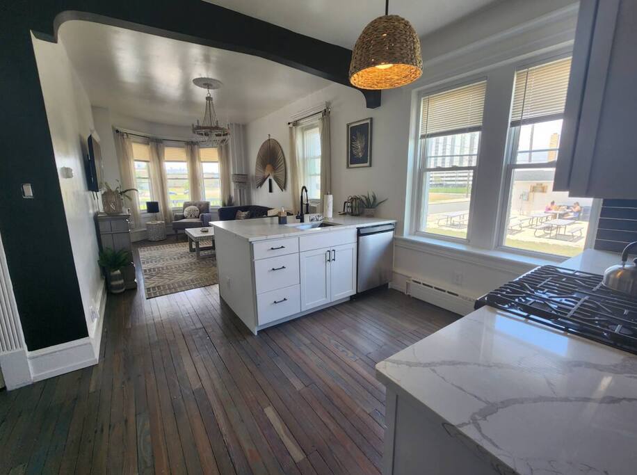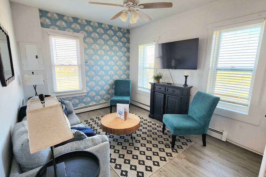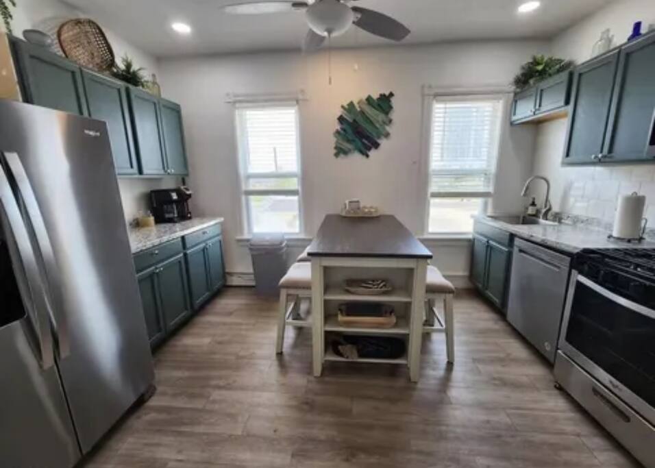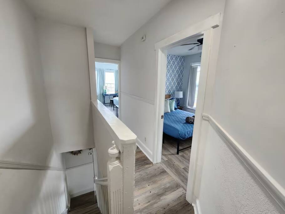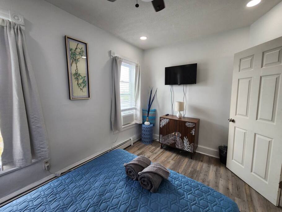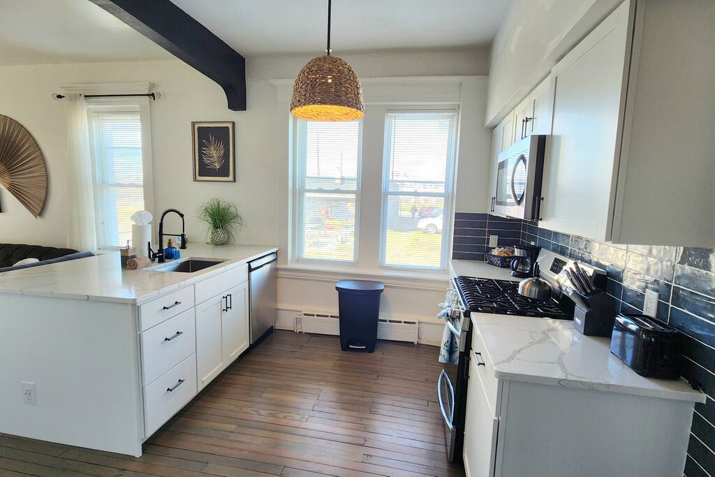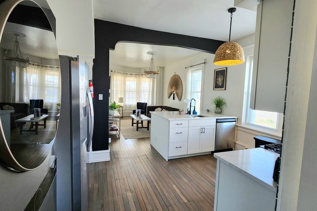 The home is ready for your seaside retreat! Located in the great inlet neighborhood, just a quick stroll to beach and boardwalk, just minutes away from Gardner's Basin, casinos, and all the hustle and bustle of Atlantic City! Enjoy Hot Bagels right next door to the house! And other attractions and eateries within walking distance. This is a attached duplex property. This property is normally listed as two separate units but we have combined both apartments to give guests the option of renting the whole 5 bedroom duplex as one. When renting this whole Duplex property you are getting both the lower level 1 bedroom apartment as well as the entire 4 bedroom upstairs unit of the property. *LOWER LEVEL: Unit 1 - This is the first level to the property which is a 1 bedroom apartment. Lower level is a 1 bed 1 bath with full kitchen. *2nd LEVEL: Unit 2 -The main level of the home has a living room, kitchen, full bathroom with tub, and 1 Bedroom. -There is a large smart TV in the living room (no cable, just streaming apps). KITCHEN: -The kitchen has new appliances and a table with 4 stools. *TOP LEVEL: -Upstairs Level of the home has 3 bedrooms and 1 ensuite half bathroom with a jacuzzi tub. SLEEPING ARRANGEMENTS: 1st Unit with 1 Bedroom : 1 Queen size bed, 1 air mattress 2nd Unit with 5 bedrooms : BEDROOM 1- 1 King Sized Bed and Smart TV BEDROOM 2- "Spa Room" - 1 Queen Sized Bed, en suite half bathroom and jacuzzi tub, and Smart TV BEDROOM 3- 1 Queen Sized Bed and Smart TV BEDROOM 4- 1 King Sized Bed, futon and Smart TV. 1 air mattress AMENITIES: The home has Wifi, and the exterior of the home is protected by Ring Security. BOOK WITH US and unlock discounts and special offers exclusive to Cozy Cohost guests. Take advantage of all that Atlantic City has to offer and enjoy savings at top local spots including famous restaurants, night clubs, spas, coffee shops, distilleries, breweries, boat tours, bike rentals, mini golf, and more...