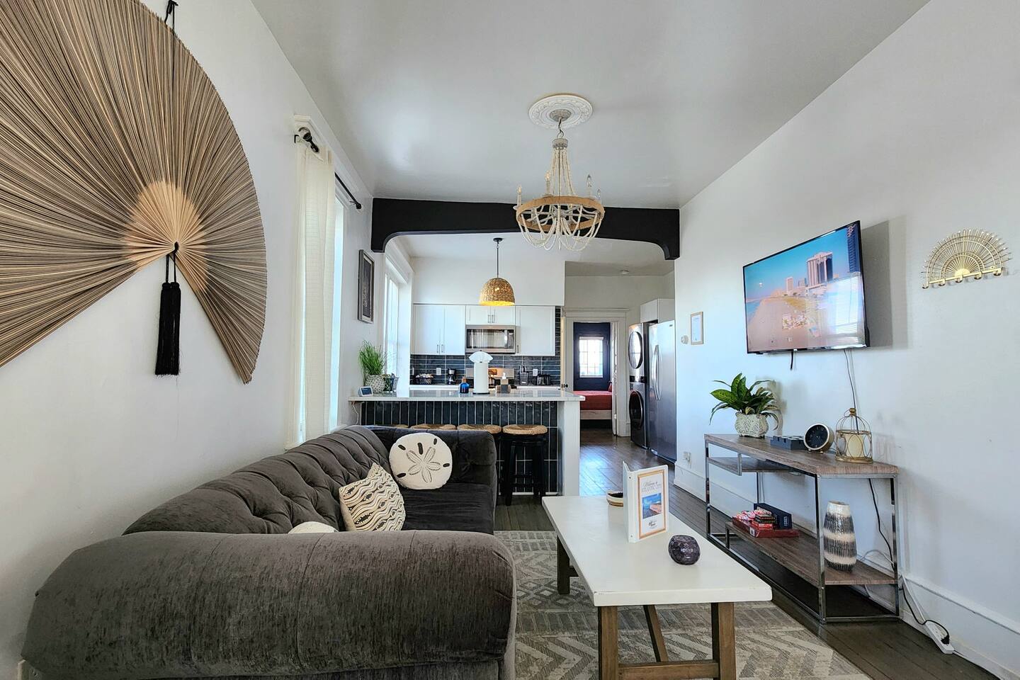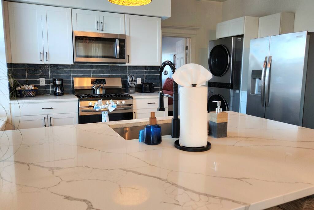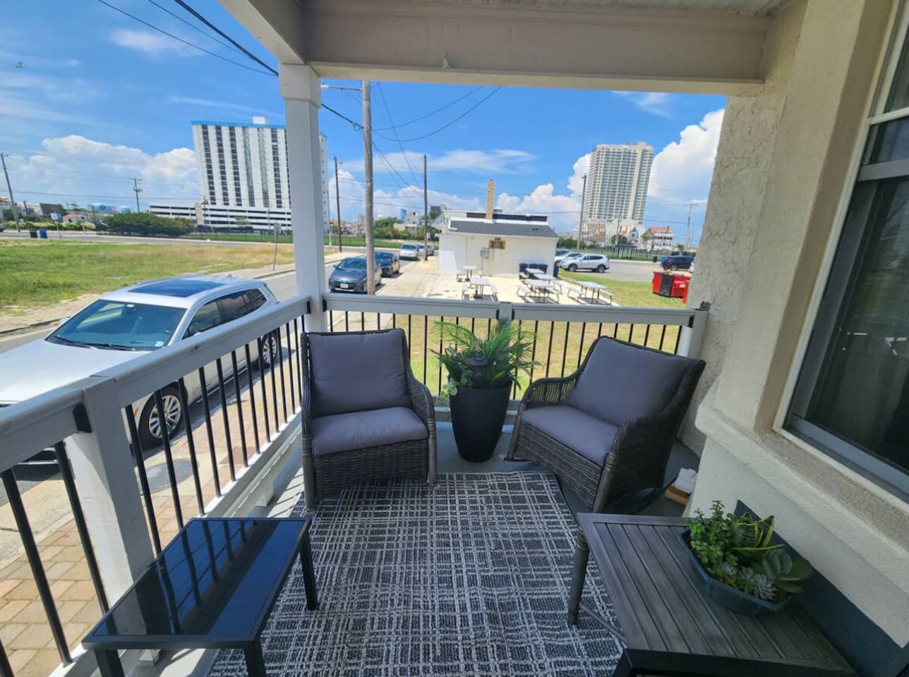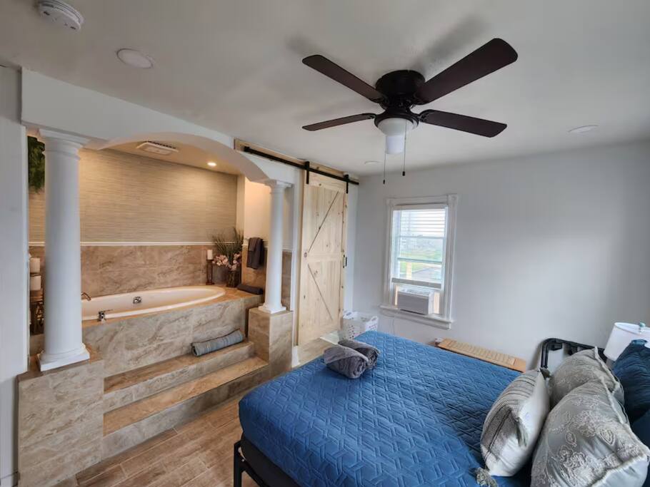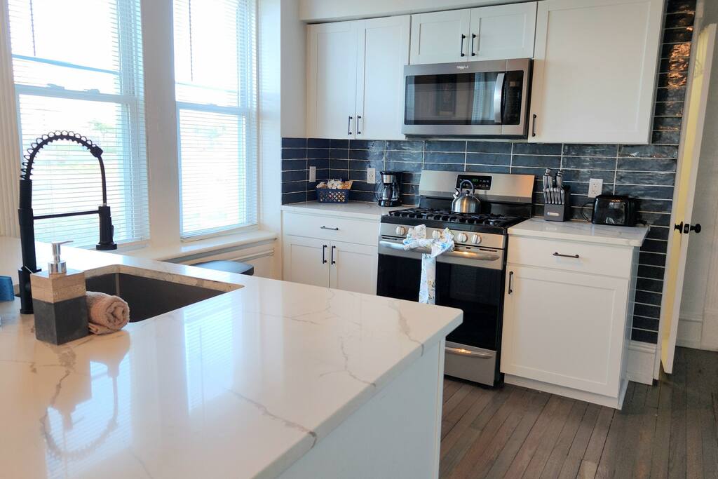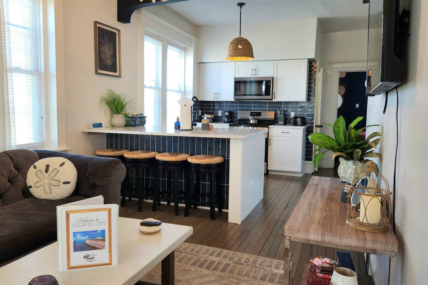 The home is ready for your seaside retreat! Located in the great inlet neighborhood, just a quick stroll to beach and boardwalk, just minutes away from Gardner's Basin, casinos, and all the hustle and bustle of Atlantic City! Enjoy Hot Bagels right next door to the house! And other attractions and eateries within walking distance. This is a attached duplex property. This property is normally listed as two separate units but we have combined both apartments to give guests the option of renting the whole 5 bedroom duplex as one. When renting this whole Duplex property you are getting both the lower level 1 bedroom apartment as well as the entire 4 bedroom upstairs unit of the property. *LOWER LEVEL: Unit 1 - This is the first level to the property which is a 1 bedroom apartment. Lower level is a 1 bed 1 bath with full kitchen. *2nd LEVEL: Unit 2 -The main level of the home has a living room, kitchen, full bathroom with tub, and 1 Bedroom. -There is a large smart TV in the living room (no cable, just streaming apps). KITCHEN: -The kitchen has new appliances and a table with 4 stools. *TOP LEVEL: -Upstairs Level of the home has 3 bedrooms and 1 ensuite half bathroom with a jacuzzi tub. SLEEPING ARRANGEMENTS: 1st Unit with 1 Bedroom : 1 Queen size bed, 1 air mattress 2nd Unit with 5 bedrooms : BEDROOM 1- 1 King Sized Bed and Smart TV BEDROOM 2- "Spa Room" - 1 Queen Sized Bed, en suite half bathroom and jacuzzi tub, and Smart TV BEDROOM 3- 1 Queen Sized Bed and Smart TV BEDROOM 4- 1 King Sized Bed, futon and Smart TV. 1 air mattress AMENITIES: The home has Wifi, and the exterior of the home is protected by Ring Security. BOOK WITH US and unlock discounts and special offers exclusive to Cozy Cohost guests. Take advantage of all that Atlantic City has to offer and enjoy savings at top local spots including famous restaurants, night clubs, spas, coffee shops, distilleries, breweries, boat tours, bike rentals, mini golf, and more...