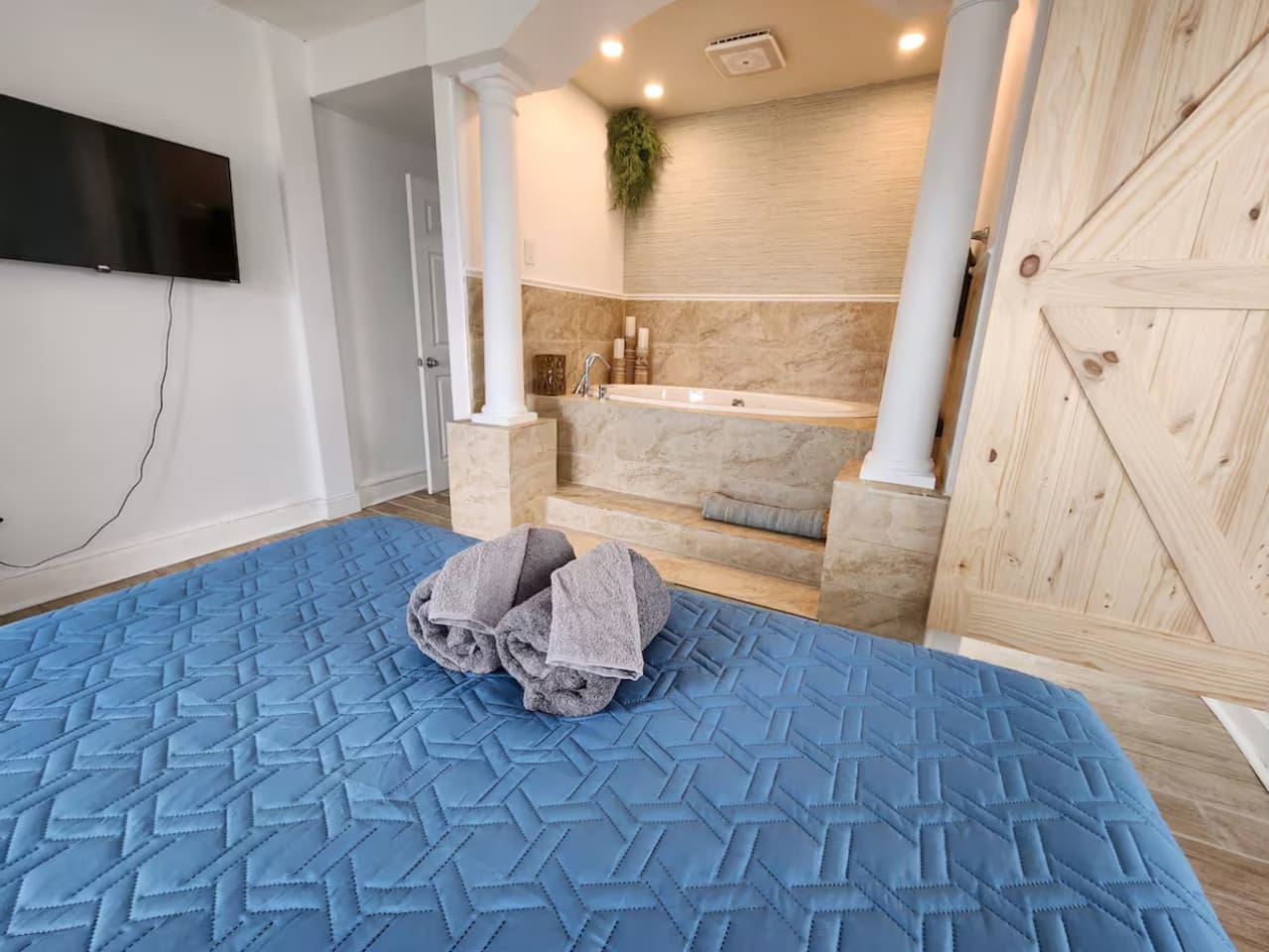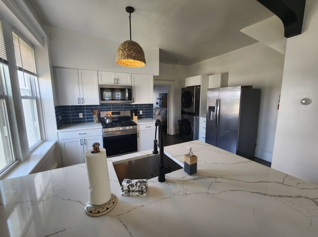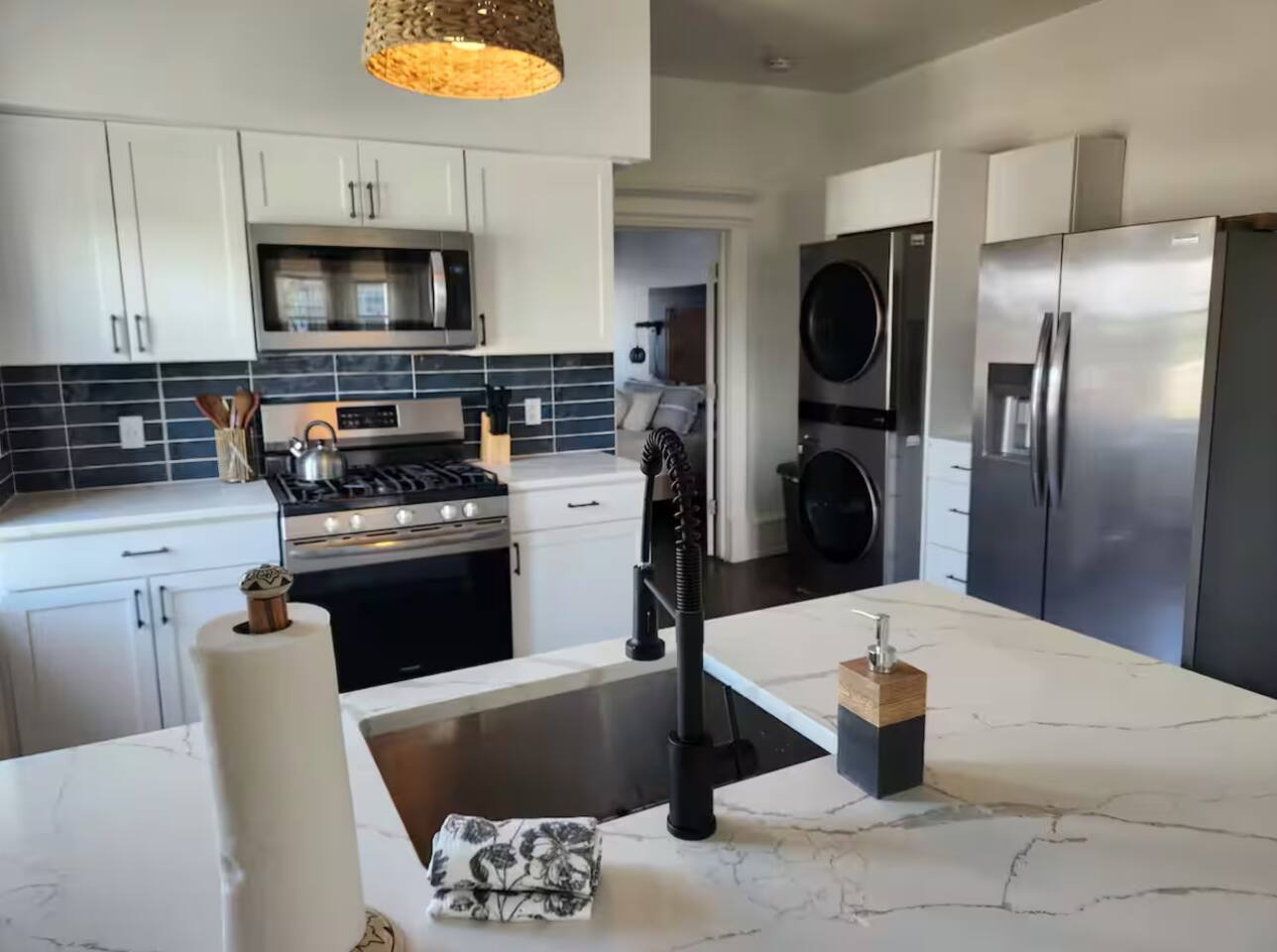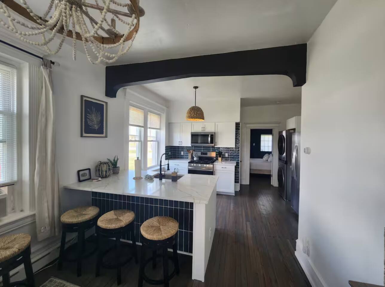 The home is ready for your seaside retreat! Located in the great inlet neighborhood, just a quick stroll to beach and boardwalk, just minutes away from Gardner's Basin, casinos, and all the hustle and bustle of Atlantic City! Enjoy Hot Bagels right next door to the house! And other attractions and eateries within walking distance. This is a attached duplex property. This property is normally listed as two separate units but we have combined both apartments to give guests the option of renting the whole 5 bedroom duplex as one. When renting this whole Duplex property you are getting both the lower level 1 bedroom apartment as well as the entire 4 bedroom upstairs unit of the property. *LOWER LEVEL: Unit 1 - This is the first level to the property which is a 1 bedroom apartment. Lower level is a 1 bed 1 bath with full kitchen. *2nd LEVEL: Unit 2 -The main level of the home has a living room, kitchen, full bathroom with tub, and 1 Bedroom. -There is a large smart TV in the living room (no cable, just streaming apps). KITCHEN: -The kitchen has new appliances and a table with 4 stools. *TOP LEVEL: -Upstairs Level of the home has 3 bedrooms and 1 ensuite half bathroom with a jacuzzi tub. SLEEPING ARRANGEMENTS: 1st Unit with 1 Bedroom : 1 Queen size bed, 1 air mattress 2nd Unit with 5 bedrooms : BEDROOM 1- 1 King Sized Bed and Smart TV BEDROOM 2- "Spa Room" - 1 Queen Sized Bed, en suite half bathroom and jacuzzi tub, and Smart TV BEDROOM 3- 1 Queen Sized Bed and Smart TV BEDROOM 4- 1 King Sized Bed, futon and Smart TV. 1 air mattress AMENITIES: The home has Wifi, and the exterior of the home is protected by Ring Security. BOOK WITH US and unlock discounts and special offers exclusive to Cozy Cohost guests. Take advantage of all that Atlantic City has to offer and enjoy savings at top local spots including famous restaurants, night clubs, spas, coffee shops, distilleries, breweries, boat tours, bike rentals, mini golf, and more...