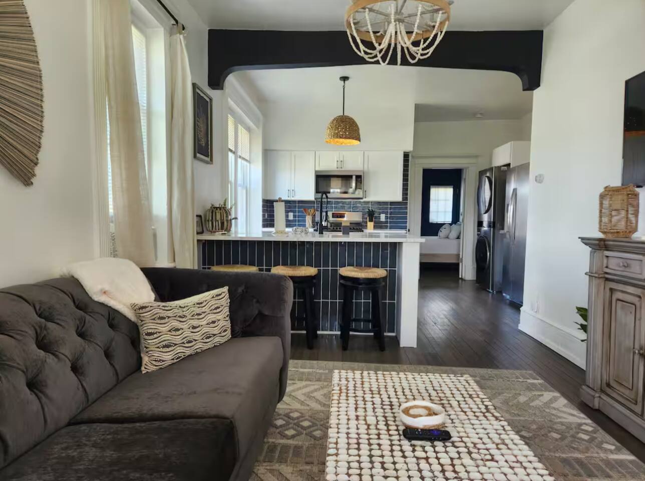 ACCESS & ENTRY: -Guests have access to the entire property during their stay which includes Unit 1 and Unit 2. -This is an attached property, so there is another attached residence to the right. We have no affiliation to the neighboring unit. -The backyard area is available for guests to use. -There is seating and there is a charcoal grill that guests may use in the backyard, but please note that we do not provide charcoal or materials. Guests are responsible for cleaning the grill upon usage. -Please note that check-out time is promptly at 11:00 AM. Failure to check out by this time may result in a $100 fee per hour. We appreciate your cooperation in ensuring a smooth transition for our next guests. Thank you for your understanding! KEYLESS ENTRY: -Your host will provide you with the door code approximately one hour prior to check in the day of your trip. PARKING: -There is no driveway or designated parking, street parking is available at this property. -Guests are responsible for city street parking compliance; read & follow signage to avoid parking tickets. -We are not responsible for parking tickets due to negligence. MAIL: -Please do not ship items to the property. -If there is something of priority that you need shipped please reach out to us directly for alternative options. -We are not responsible for any items shipped to the property. ENVIRONMENTAL NOTES: -Property located in a city environment; potential for noise from cars or foot traffic. -Please be advised that since the property is close to the beach, there may be a lot of beachgoers on the block at times. -If you are extremely sensitive to smells, please note that odors from food, smoke, or other sources from outside or neighboring units may occasionally be noticeable. If this is a major concern for you, please keep this in mind.