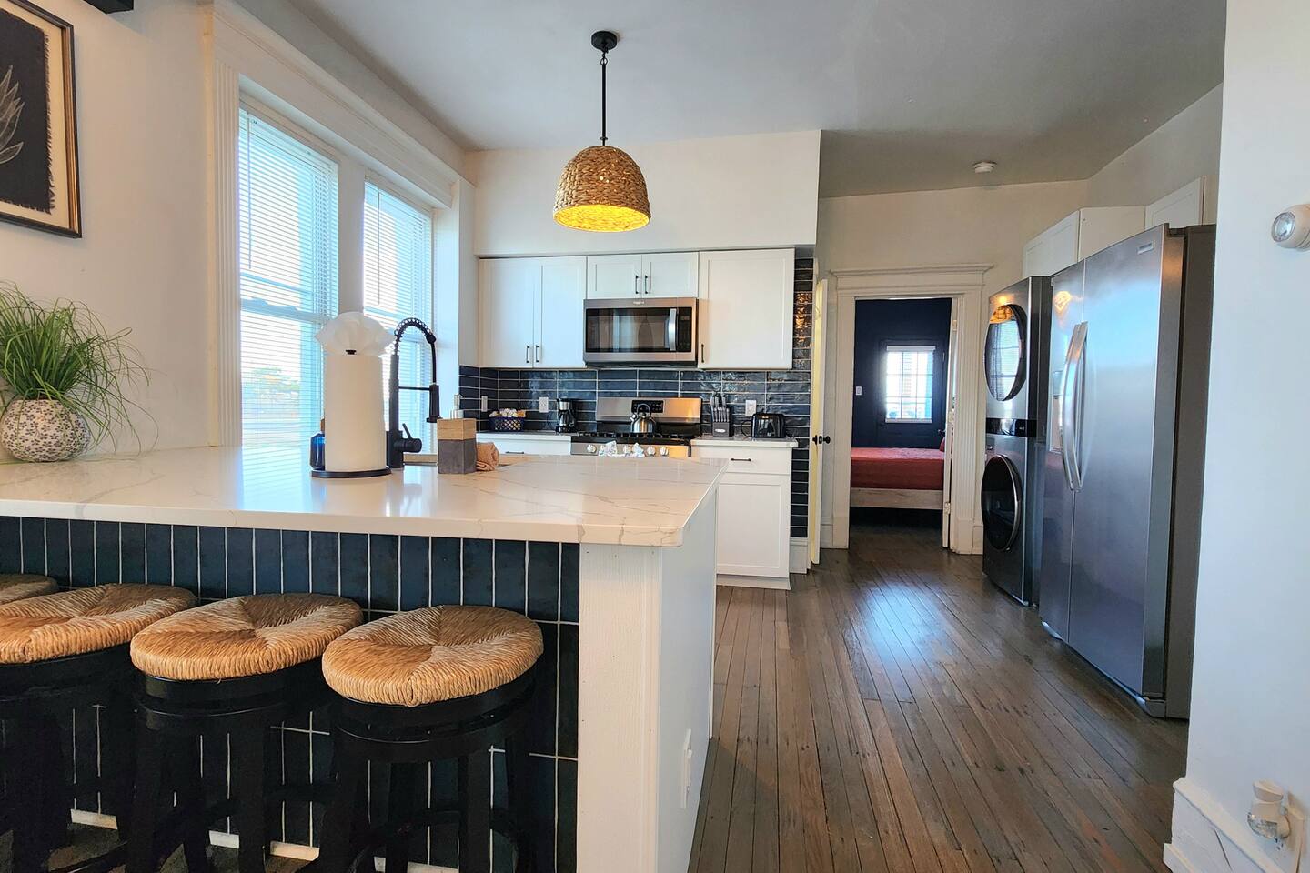 This one-of-a-kind unit blends modern style with classic shore charm. Enjoy an updated kitchen with a spacious island, original 100-year-old hardwood floors, and tons of character throughout. Perfect for a couple or small group seeking a memorable Jersey Shore stay. Located in AC’s inlet area, just a block from the beach and boardwalk. Walk to the Absecon Lighthouse, North Beach Mini Golf, Tony Boloney’s, Hot Bagels, and the local liquor store.