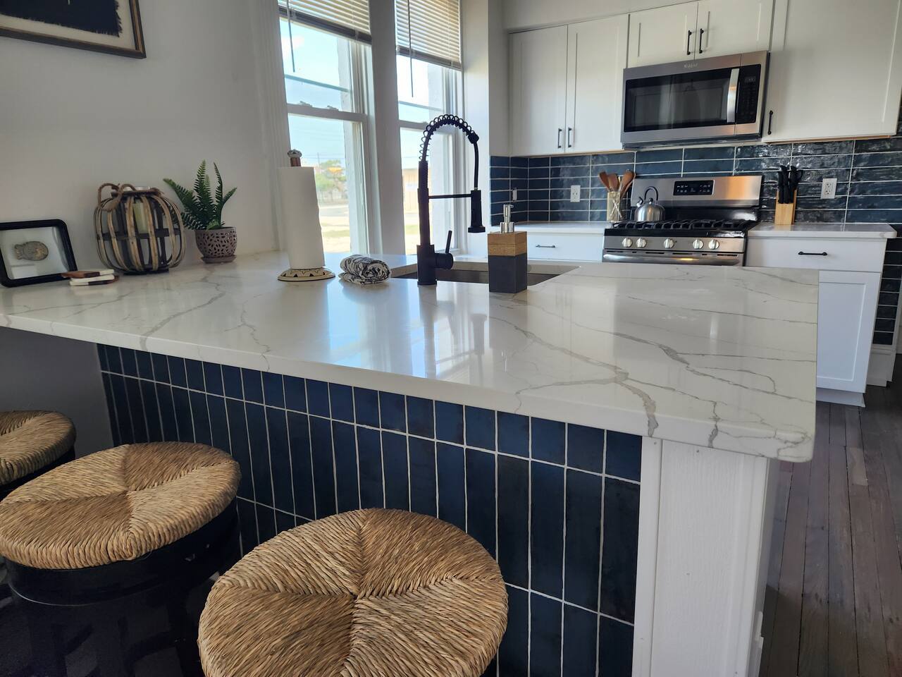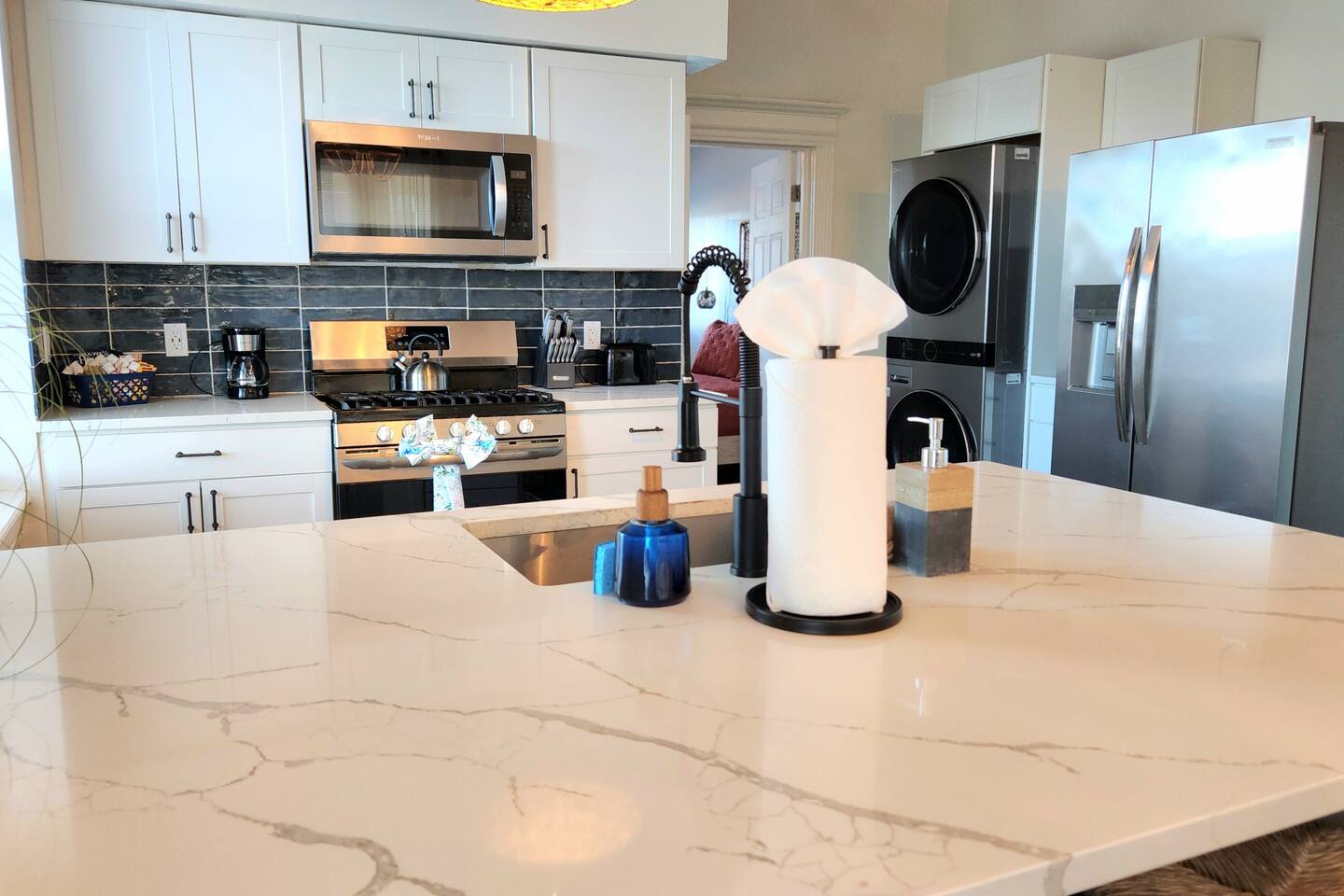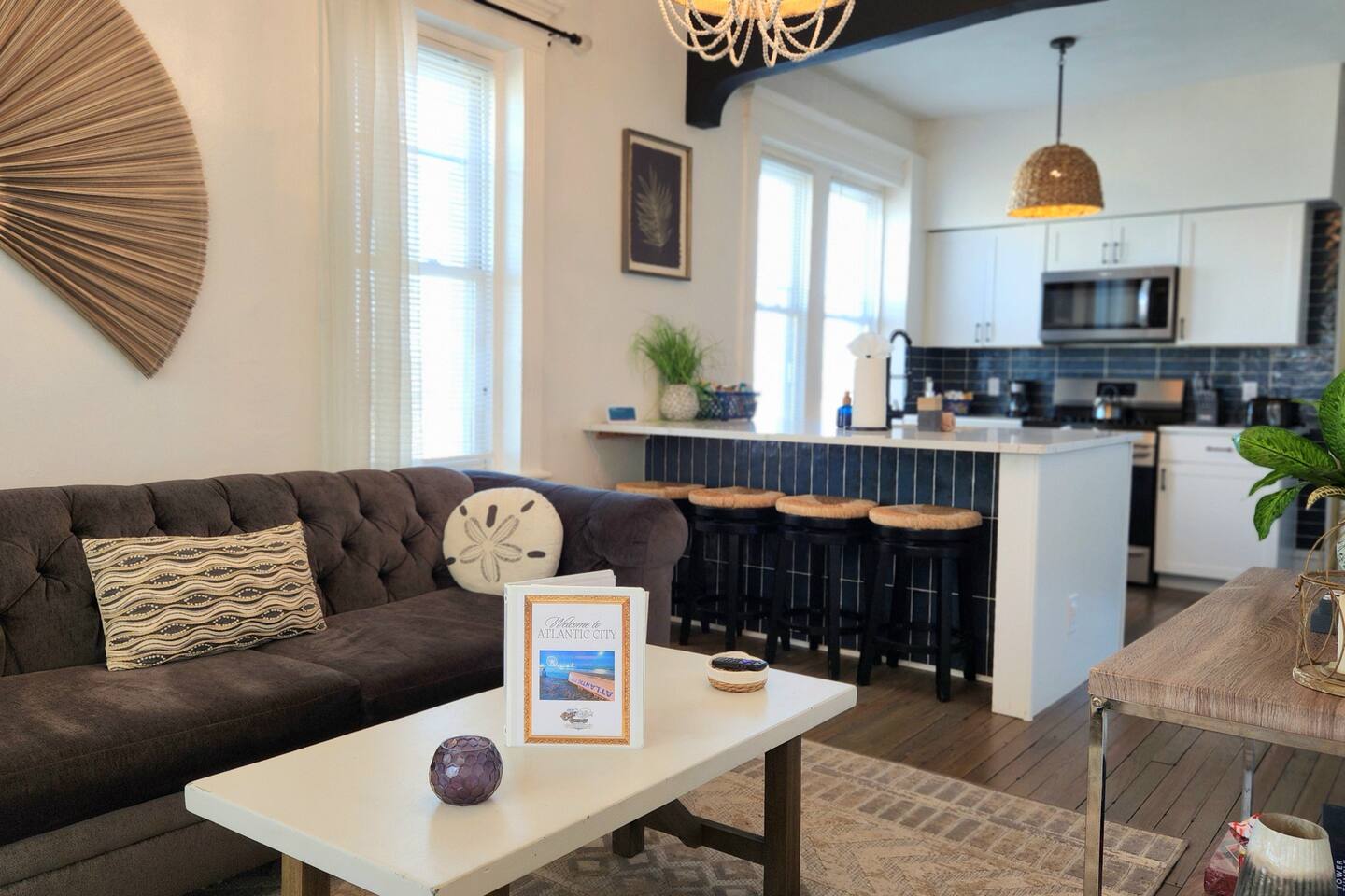 The home is ready for your seaside getaway! Located in AC’s Inlet neighborhood, you’re just a short walk to the beach and boardwalk, minutes from Gardner’s Basin, the casinos, and all the excitement the city has to offer. Enjoy Hot Bagels right next door, plus plenty of great eateries and attractions within walking distance. Step inside to an open-concept living area with a comfortable lounge space and a freshly updated kitchen. LIVING ROOM – Cozy seating, sofa, and a large Smart TV (streaming apps only) KITCHEN – Newly updated with modern appliances and a large quartz island with seating for four BATHROOM – Full bath with a stand-up shower SLEEPING ARRANGEMENTS BEDROOM: 1 Queen bed + Smart TV LIVING ROOM: 1 air mattress + Smart TV AMENITIES – WiFi, drip coffee maker, iron and ironing board, hair dryer, window A/C units in warmer months, and more. – Exterior security provided by Ring cameras. IMPORTANT — PLEASE READ – This is a lower unit within an attached duplex, so shared walls mean occasional noise or scents from neighboring units may occur. This is normal for connected homes and outside our control. – Noise from the upstairs unit or nearby properties may be heard at times. – Being just a block from the beach, sand can track inside easily—please rinse off as best as possible before entering. Ocean winds can also blow sand through window A/C units if in use. – As with any coastal property, occasional water-adjacent pests are possible. BOOK WITH US Stay with Cozy Cohost and unlock exclusive discounts at top Atlantic City spots—restaurants, breweries, spas, nightlife, coffee shops, tours, mini golf, bike rentals, and more!