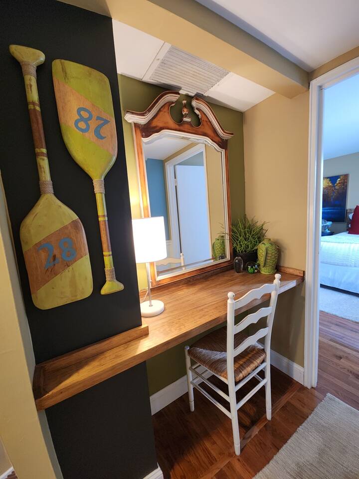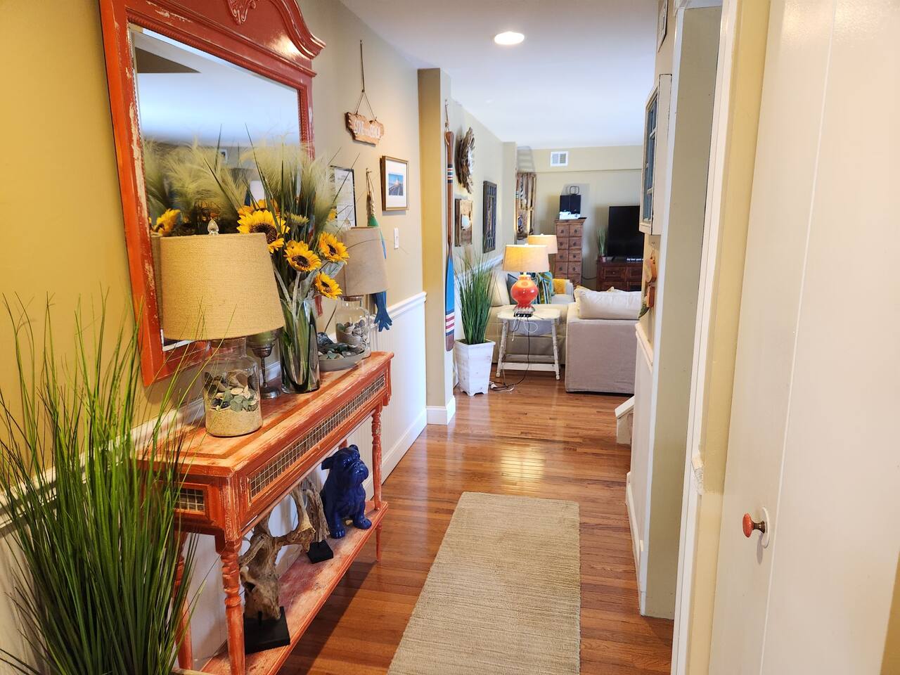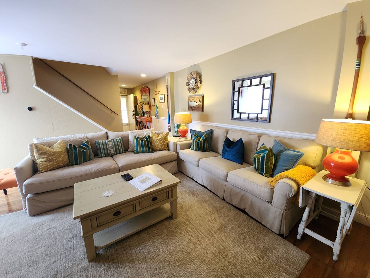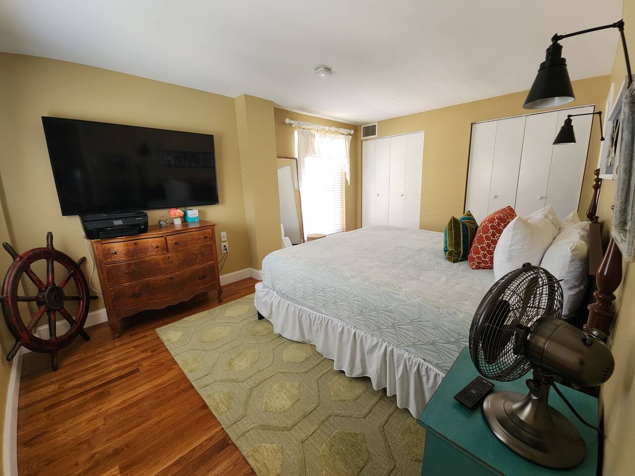 With an abundance of natural light, tasteful decor, and wonderful amenities, enjoy this space with all the comforts and convenience to make for a perfect stay. A blend of a mature and serene style will greet you as you step inside. LIVING AREA: -The unit has a spacious living area with a dining table for 4, 2 comfortable sofas, a smart TV with cable and streaming apps for your viewing pleasure and games for entertainment. DEDICATED WORKSPACE: -The upstairs hallway features a built in desk suitable for work or studies. KITCHEN: -The kitchen is beautiful with a brick backsplash, ample cabinets, new stainless steel appliances & all the features you will need to prepare meals. SLEEPING ARRANGEMENTS: -The 2nd floor has 2 spacious and stylish ensuite bedrooms with comfortable beds. -Each bedroom is tastefully designed and includes wall mounted smart TV’s and cozy bed linens. BEDROOM 1: 1 King Sized bed, 1 roomy closet and a full bath with a tub. BEDROOM 2: 2 Twin Sized beds, a closet and a full bath with a stand-up shower. ADDITIONAL SLEEPING ARRANGEMENTS: There are two twin sized air mattresses available. BALCONY: The sliding glass door opens to an outdoor balcony. AMENITIES: The home is also equipped with Wifi, a coffee maker, an iron and ironing board, a hair dryer and much more! LOCATION: The unit is in a complex on a beach block directly across from Ocean Resort & Casino and next to The Showboat Hotel. Take a lovely, quick stroll to the boardwalk and beach. The unit comes with one assigned parking space which will be provided to you with your check in directions. (Please note that you cannot on street park any vehicles in this vicinity. But the Ocean Casino parking garage is directly across the street if you have an additional vehicle that you require parking for.) ADDITIONAL NOTES: -Please note that like many areas of the city, the complex parking lot has the possibility of puddling or flooding when it rains. This factor is out of our control and we suggest parking at Ocean Casino across the street in the event that it becomes problematic. -The unit has central air, but being it is a 2 floor unit with 2 levels, at times the power of air conditioning may compete with heat rising. -Please excuse the complex's appearance- it is under new management and the HOA is currently doing renovations and landscaping to maintenance the building and grounds. -Grills are not permitted to be used on the property as per HOA regulations. BOOK WITH US and unlock discounts and special offers exclusive to Cozy Cohost guests. Take advantage of all that Atlantic City has to offer and enjoy savings at top local spots including famous restaurants, night clubs, spas, coffee shops, distilleries, breweries, boat tours, bike rentals, mini golf, and more...