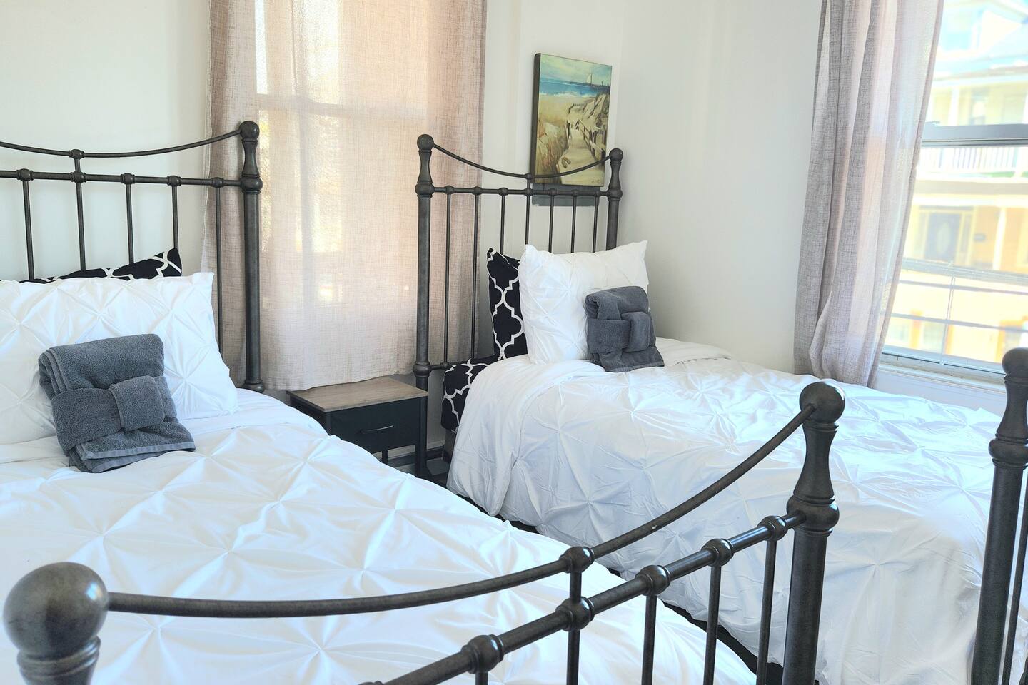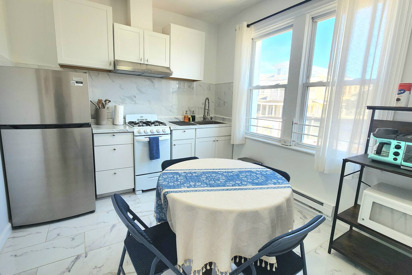 LIVING ROOM – Cozy seating and a Smart TV (streaming apps only) KITCHEN – Basic appliances and kitchen items, along with a table to seat 4 BEDROOM 1- 1 King Sized bed BEDROOM 2- 2 Twin Sized beds BATHROOM: – Full bath located in the hallway with a walk-in shower. AMENITIES: – This home is ideal for a small family or groups. It is equipped with WiFi, a washer and dryer, smart TV with streaming apps for your viewing pleasure (no cable, just streaming apps), a drip coffee maker, an iron and ironing board, a hair dryer and more! BOOK WITH US and unlock discounts and special offers exclusive to Cozy Cohost guests. Take advantage of all that Atlantic City has to offer and enjoy savings at top local spots including famous restaurants, night clubs, spas, coffee shops, distilleries, breweries, boat tours, bike rentals, mini golf, and more...