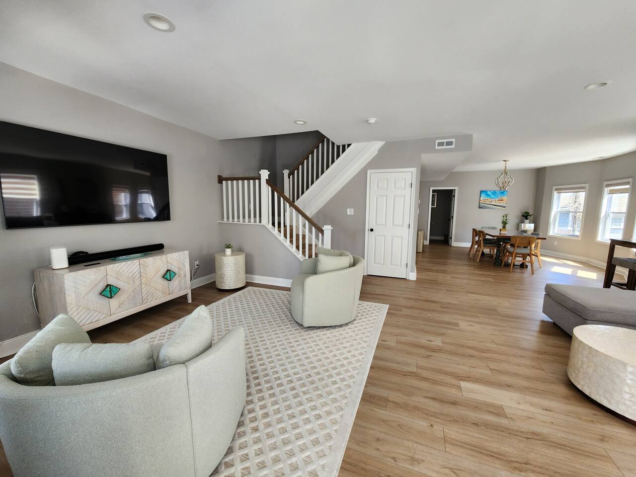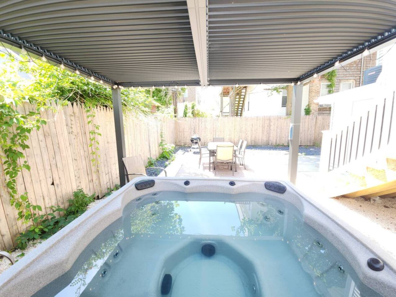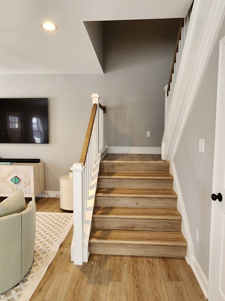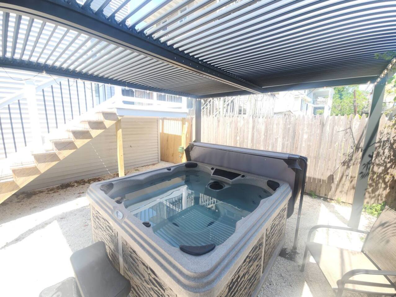 MAIN LEVEL: -Living room with comfortable couch, 2 chairs & Smart TV (no cable, just streaming apps). -Half Bathroom KITCHEN: -Newly renovated kitchen with spacious island (with seating for 2) and a dining table to seat 6. SECOND LEVEL: -Master Bedroom with TV -1 Full Bathroom in the hallway and 1 Full Bathroom Ensuite in the Master -Laundry Room Washer & dryer to use at your convenience. Please note we do not supply laundry detergent. THIRD LEVEL: -1 Bedroom with TV -Lounge Living Room with sleeper sofa and TV SLEEPING ARRANGEMENTS: BEDROOM 1- 2nd Floor Master Ensuite with King Bed, Full Bath & Smart TV BEDROOM 2- 2nd Floor Queen Bed BEDROOM 3- 2nd Floor Queen Bed BEDROOM 4- 3rd Floor Queen Bed with Smart TV ADDITIONAL SLEEPING: 3rd Floor Lounge room has sleeper sofa & Smart TV OUTDOOR: - Charcoal Grill in the backyard. Please note that we do not supply charcoal. - Outdoor table and chairs in the backyard. HOT TUB: THERE IS AN ADDITIONAL FEE FOR HOT TUB USAGE AND MAINTENANCE: -There is a hot tub in the backyard that guests may use for an additional fee of $200.00 -Unfortunately due to repeated issues with guests leaving the hot tub in bad condition we have had to add a cost of usage. It costs $200 for a professional service tech to come and clean, service and balance the proper chemicals. If you wish to use the hot tub during your stay you must request access and pay the $200 service fee before you will have access to the hot tub. - Please be respectful when using the hot tub: Please ensure there are no lotions, sun sprays, oils, food or beverages in the hot tub during usage. This may result in additional cleaning fees if these products are discovered. - Please close the hot tub top when not in use and return the key to the lockbox upon final use. AMENITIES: The home has Wifi, and the exterior of the home is protected by Ring Security. BOOK WITH US and unlock discounts and special offers exclusive to Cozy Cohost guests. Take advantage of all that Atlantic City has to offer and enjoy savings at top local spots including famous restaurants, night clubs, spas, coffee shops, distilleries, breweries, boat tours, bike rentals, mini golf, and more...