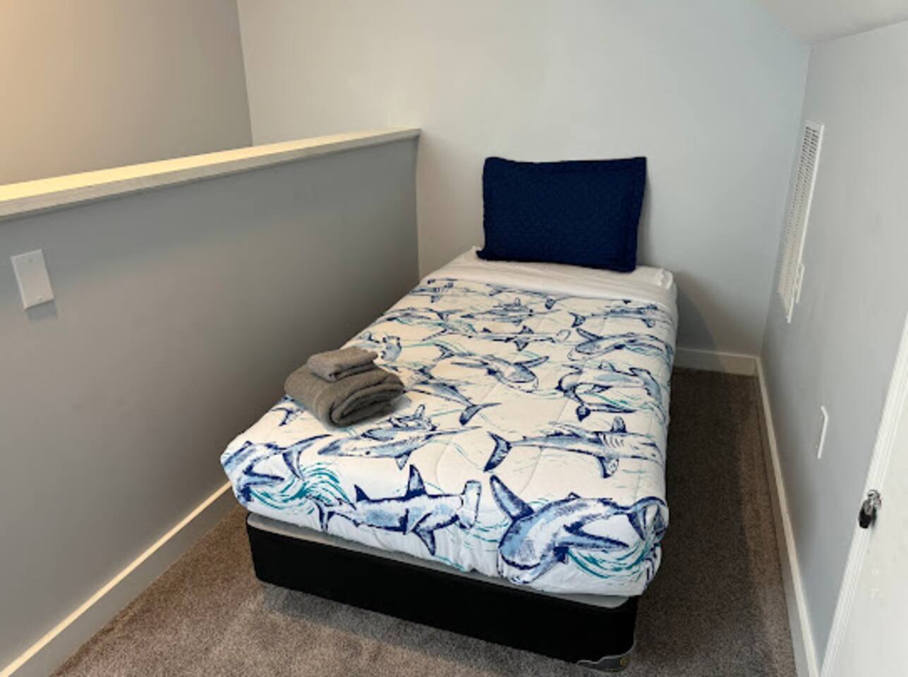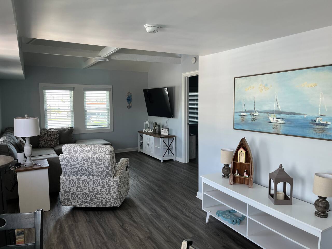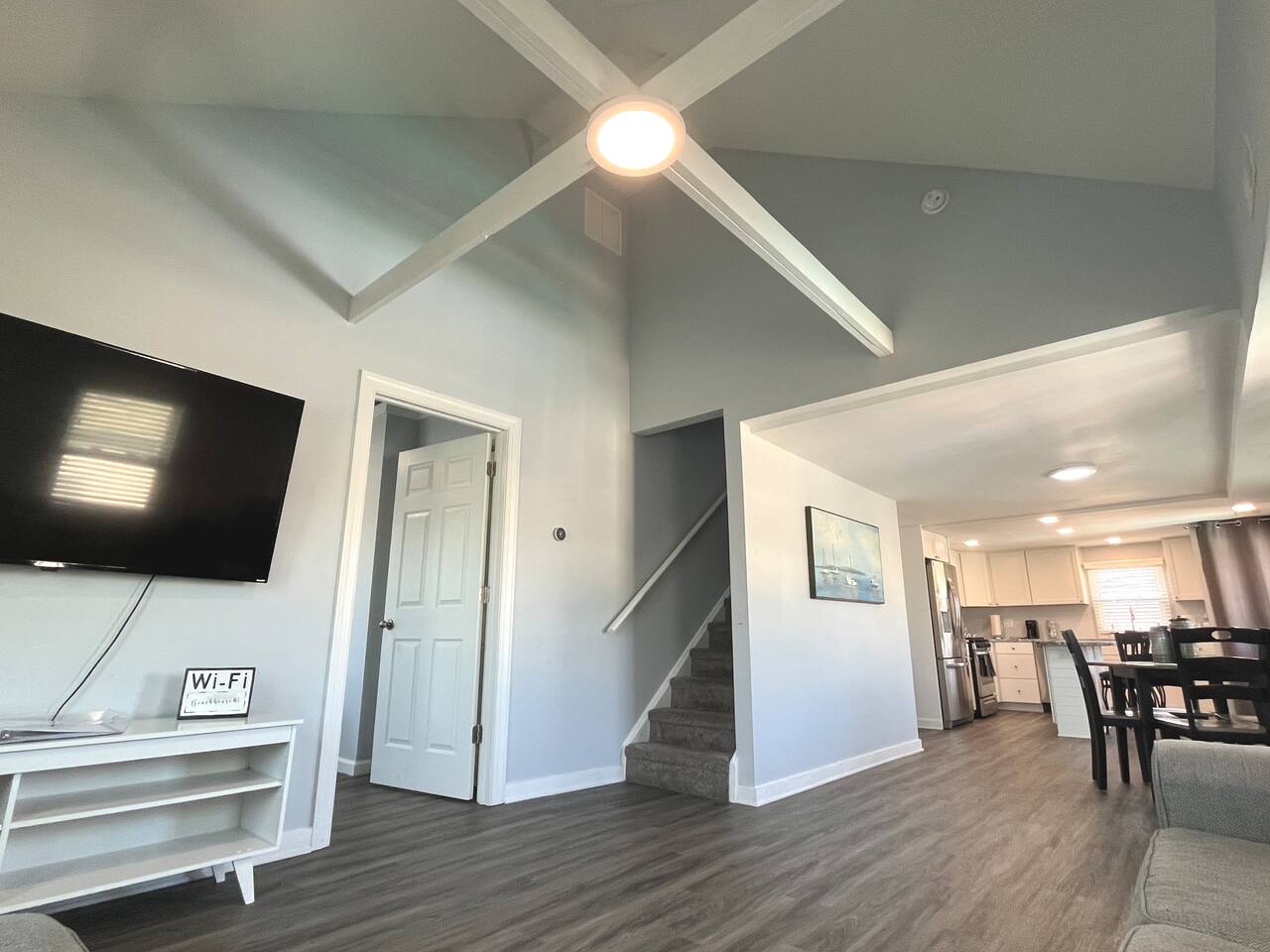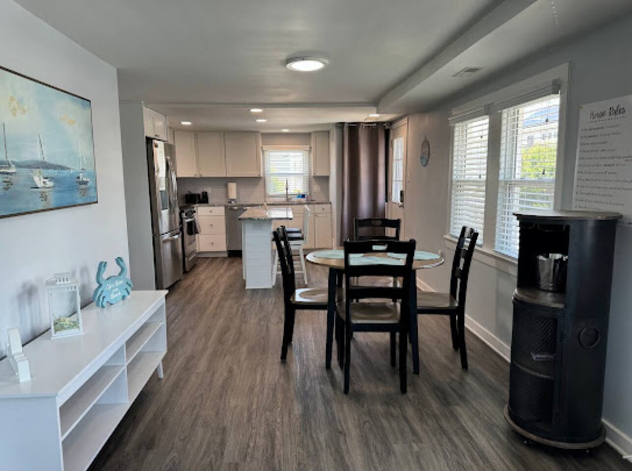 This spacious and inviting 4-bedroom, 2-bathroom retreat offers the ideal combination of comfort and convenience. Whether you're preparing a delicious meal in the fully equipped kitchen, relaxing in the cozy living room, or enjoying the breeze from the windows, you'll feel right at home. With plenty of room for the whole group, everyone can spread out and relax. Located within walking distance of Ocean City's best eateries, shops, and attractions, you'll never be far from everything you want to explore. After a day of adventure, return to your peaceful haven, where you can unwind and recharge for more fun tomorrow. The Beacon House is the perfect choice for those seeking a memorable stay with close proximity to the beach and all the excitement Ocean City has to offer. Book your stay today, and let the fun begin! *This property can also be rented as a whole house with 2 units on another listing, titled "The Beacon OC". airbnb.com/h/beaconoc Or the separate listing for Unit 1 is "The Beacon OC 1" airbnb.com/h/beaconoc1 LIVING ROOM/KITCHEN: This upstairs unit has a living room with a comfortable couch, kitchen with. new appliances, a kitchen island with stools and a kitchen table to seat 4. SLEEPING ARRANGEMENTS: This unit has 4 bedrooms and 2 full bathrooms. BEDROOM 1 - 1 Queen Bed with ensuite full bath BEDROOM 2- 1 Single Bed with a Single Trundle Bed BEDROOM 3- Full Bed with a Full Trundle Bed BEDROOM 4- Upstairs Loft Room with 1 Full Bed with a Trundle Bed and 1 Single Bed EXTERIOR: -There is a shared yard with furniture, a grill and a fire pit. -Shared with the upstairs unit. -Please note that guests must provide their own firewood for the fire pit and propane for the grill. AMENITIES: The home is also equipped with Wifi, a coffee maker, an iron and ironing board, a hair dryer, washer and dryers in each unit and much more! Beach tags will be provided during on season.