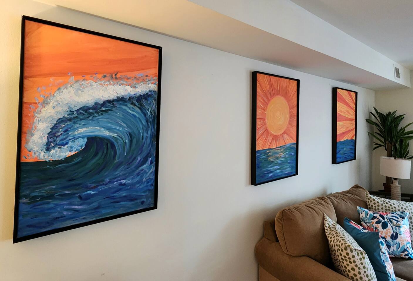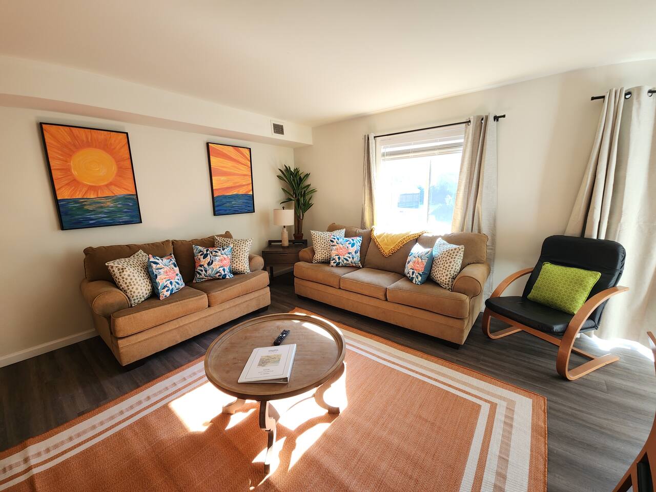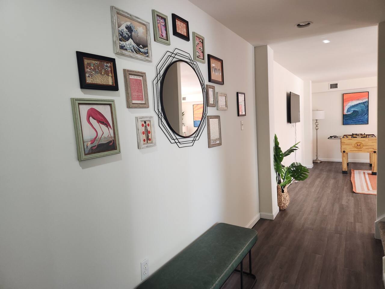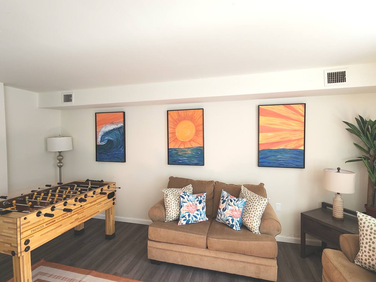 With an abundance of natural light, an outside balcony, and wonderful amenities, enjoy this space with all the comforts and convenience to make for a perfect stay. A blend of fun and serene style will greet you as you step inside. LIVING AREA: -The unit has a spacious living area with a dining table, 2 couches, a smart TV with streaming apps for your viewing pleasure (No cable, just streaming apps), and foosball table to provide fun & entertainment. ARTIST FEATURE: -Enjoy the curated canvas artwork on the living room wall specially designed just for Uptown Grove. A beautiful, vibrant sun and ocean inspired oil painted collection adorns the main wall in the living room. Custom designed and hand painted by a very talented local artist, Annalise Sylvester. KITCHEN: -The kitchen is beautiful with granite countertops, ample cabinets, new stainless steel appliances & all the features you will need to prepare meals. SLEEPING ARRANGEMENTS: -The 2nd floor has 2 spacious and stylish ensuite bedrooms which comfortably sleep up to 6 guests. -Each bedroom is tastefully designed and includes wall mounted smart TV’s and cozy bed linens. BEDROOM 1: 1 King Sized bed, desk, 2 roomy closets and a full bath with a tub. BEDROOM 2: 2 Queen Sized beds, a desk, a closet and a full bath with a stand-up shower. ADDITIONAL SLEEPING ARRANGEMENTS: Pull out sofa in the living room BALCONY: The sliding glass door opens to an outdoor balcony with bistro seating. AMENITIES: The home is also equipped with Wifi, a coffee maker, an iron and ironing board, a hair dryer and much more! LOCATION: The unit is in a complex on a beach block directly across from Ocean Resort & Casino and next to The Showboat Hotel. Take a lovely, quick stroll to the boardwalk and beach. The unit comes with one assigned parking space which will be provided to you with your check in directions. (Please note that you cannot on street park any vehicles in this vicinity. But the Ocean Casino parking garage is directly across the street if you have an additional vehicle that you require parking for.) ADDITIONAL NOTES: -Please note that like many areas of the city, the complex parking lot has the possibility of puddling or flooding when it rains. This factor is out of our control and we suggest parking at Ocean Casino across the street in the event that it becomes problematic. -The unit has central air, but being it is a 2 floor unit with 2 levels, at times the power of air conditioning may compete with heat rising. -Please excuse the complex's appearance- it is under new management and the HOA is currently doing renovations and landscaping to maintenance the building and grounds. -Grills are not permitted to be used on the property as per HOA regulations. -This unit is right next to the new Waterpark, so there is the potential of noise and foot traffic. BOOK WITH US and unlock discounts and special offers exclusive to Cozy Cohost guests. Take advantage of all that Atlantic City has to offer and enjoy savings at top local spots including famous restaurants, night clubs, spas, coffee shops, distilleries, breweries, boat tours, bike rentals, mini golf, and more...