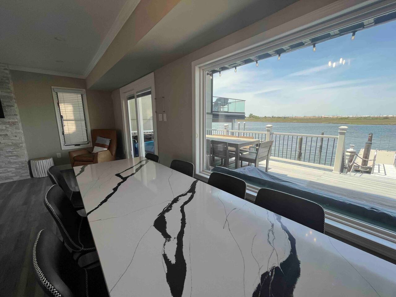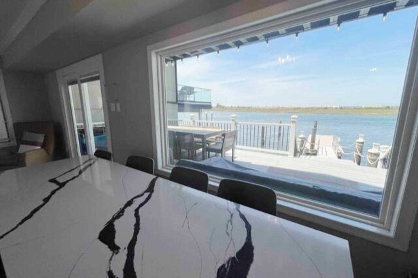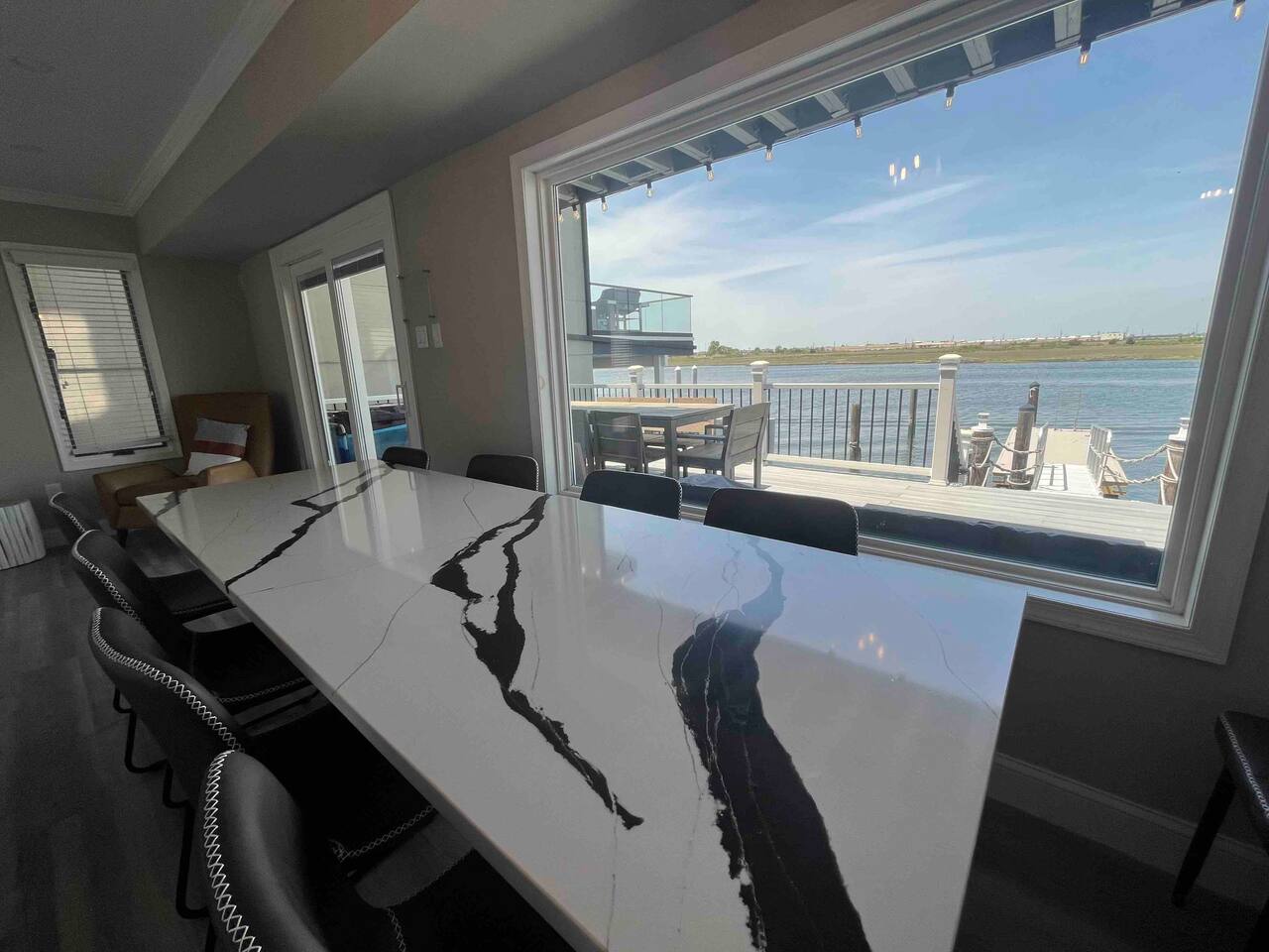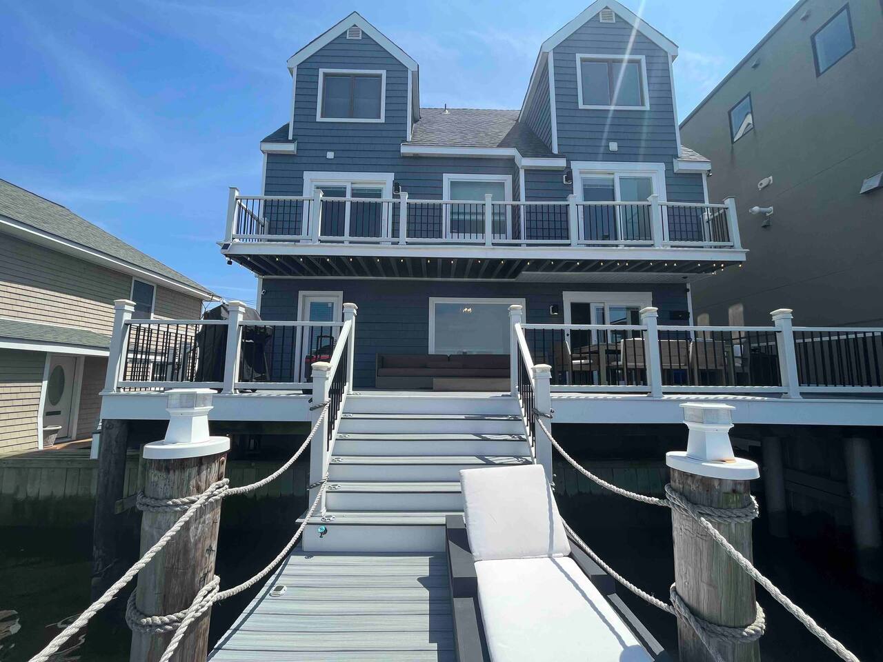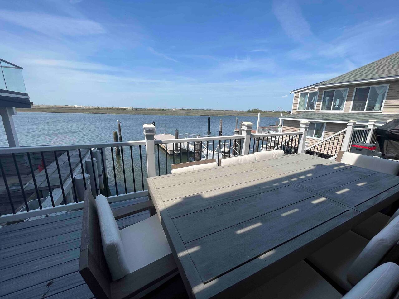 Welcome to our lovely on the bay house with beautiful water views! Featuring 4 bedrooms, 2 full bathrooms, and 2 half-baths. Get ready to feel at home in a comfortable setting with many wonderful amenities to offer. Right at the water's edge! The cozy bedrooms, dining area, galley kitchen, and living room all have water views of the Bay. FIRST FLOOR: Half Bath, Kitchen, Dining Area, Living Room and Laundry Room. Main Deck and Dock Access. SECOND FLOOR: Bedroom 1 - 1 King Sized bed w/ ensuite full bath, upper deck access Bedroom 2 - 1 Queen Sized bed, upper deck access 1 Full Bathroom in Hallway THIRD FLOOR: Bedroom 3 and 4 - Each has 1 Queen Bed and an adjoining half bath ADDITIONAL SLEEPING: A Queen air mattress is provided for additional sleeping. AMENITIES: -There are smart TVs in the living room and each bedroom (no cable, just streaming apps). -There is a BBQ grill available for use. -You can watch your favorite show outside the patio from our outdoor TV. -Whether indoors or outdoors, all the spaces of this property are wonderful to enjoy with family or friends to create many memories! DOCK: -The large dock is deepwater.....bring your boat! -PLEASE BE ADVISED THAT ANY USE OF THE DOCK IS IT AT YOUR OWN RISK. -If you would like to bring your boat, we are happy to accommodate but we do request a waiver to be signed. LOCATION: -It is located in the heart of Ventnor City within walking distance from the beach and boardwalk. -A short drive to the Atlantic City Boardwalk, The Casinos, The Walk at Tanger Outlets, Steel Pier Amusement Pier and much more. -Perfect for a big family or groups of friends coming on a retreat. -A large pavilion and picnic area are also adjacent to the property. ENVIRONMENTAL NOTES: -Proximity to the bay may lead to coastal flooding; the street and other roadways may become inaccessible. We will provide guidance and recommend parking if needed. SMOKING/PETS: -There is NO SMOKING OR PETS permitted in this property. -If you smoke outdoors, please be respectful and dispose of any cigarettes properly. BOOK WITH US and unlock discounts and special offers exclusive to Cozy Cohost guests. Take advantage of all that Atlantic City has to offer and enjoy savings at top local spots including famous restaurants, night clubs, spas, coffee shops, distilleries, breweries, boat tours, bike rentals, mini golf, and more...
