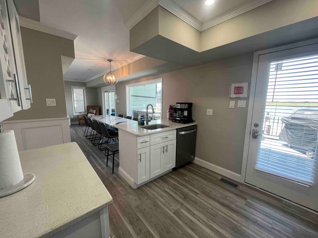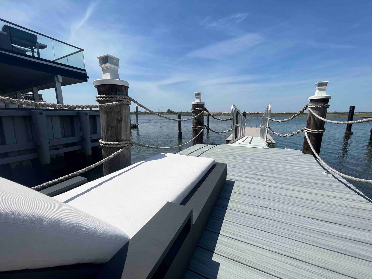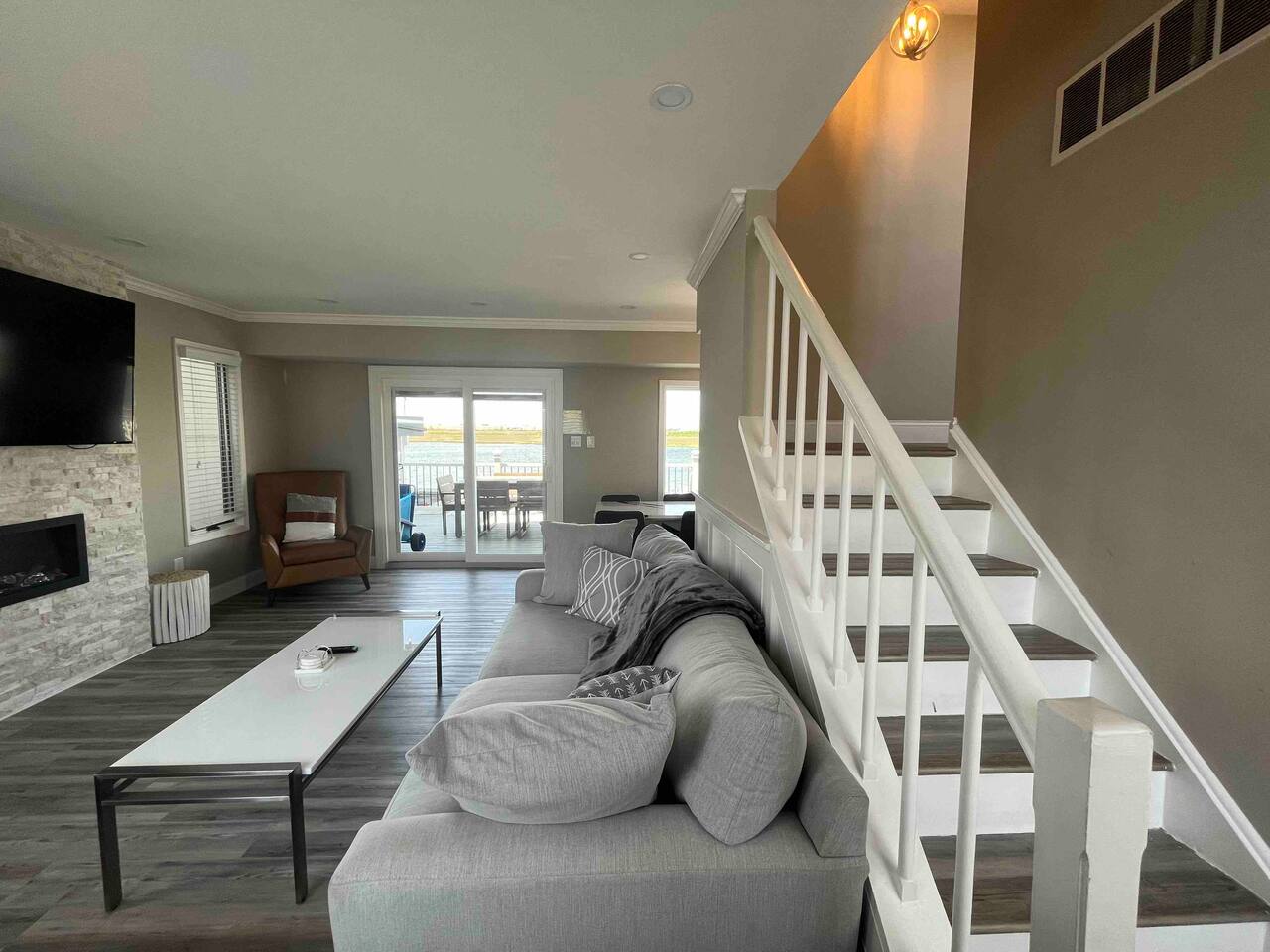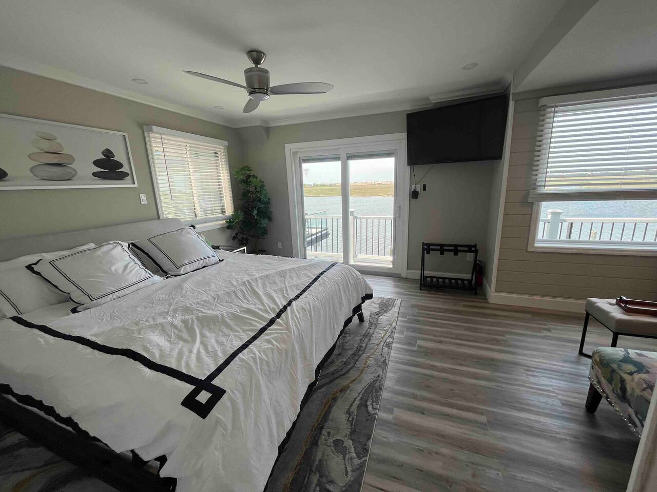 Welcome to our lovely on the bay house with beautiful water views! Featuring 4 bedrooms, 2 full bathrooms, and 2 half-baths. Get ready to feel at home in a comfortable setting with many wonderful amenities to offer. Right at the water's edge! The cozy bedrooms, dining area, galley kitchen, and living room all have water views of the Bay. FIRST FLOOR: Half Bath, Kitchen, Dining Area, Living Room and Laundry Room. Main Deck and Dock Access. SECOND FLOOR: Bedroom 1 - 1 King Sized bed w/ ensuite full bath, upper deck access Bedroom 2 - 1 Queen Sized bed, upper deck access 1 Full Bathroom in Hallway THIRD FLOOR: Bedroom 3 and 4 - Each has 1 Queen Bed and an adjoining half bath ADDITIONAL SLEEPING: A Queen air mattress is provided for additional sleeping. AMENITIES: -There are smart TVs in the living room and each bedroom (no cable, just streaming apps). -There is a BBQ grill available for use. -You can watch your favorite show outside the patio from our outdoor TV. -Whether indoors or outdoors, all the spaces of this property are wonderful to enjoy with family or friends to create many memories! DOCK: -The large dock is deepwater.....bring your boat! -PLEASE BE ADVISED THAT ANY USE OF THE DOCK IS IT AT YOUR OWN RISK. -If you would like to bring your boat, we are happy to accommodate but we do request a waiver to be signed. LOCATION: -It is located in the heart of Ventnor City within walking distance from the beach and boardwalk. -A short drive to the Atlantic City Boardwalk, The Casinos, The Walk at Tanger Outlets, Steel Pier Amusement Pier and much more. -Perfect for a big family or groups of friends coming on a retreat. -A large pavilion and picnic area are also adjacent to the property. ENVIRONMENTAL NOTES: -Proximity to the bay may lead to coastal flooding; the street and other roadways may become inaccessible. We will provide guidance and recommend parking if needed. SMOKING/PETS: -There is NO SMOKING OR PETS permitted in this property. -If you smoke outdoors, please be respectful and dispose of any cigarettes properly. BOOK WITH US and unlock discounts and special offers exclusive to Cozy Cohost guests. Take advantage of all that Atlantic City has to offer and enjoy savings at top local spots including famous restaurants, night clubs, spas, coffee shops, distilleries, breweries, boat tours, bike rentals, mini golf, and more...