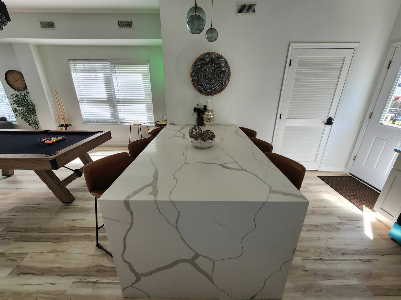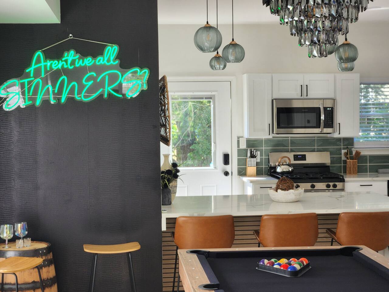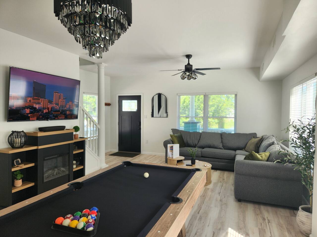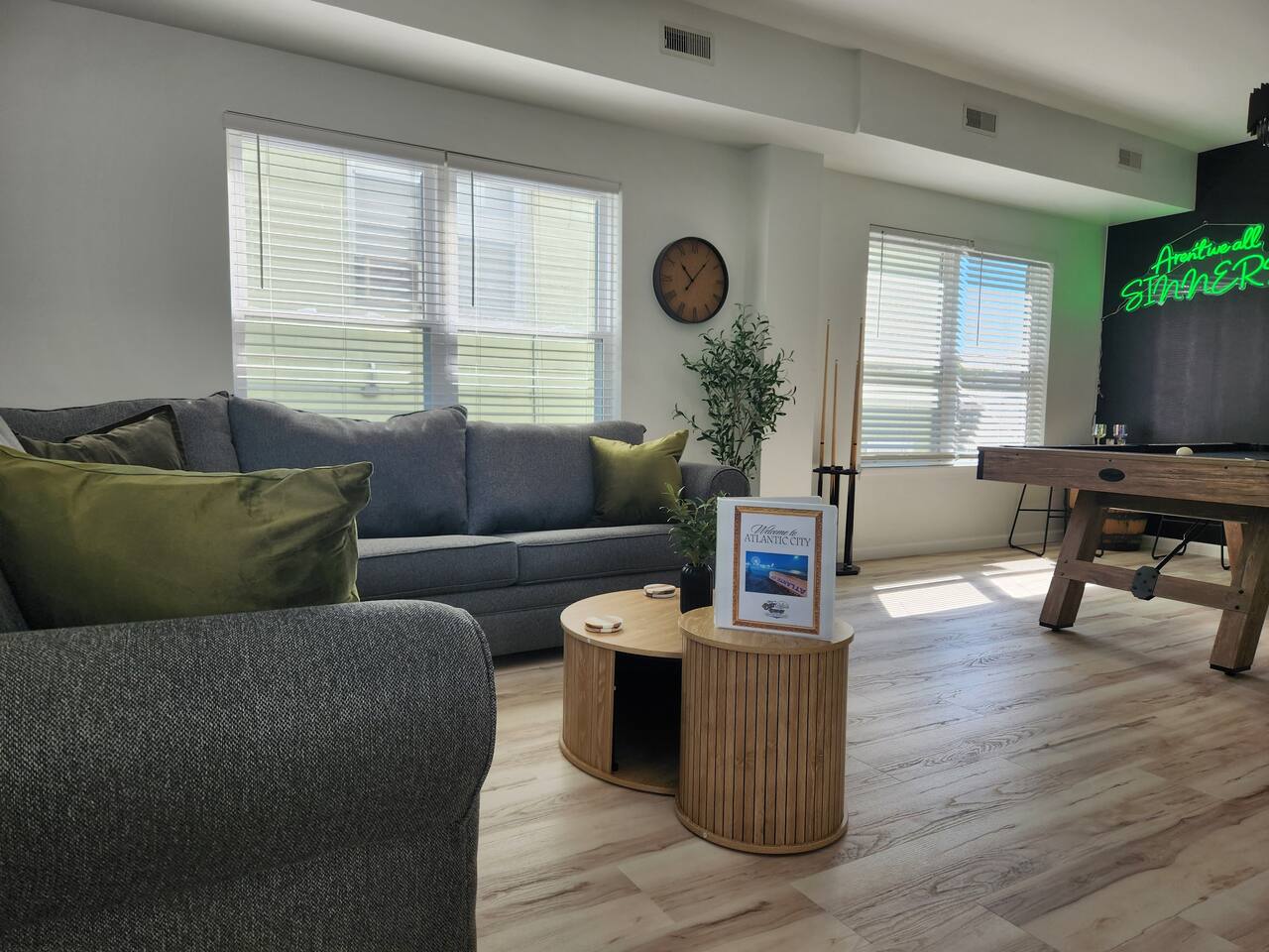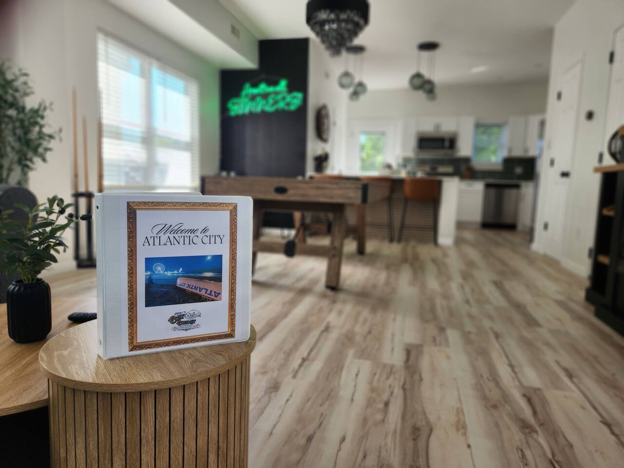 Newly renovated, brand new, wonderful 3 bedroom home in a quiet neighborhood surrounded by the beautiful inlets of AC. MAIN LEVEL: Spacious open concept style main living area with spacious sectional couch, large smart TV, electric fireplace, pool table, large island with seating and a brand new kitchen. SLEEPING ARRANGEMENTS: BEDROOM 1- 1 King Sized bed, Smart TV, ensuite full bathroom with stand up shower. BEDROOM 2- 1 Queen Sized bed, Smart TV BEDROOM 3- 1 Queen Sized bed, Smart TV BATHROOMS: (2.5 baths total) - Half bath on the main level next to the kitchen - Full bath ensuite in the master bedroom with stand up shower - Full bath in the upstairs hallway with tub and shower ADDITIONAL NOTES: -This home is ideal for families or groups and includes an 8 foot pool table, WiFi, full kitchen with all brand new stainless appliances, washer and dryer, smart TV with streaming apps for your viewing pleasure (no cable, just streaming apps), and much more! AMENITIES: -The home is also equipped with Wifi, a standard drip coffee maker, an iron and ironing board, a hair dryer and much more! -There is a basic charcoal grill for guests to use. -Please note that we do not supply charcoal or lighter fluid. Guests must supply their own. - There is a fire pit in the backyard with adirondack chair seating around -The pool table will provide loads of fun! BOOK WITH US and unlock discounts and special offers exclusive to Cozy Cohost guests. Take advantage of all that Atlantic City has to offer and enjoy savings at top local spots including famous restaurants, night clubs, spas, coffee shops, distilleries, breweries, boat tours, bike rentals, mini golf, and more...