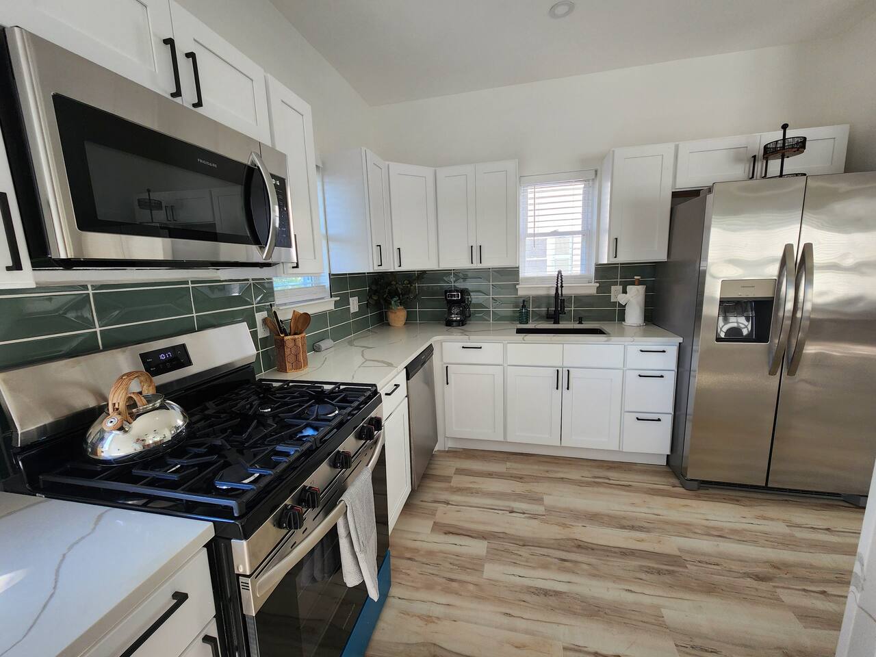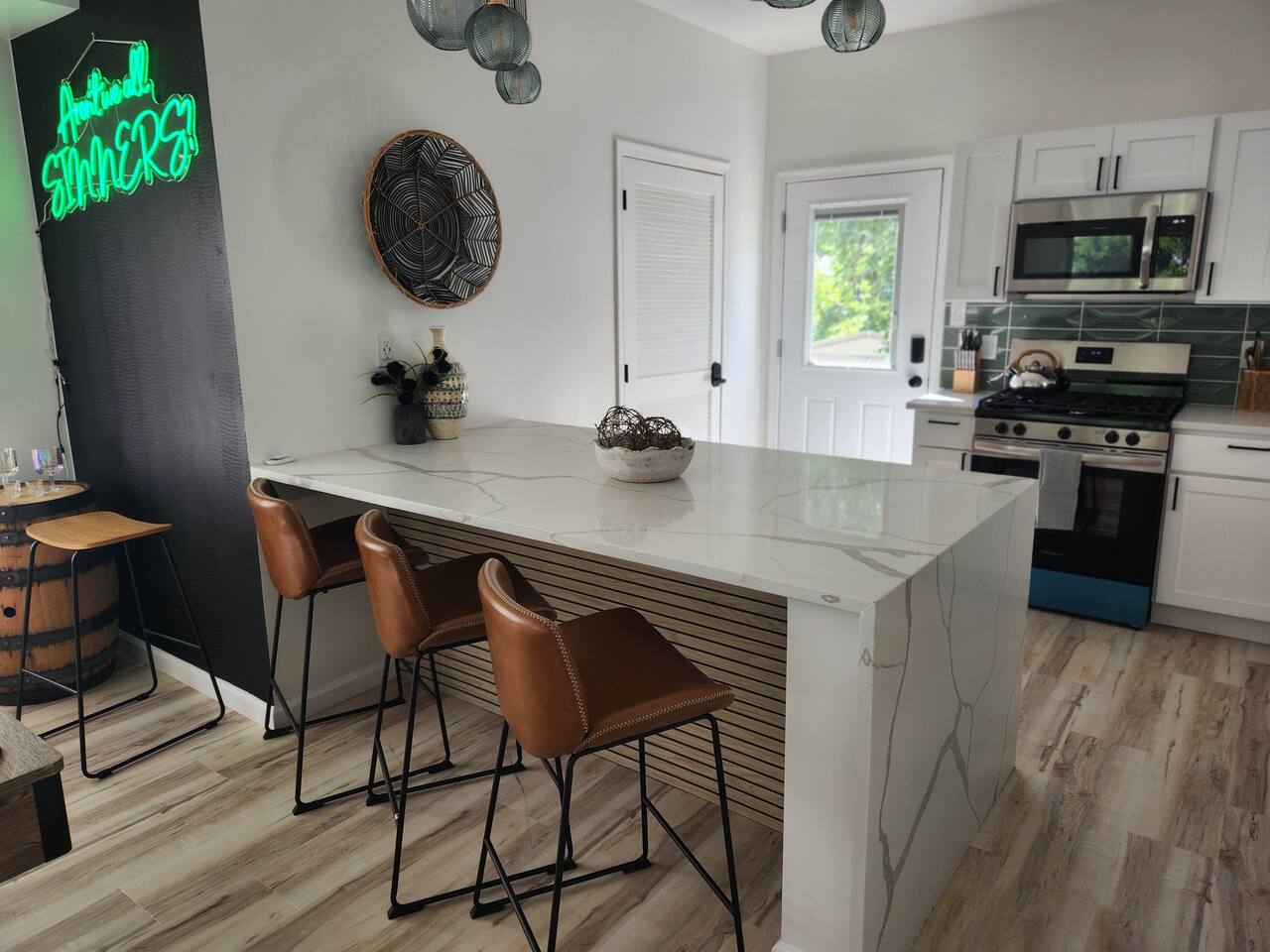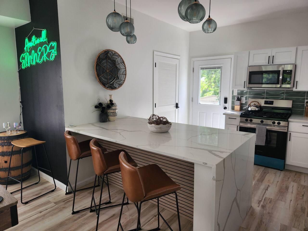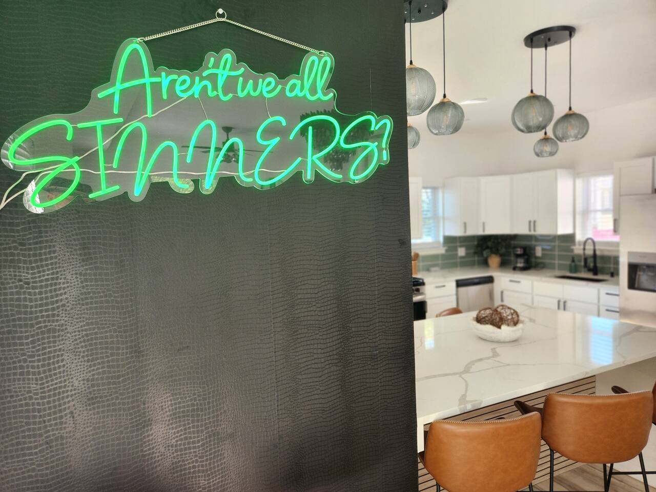 Newly renovated, brand new, wonderful 3 bedroom home in a quiet neighborhood surrounded by the beautiful inlets of AC. MAIN LEVEL: Spacious open concept style main living area with spacious sectional couch, large smart TV, electric fireplace, pool table, large island with seating and a brand new kitchen. SLEEPING ARRANGEMENTS: BEDROOM 1- 1 King Sized bed, Smart TV, ensuite full bathroom with stand up shower. BEDROOM 2- 1 Queen Sized bed, Smart TV BEDROOM 3- 1 Queen Sized bed, Smart TV BATHROOMS: (2.5 baths total) - Half bath on the main level next to the kitchen - Full bath ensuite in the master bedroom with stand up shower - Full bath in the upstairs hallway with tub and shower ADDITIONAL NOTES: -This home is ideal for families or groups and includes an 8 foot pool table, WiFi, full kitchen with all brand new stainless appliances, washer and dryer, smart TV with streaming apps for your viewing pleasure (no cable, just streaming apps), and much more! AMENITIES: -The home is also equipped with Wifi, a standard drip coffee maker, an iron and ironing board, a hair dryer and much more! -There is a basic charcoal grill for guests to use. -Please note that we do not supply charcoal or lighter fluid. Guests must supply their own. - There is a fire pit in the backyard with adirondack chair seating around -The pool table will provide loads of fun! BOOK WITH US and unlock discounts and special offers exclusive to Cozy Cohost guests. Take advantage of all that Atlantic City has to offer and enjoy savings at top local spots including famous restaurants, night clubs, spas, coffee shops, distilleries, breweries, boat tours, bike rentals, mini golf, and more...